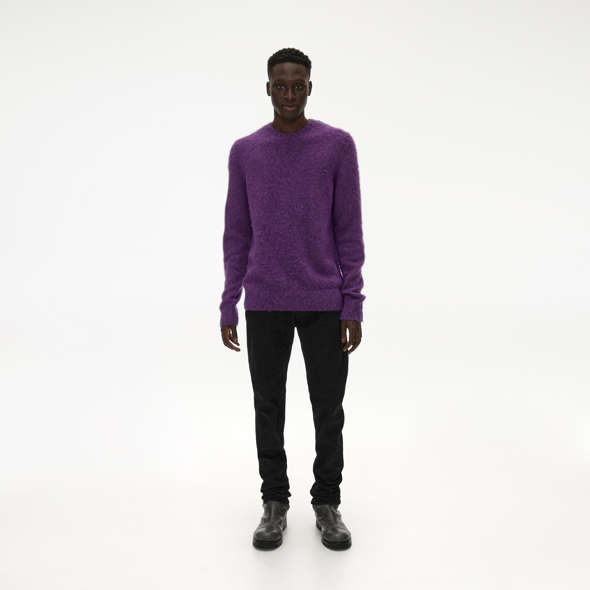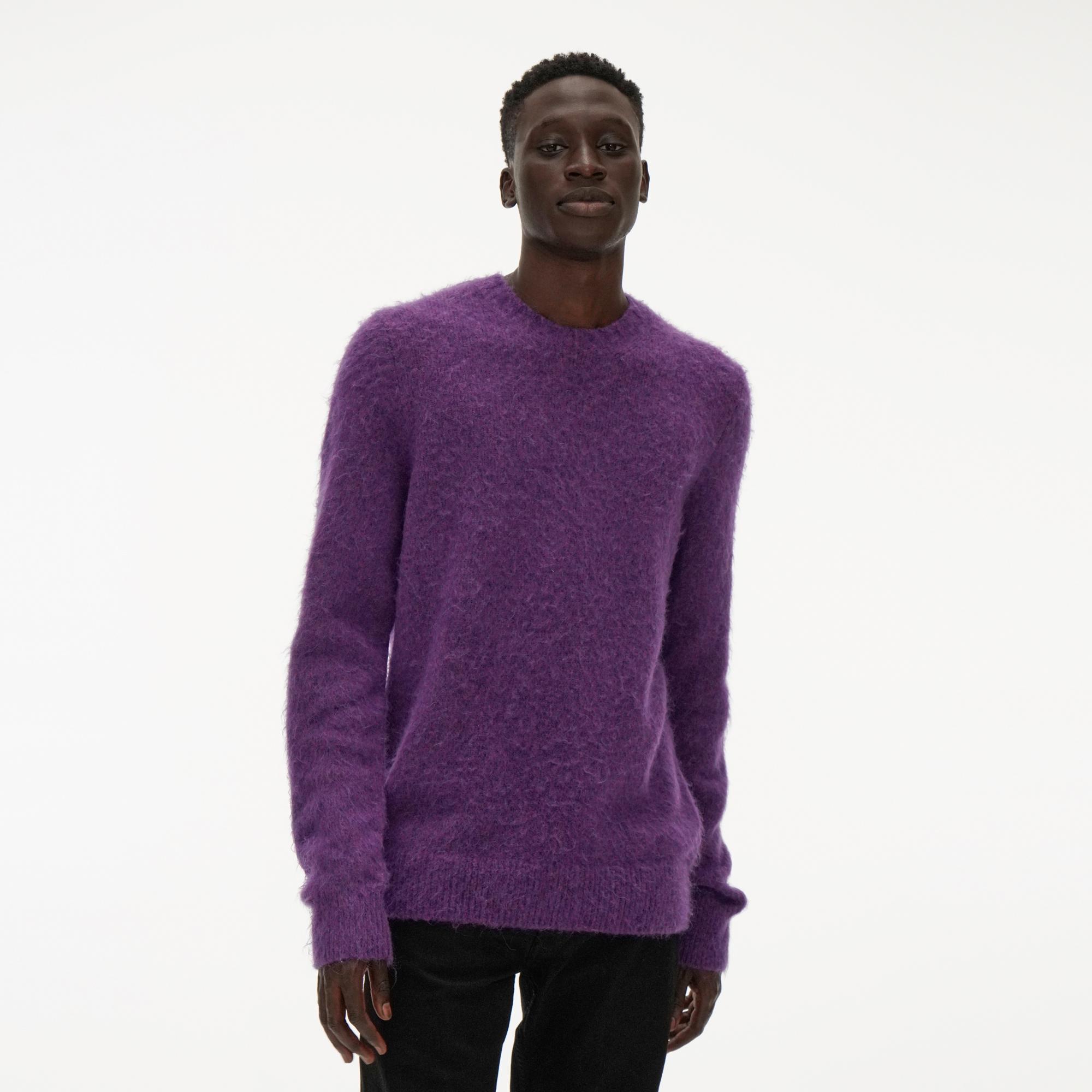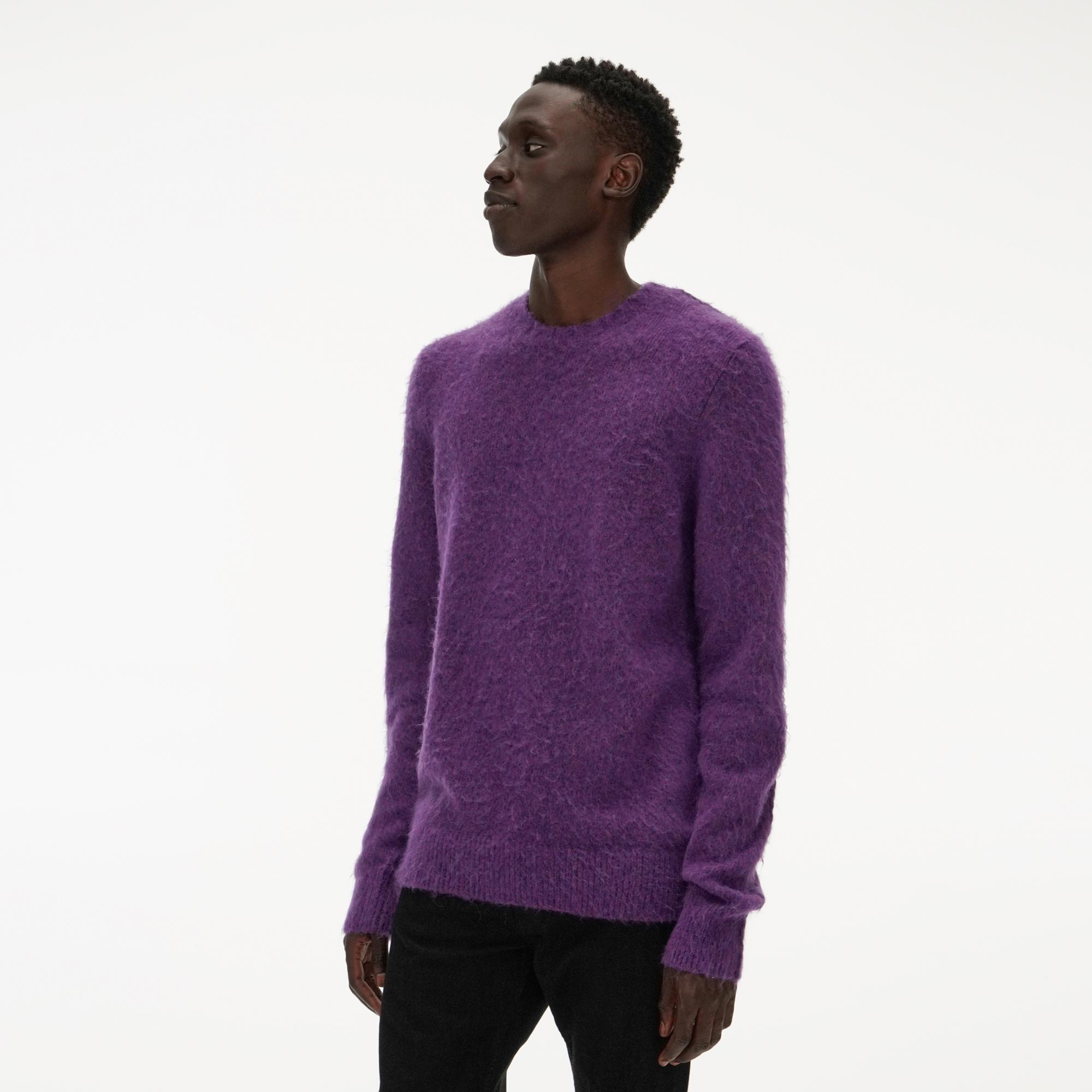 The Helmut Lang Brushed Crewneck is a crewneck sweater with ribbed trim and a soft, brushed finish