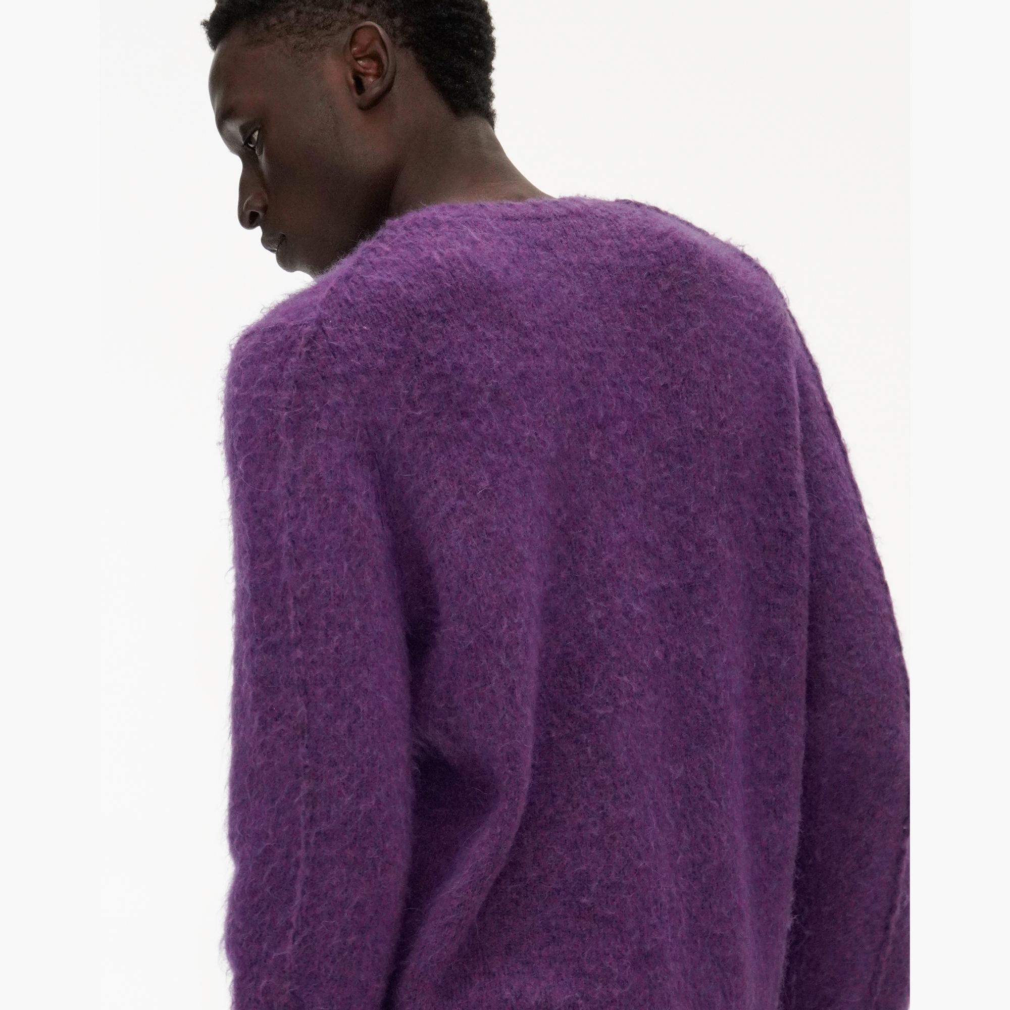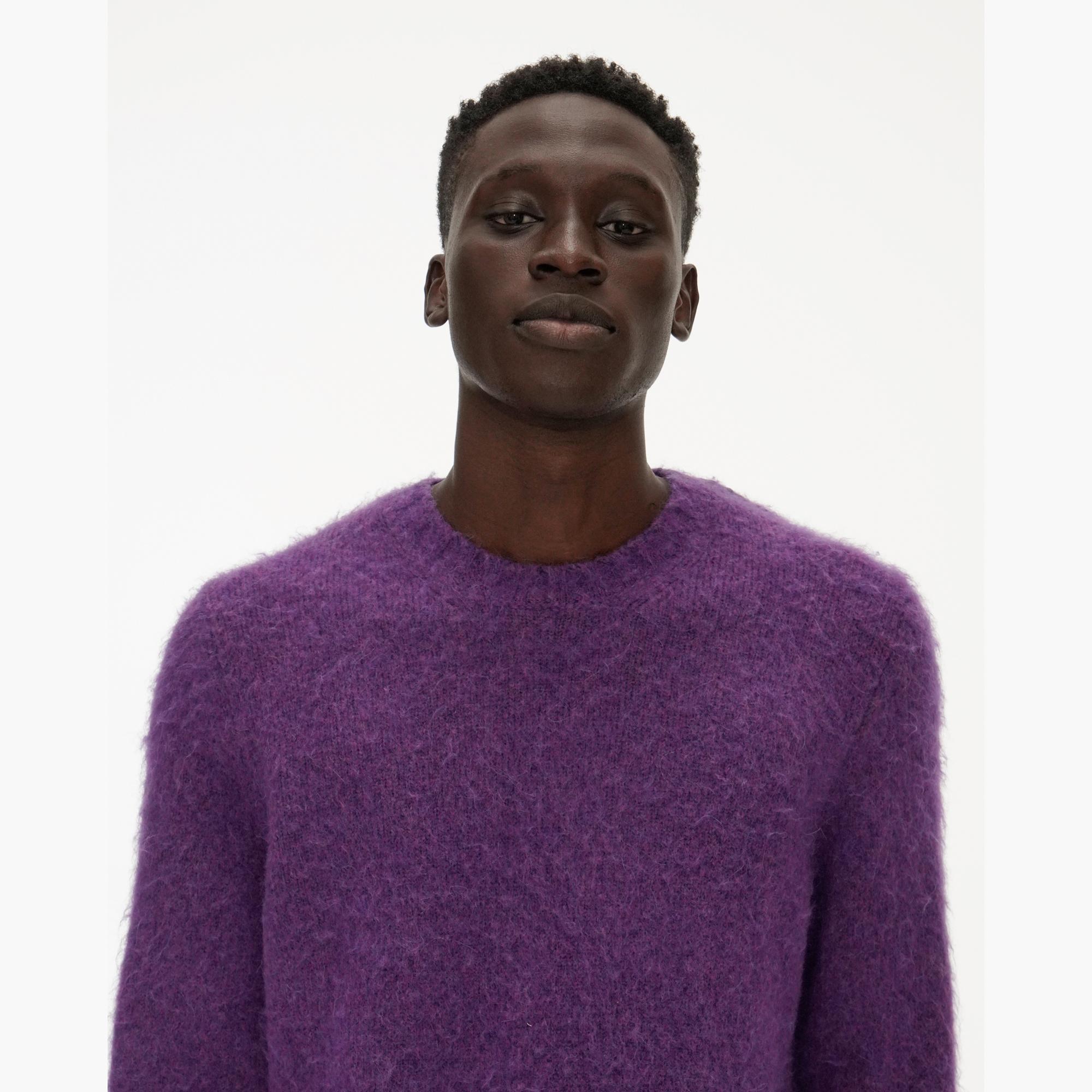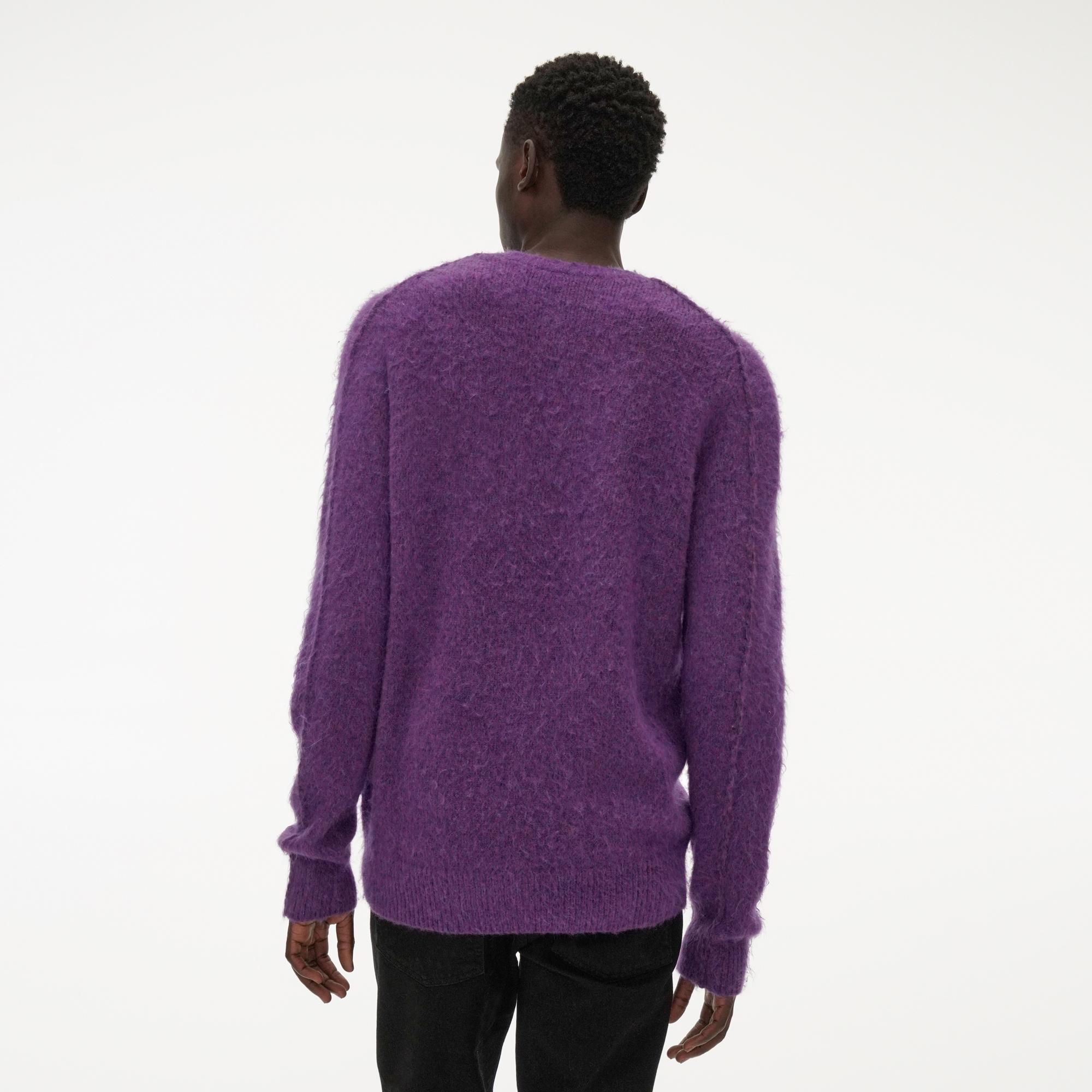 The Helmut Lang Brushed Crewneck is a crewneck sweater with ribbed trim and a soft, brushed finish