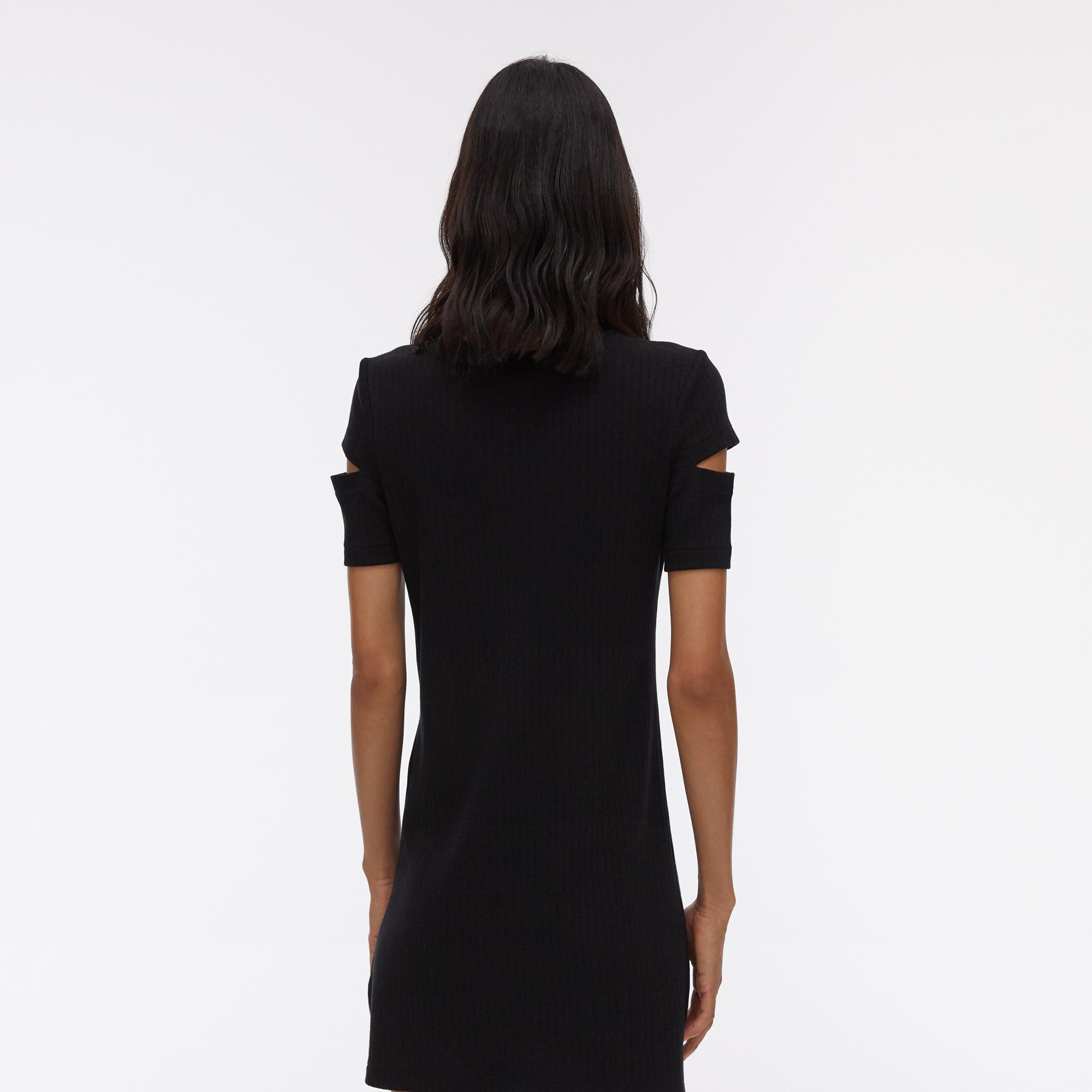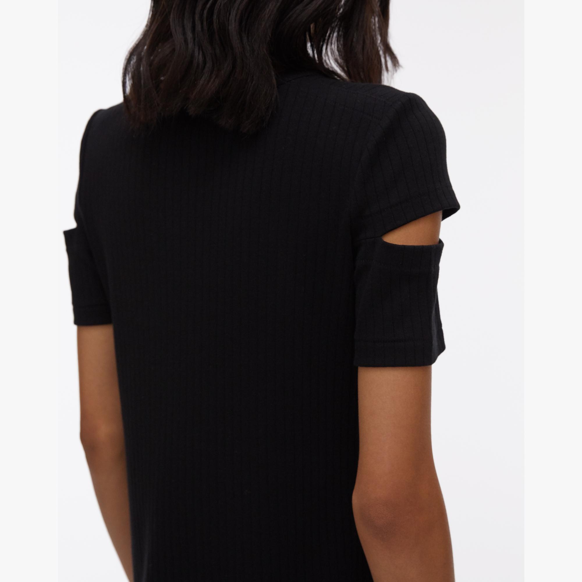 The Helmut Lang Slash Sleeve Shirtdress is a minidress with short sleeves featuring cutout details