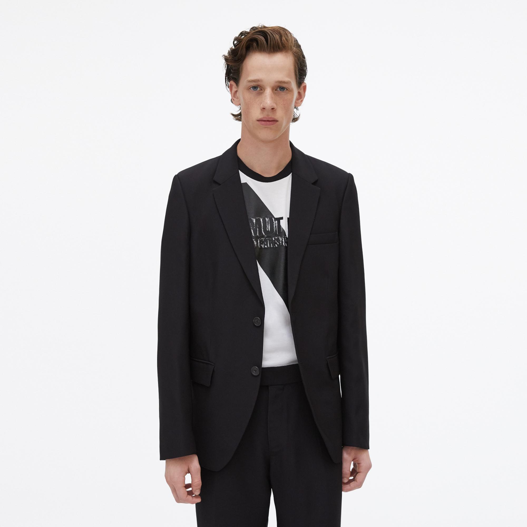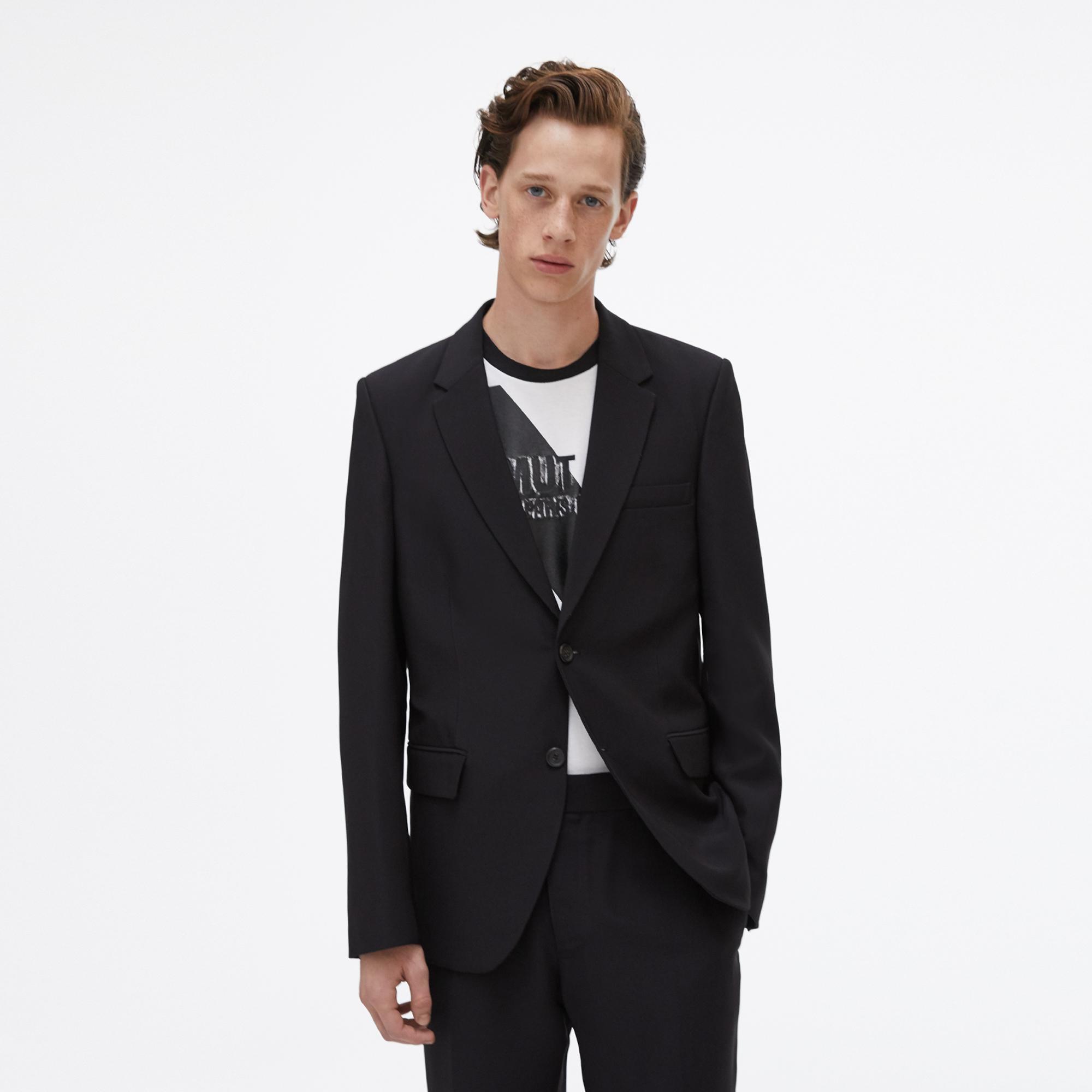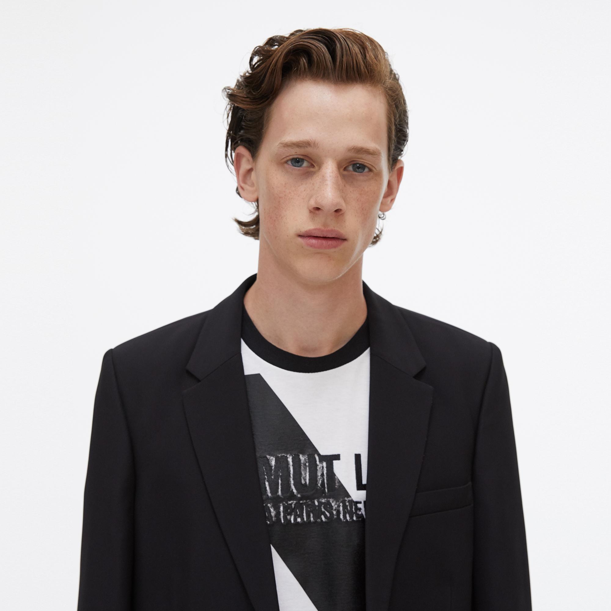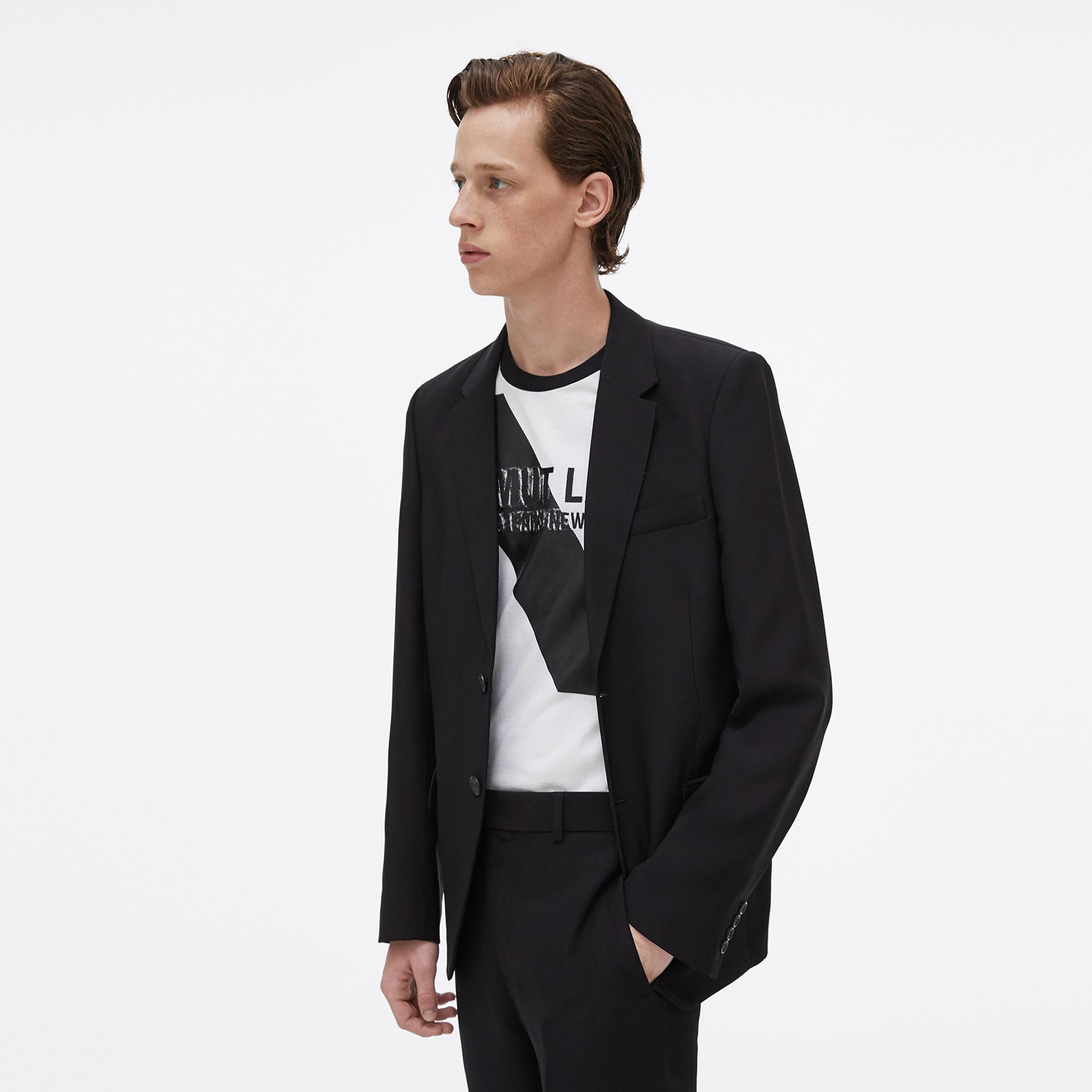 The Helmut Lang Viscose Two-Button Suit Jacket is a a heavy viscose classic single-breast suit jacket with a fluid drape