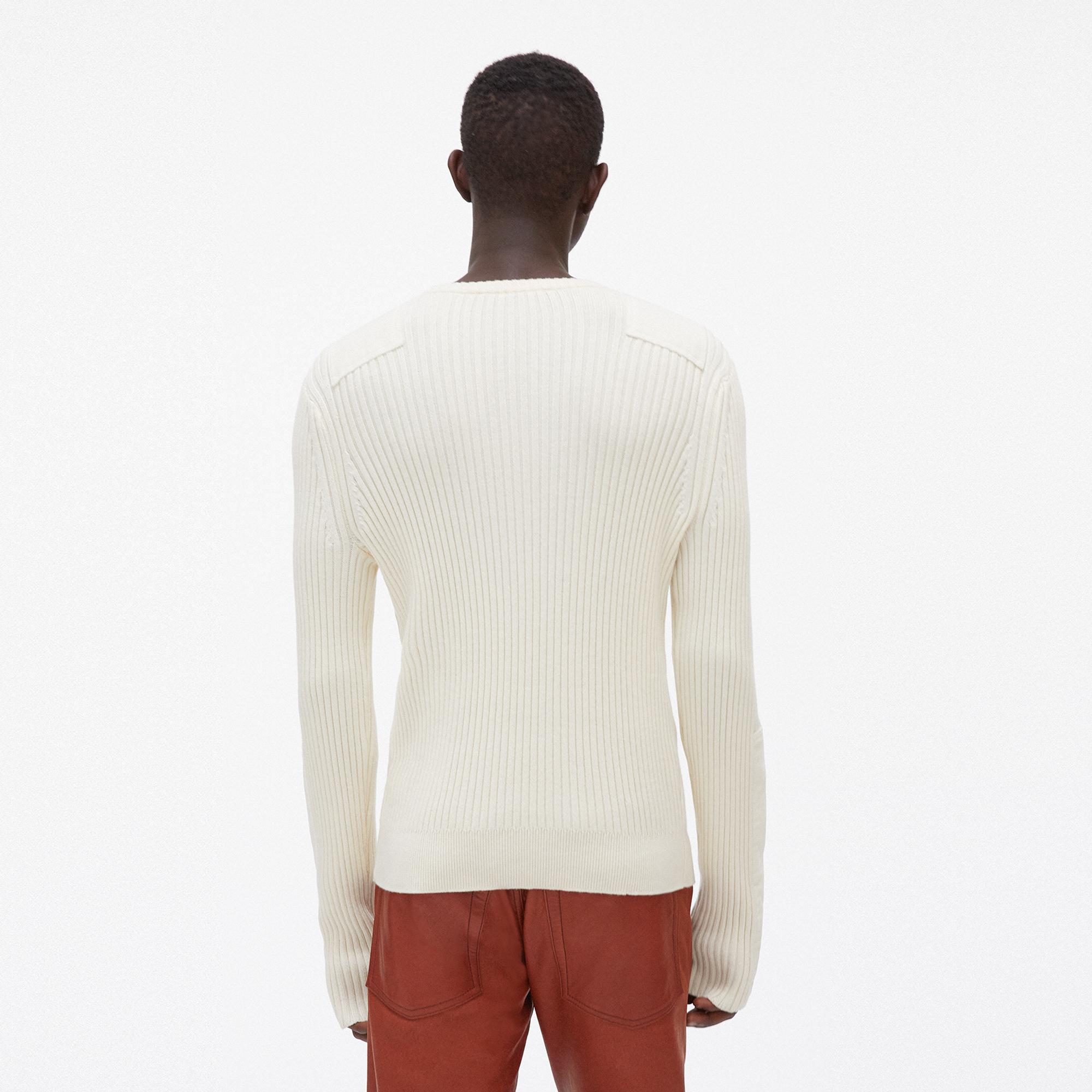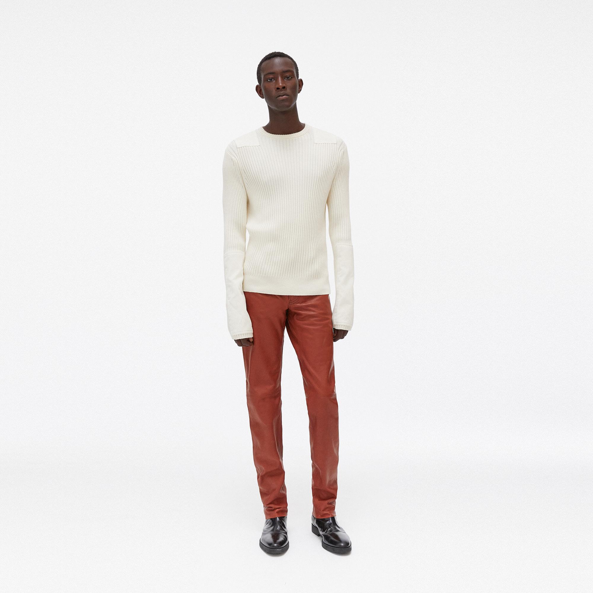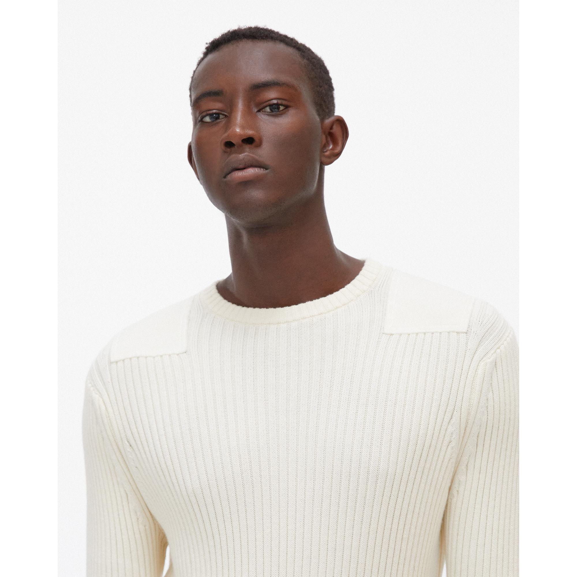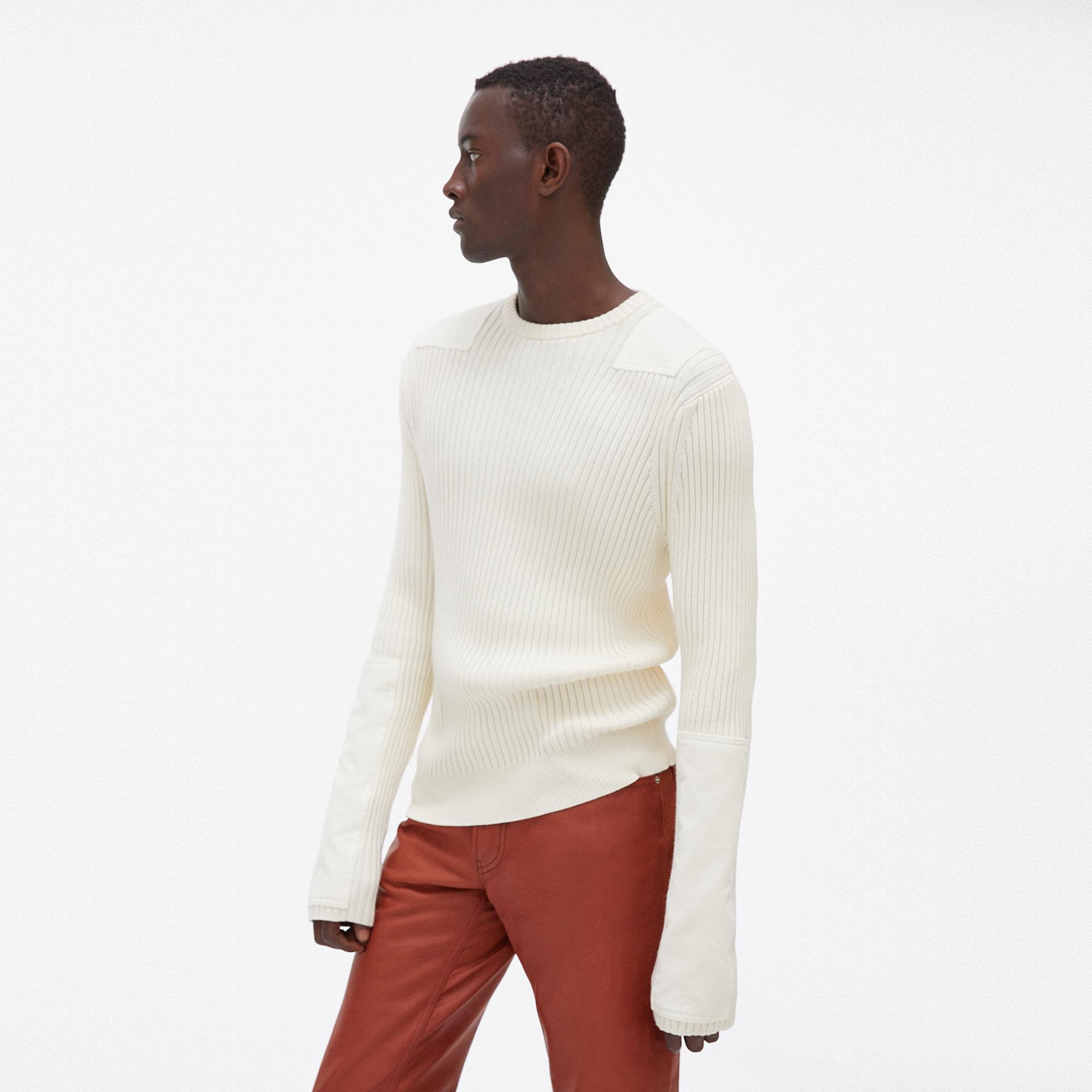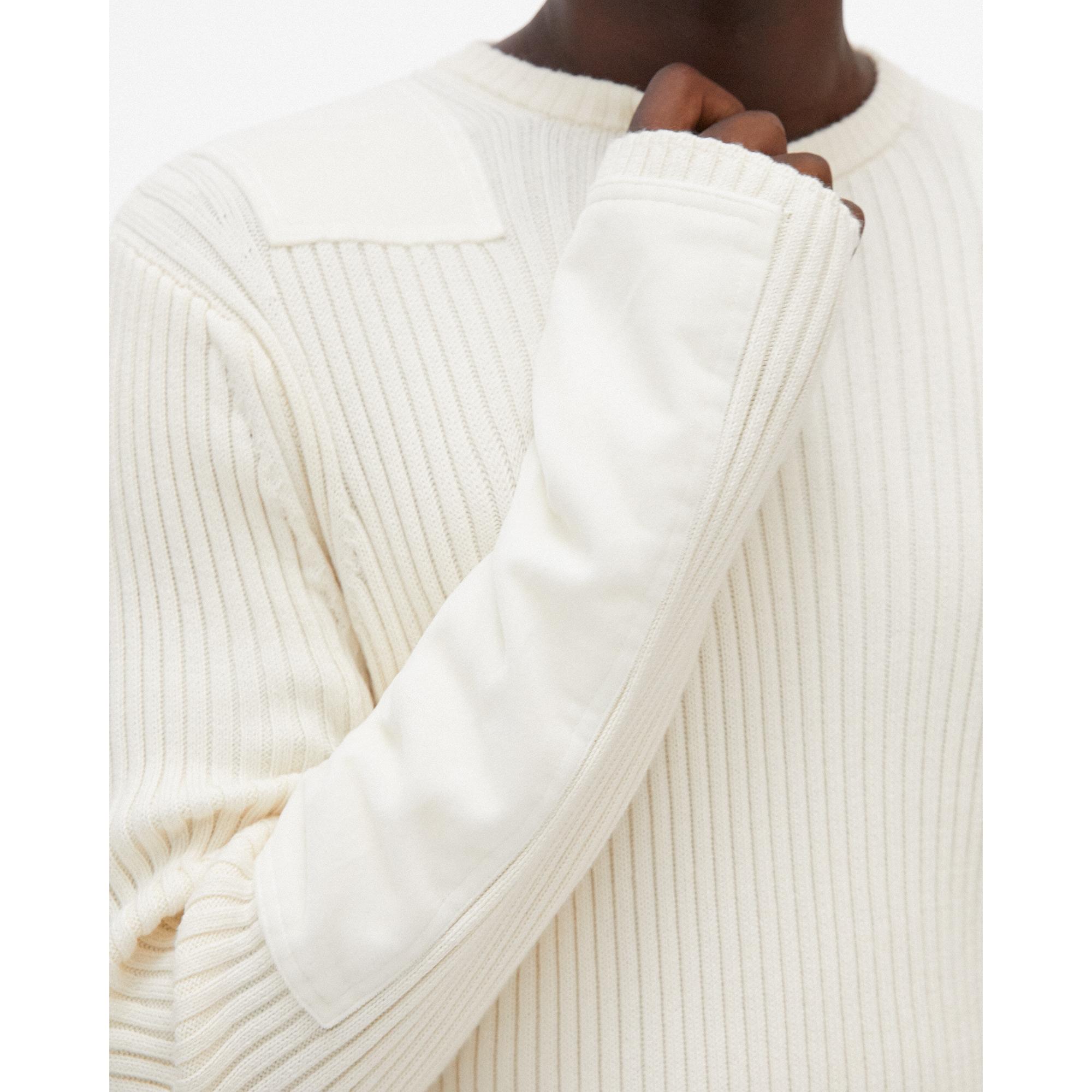 The Helmut Lang Patch Crewneck is a cotton-cashmere sweater with full-body ribbing and soft sewn-on patches on the shoulders and arms