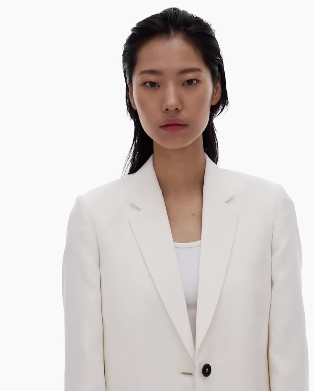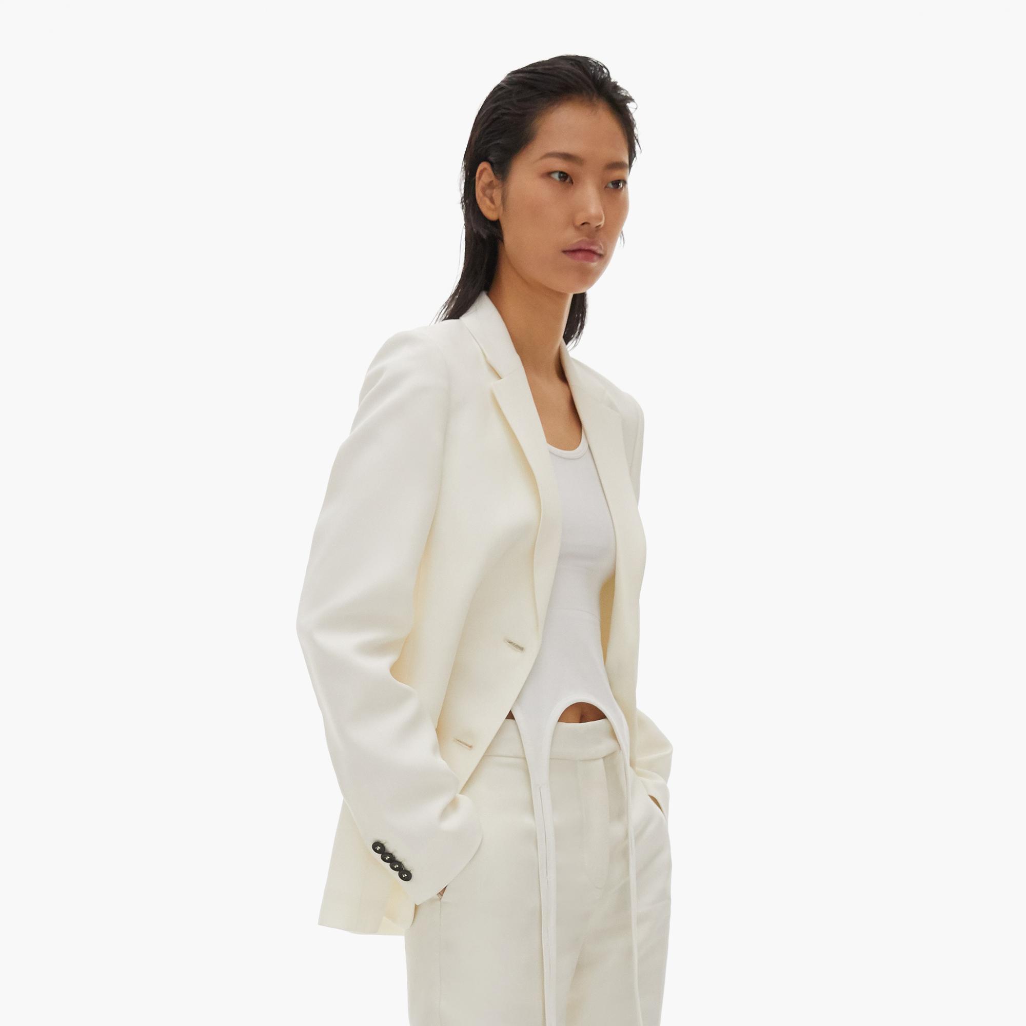 The Helmut Lang Cady Blazer is a two-button suit jacket in matte viscose