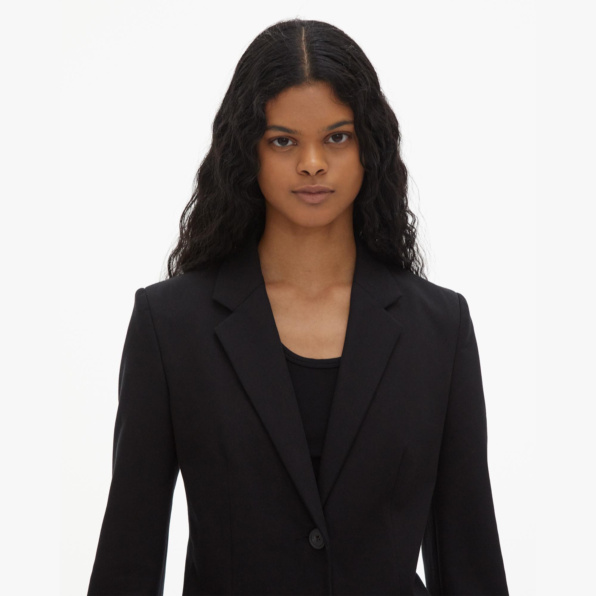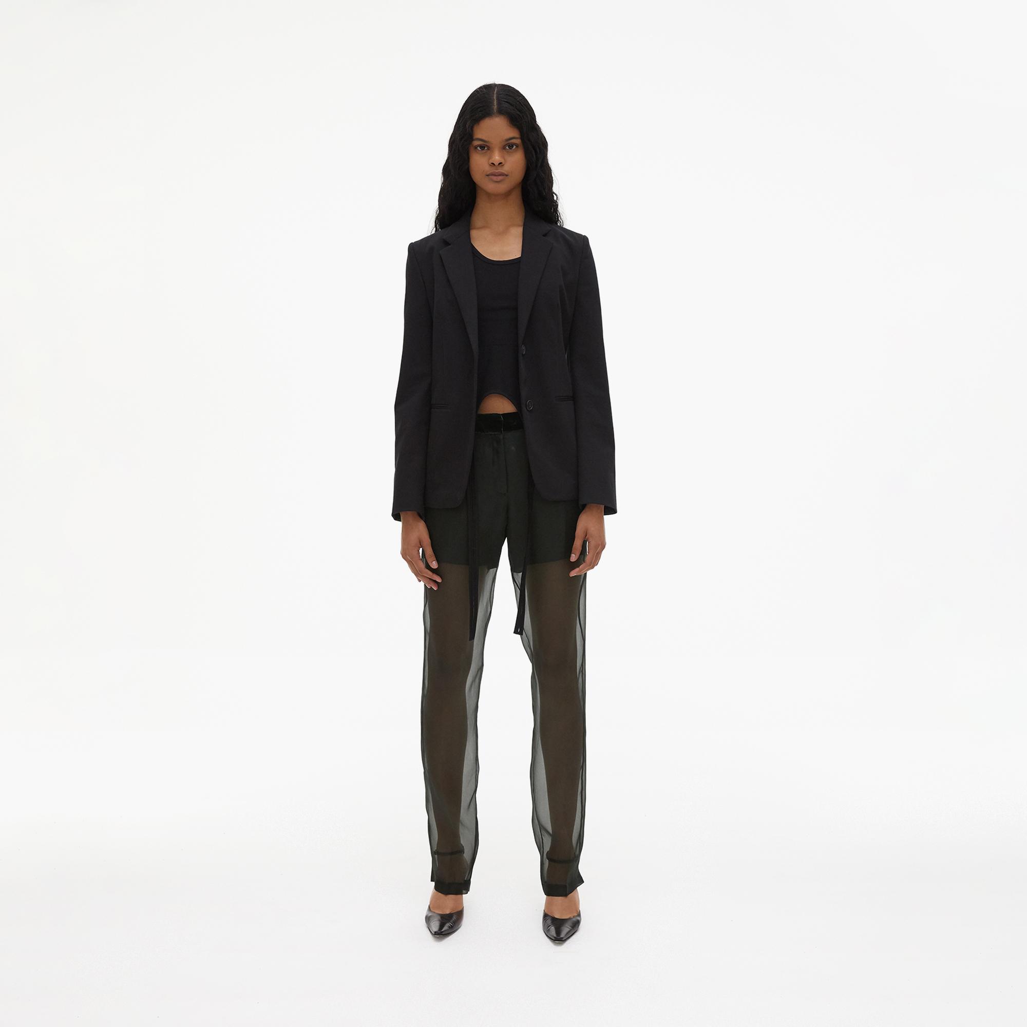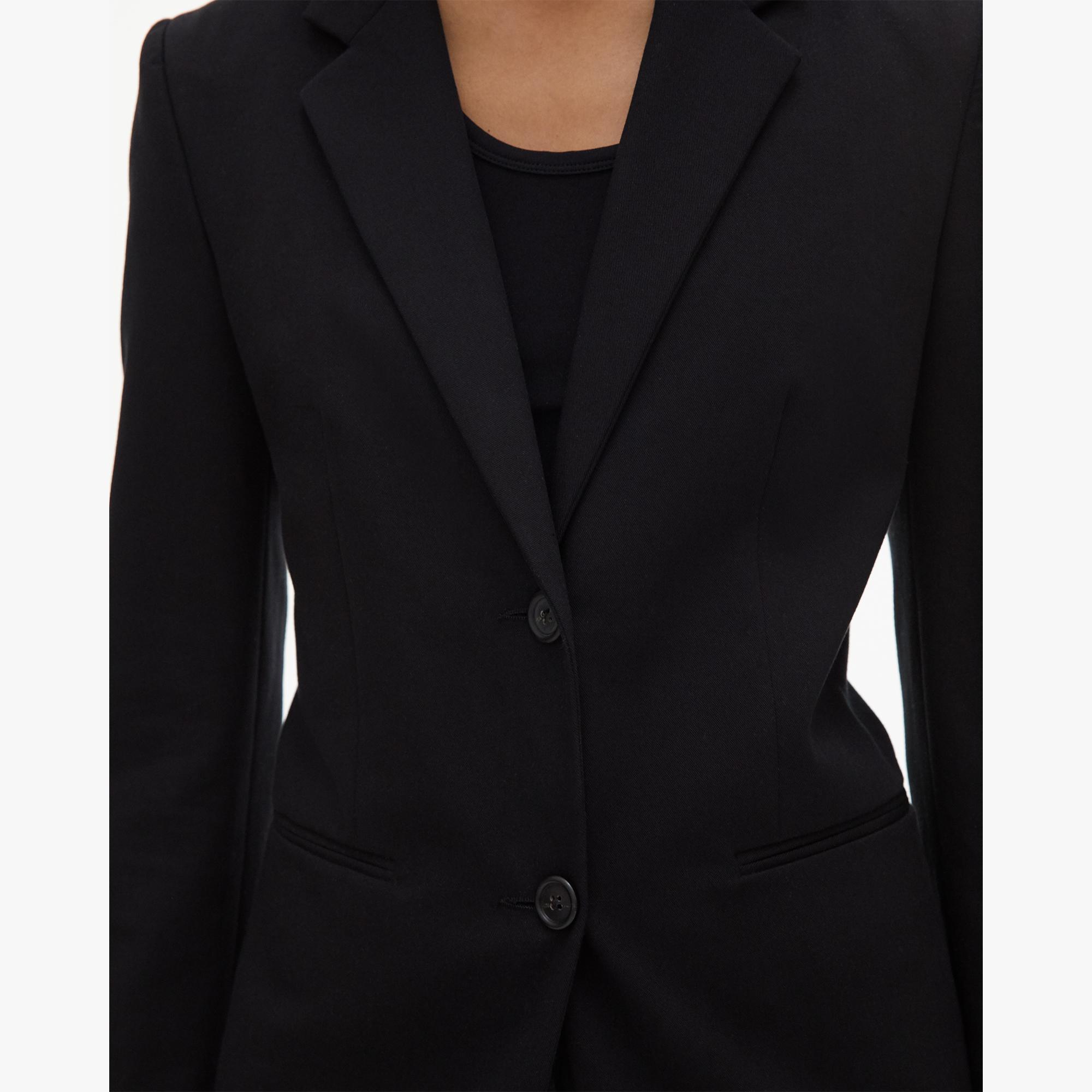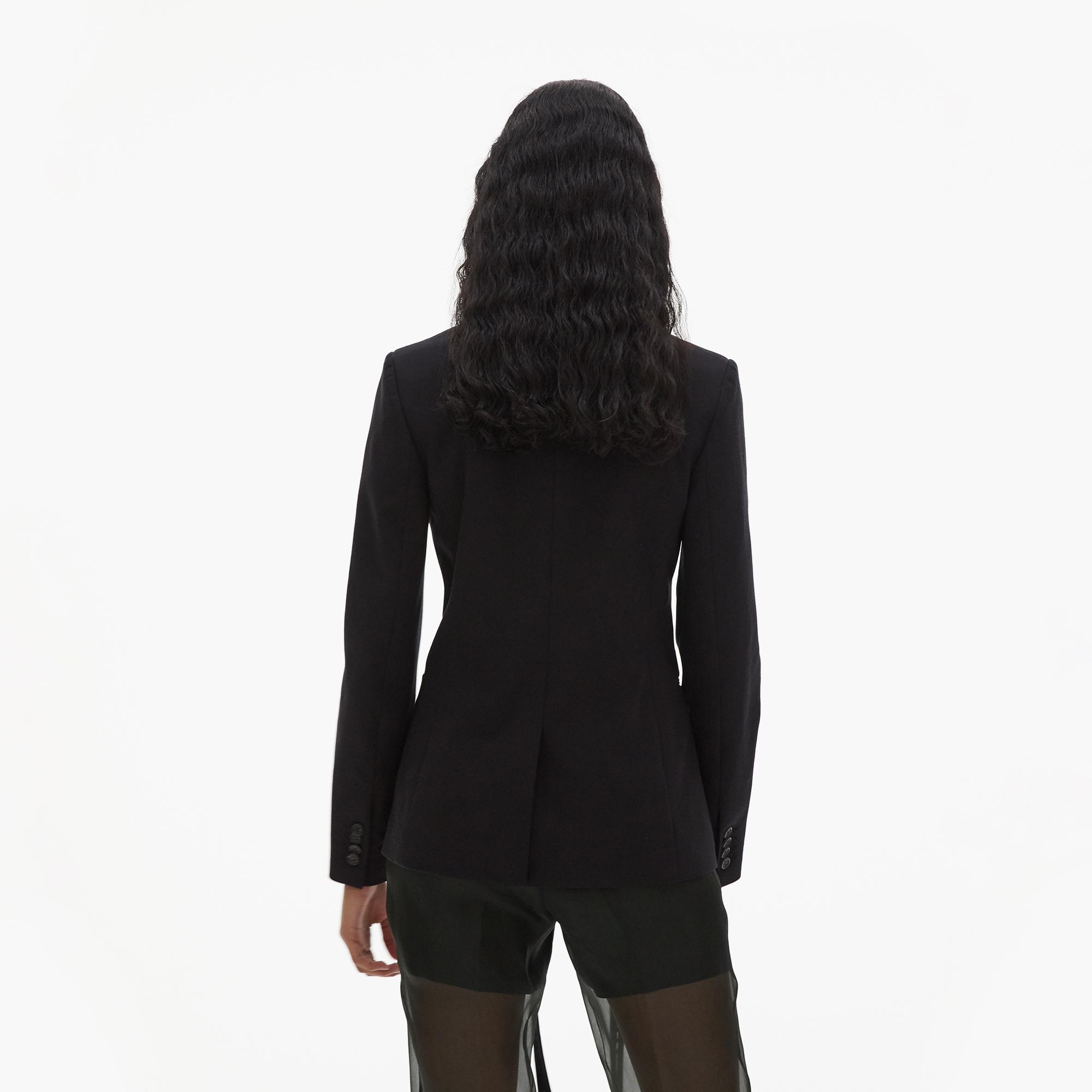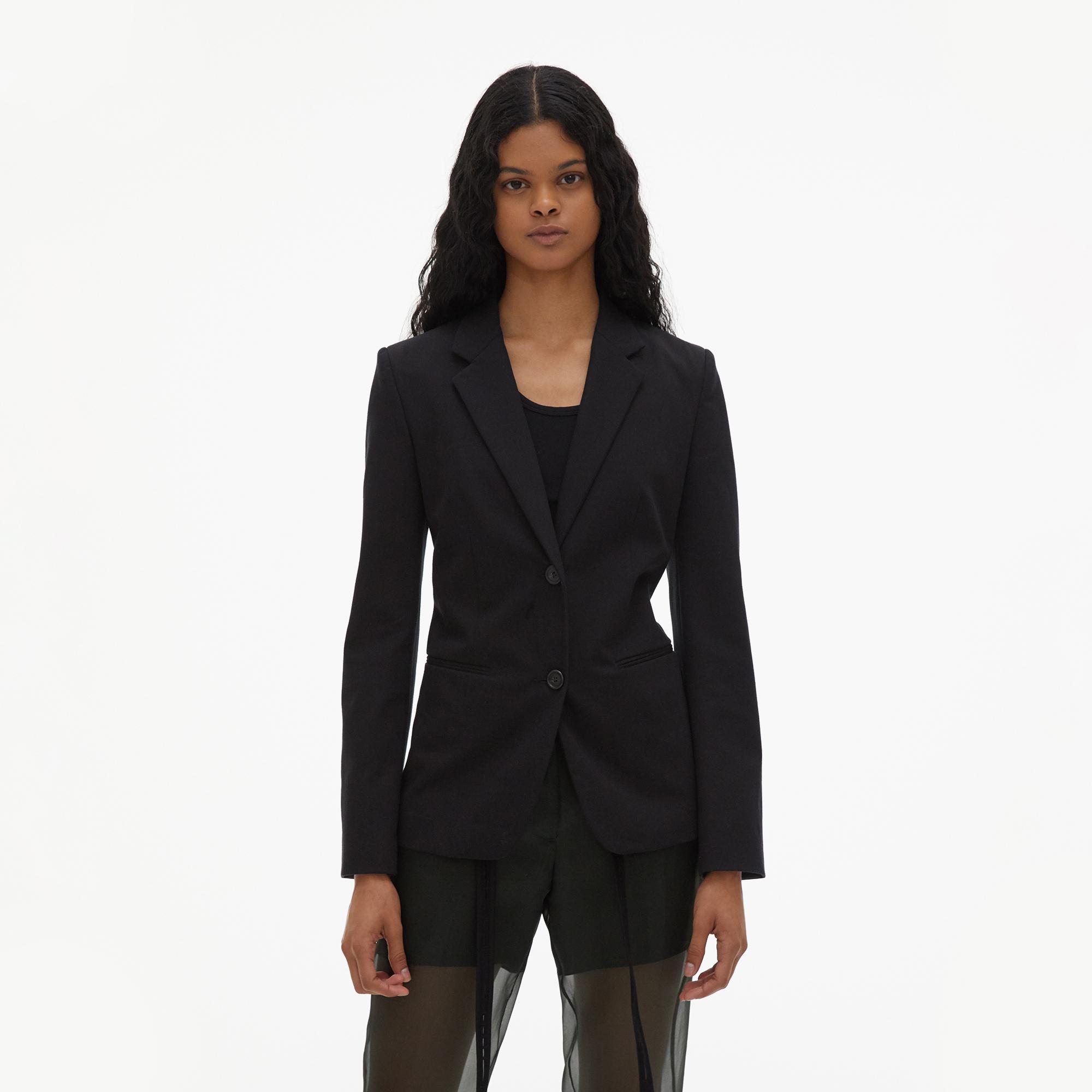 The Helmut Lang Classic Rider Blazer is a two-button blazer with a shrunken fit