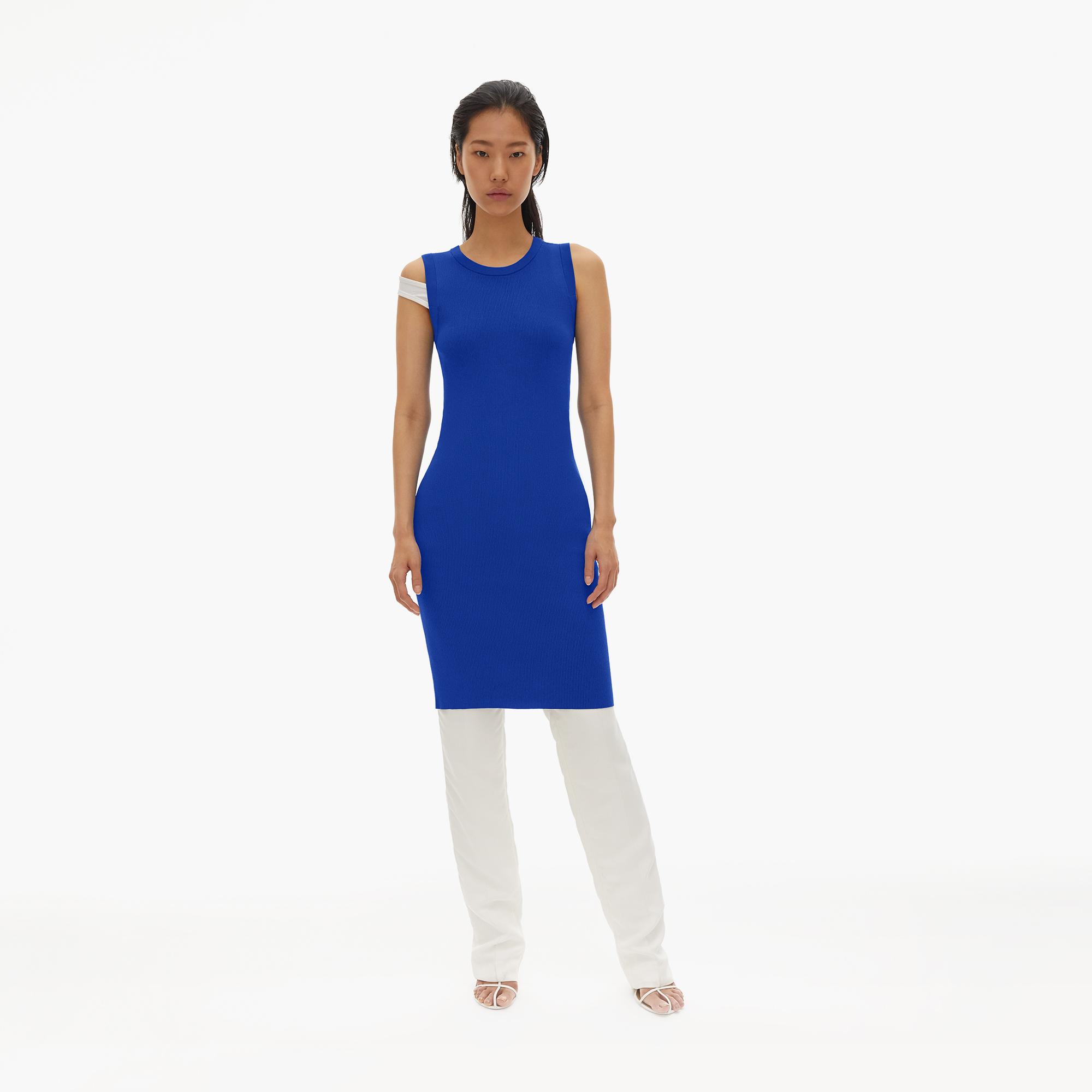 The Helmut Lang Stretch Viscose Crewneck Dress is a midi-length rib knit tank dress