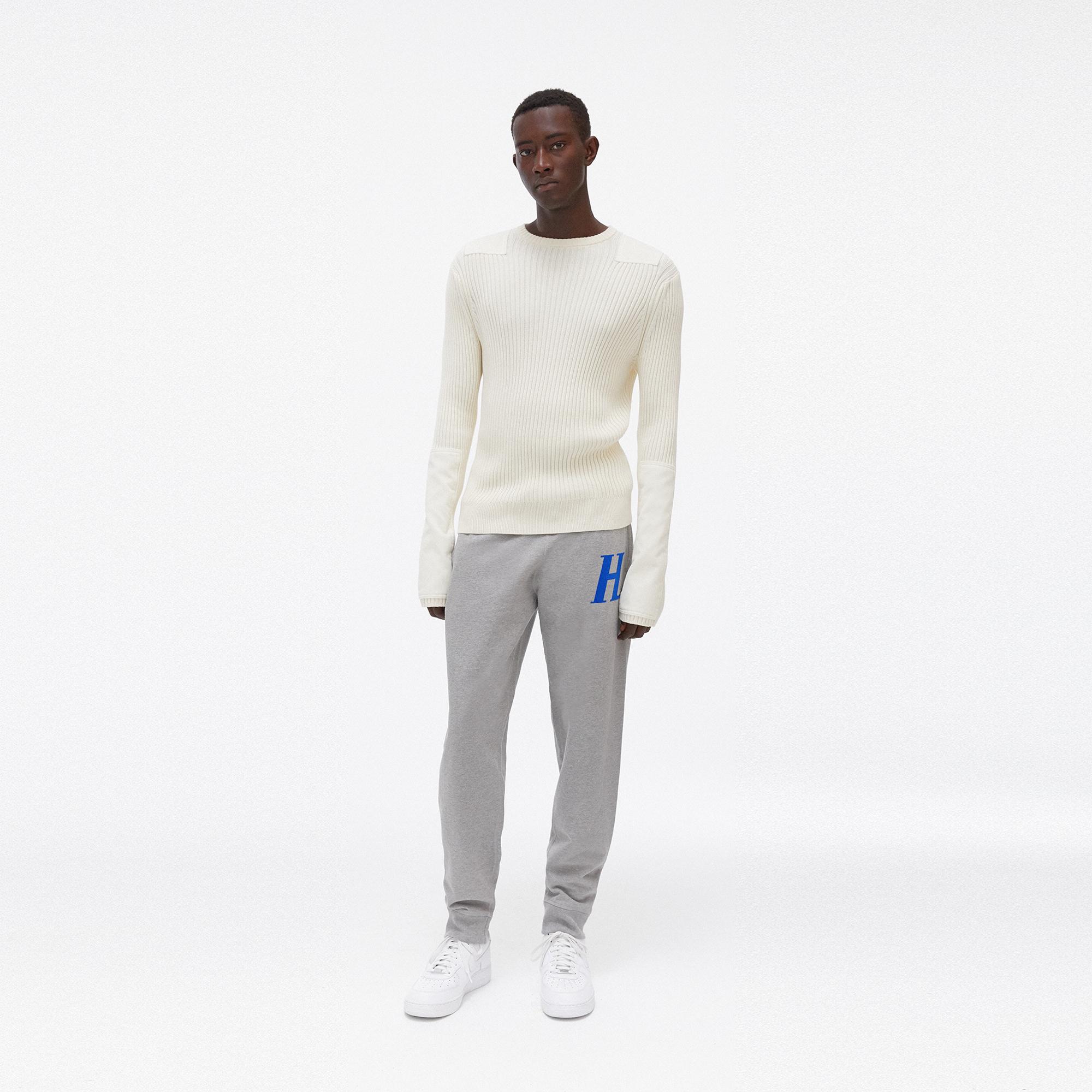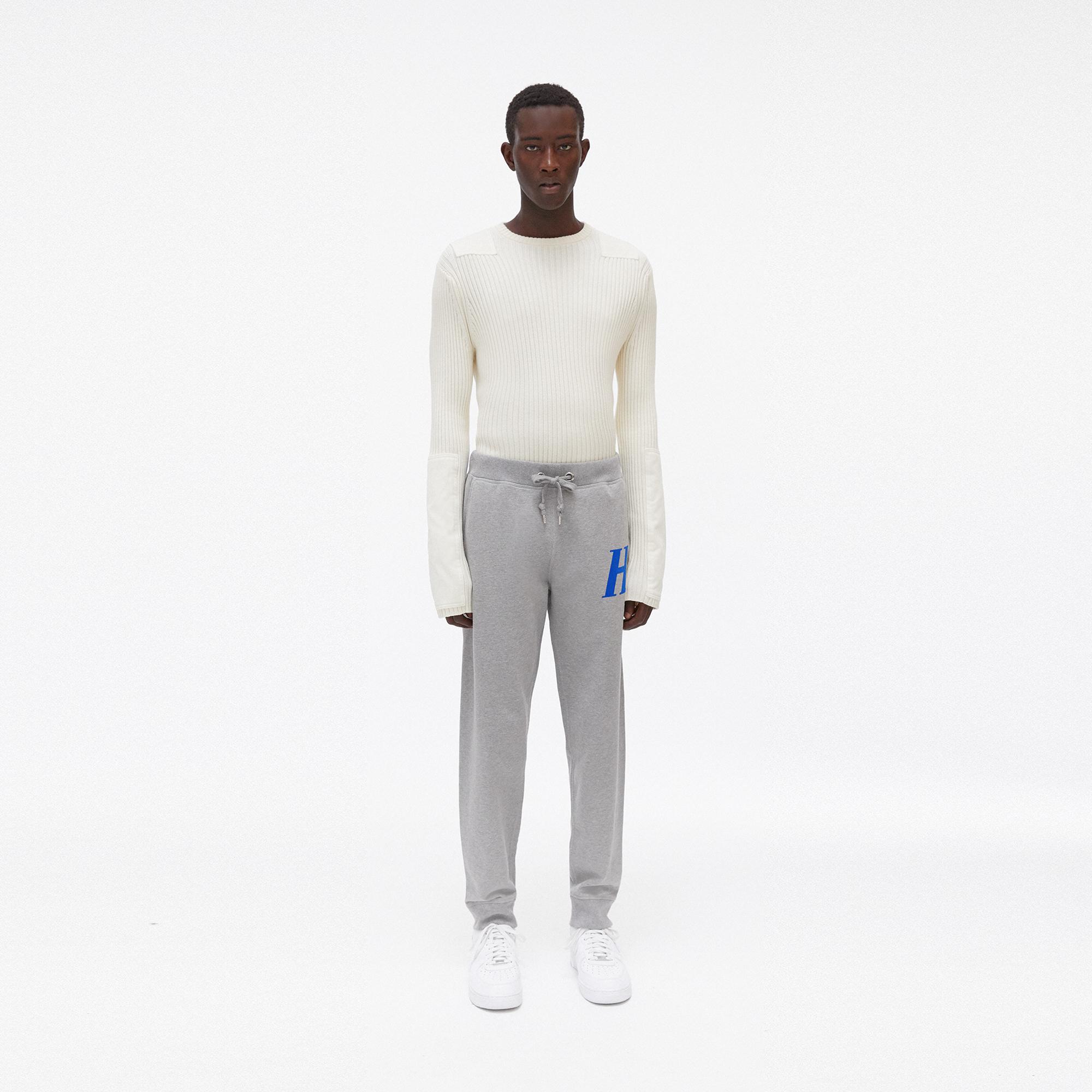 The Helmut Lang Monogram Sweatpants are cotton sweatpants with a felted monogram graphic