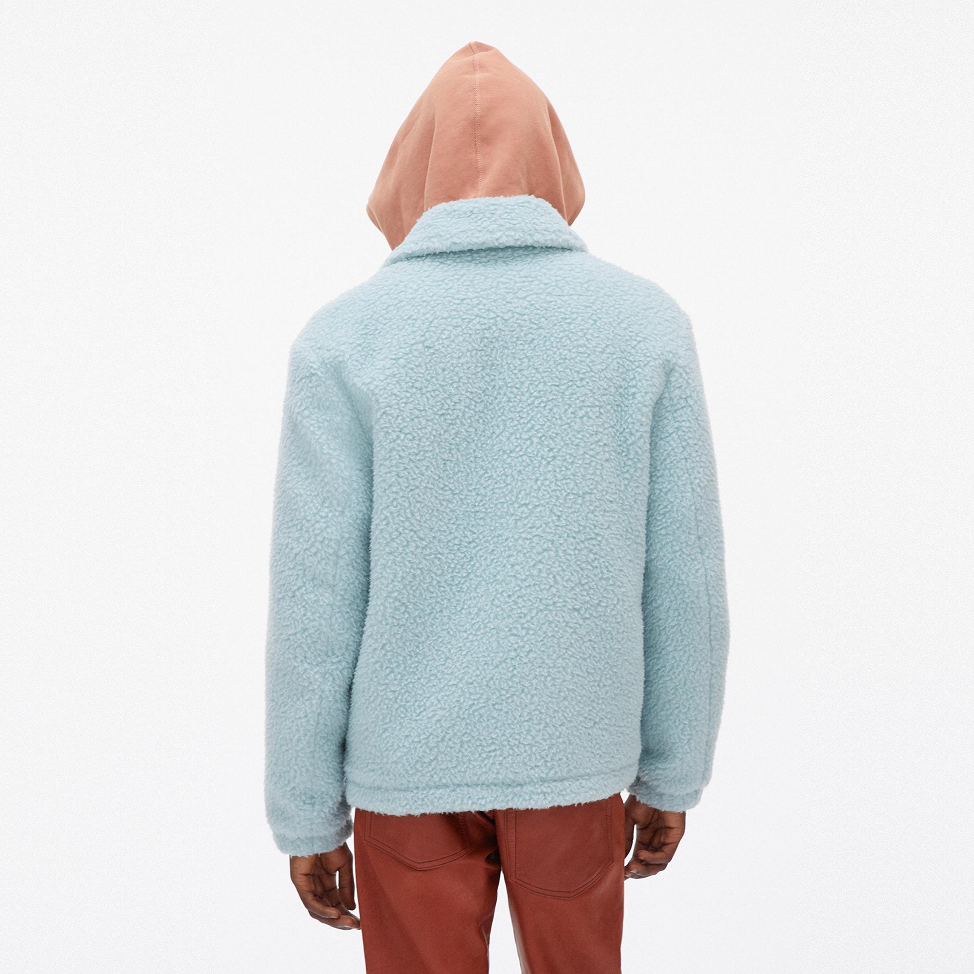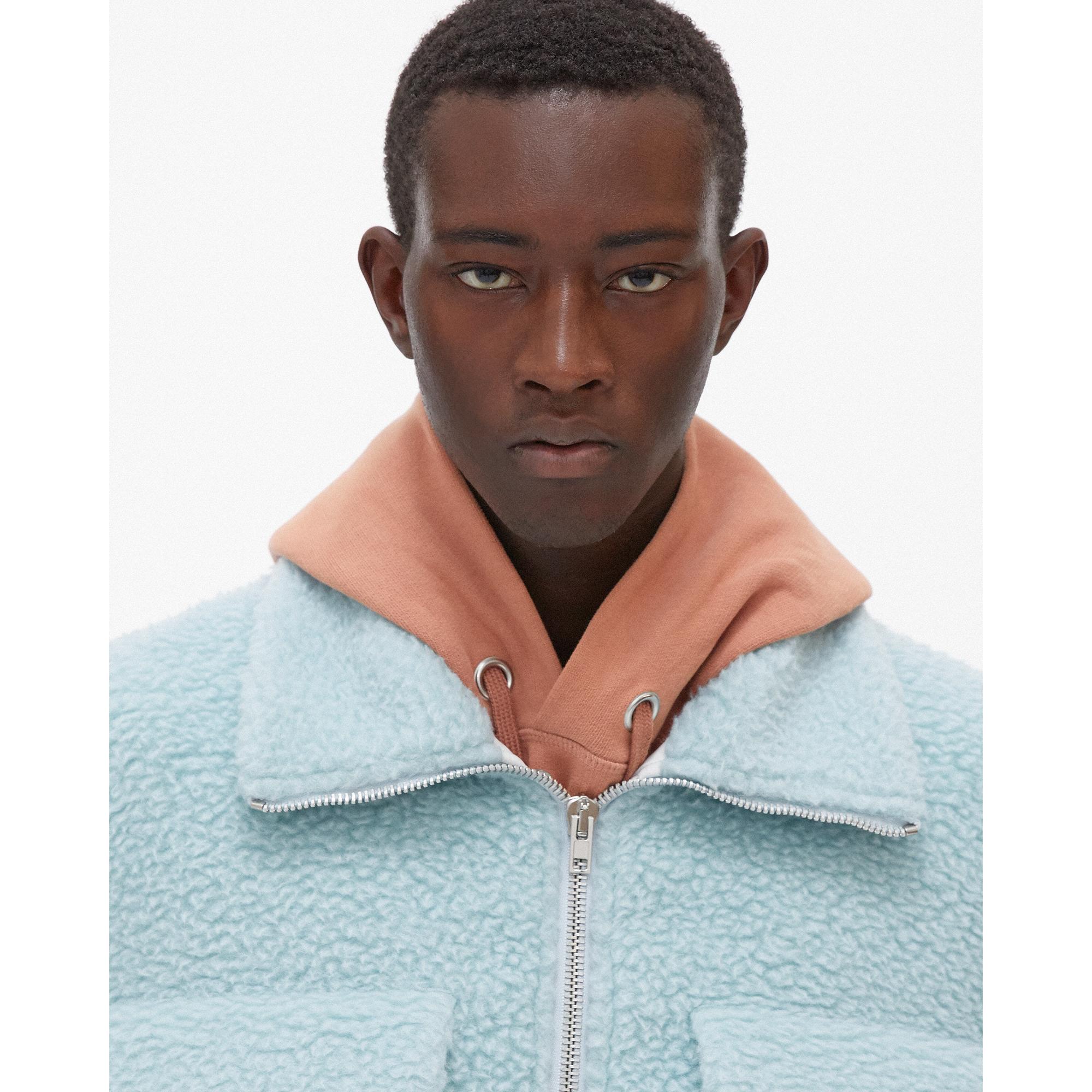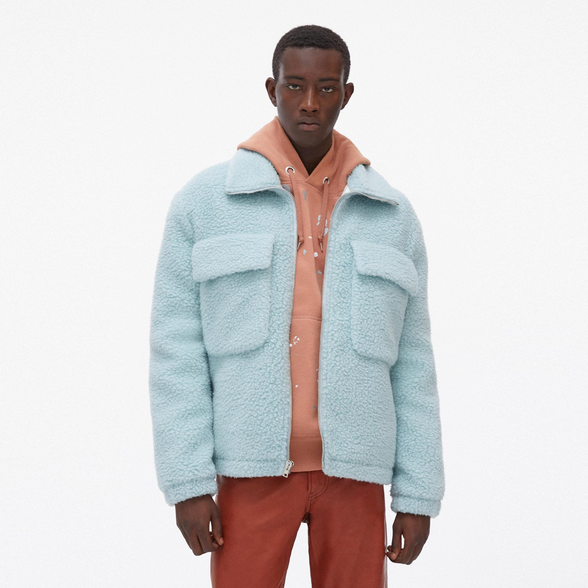 The Helmut Lang Oversized Teddy Zip-Up Jacket is is plush wool jacket with a front zip closure and a stand collar