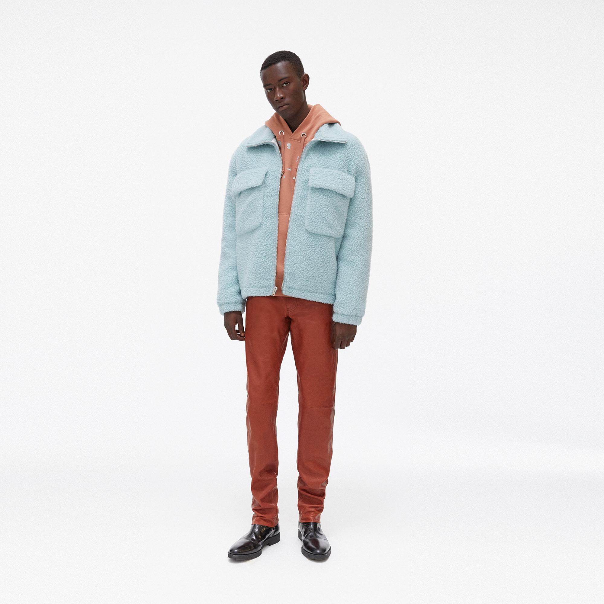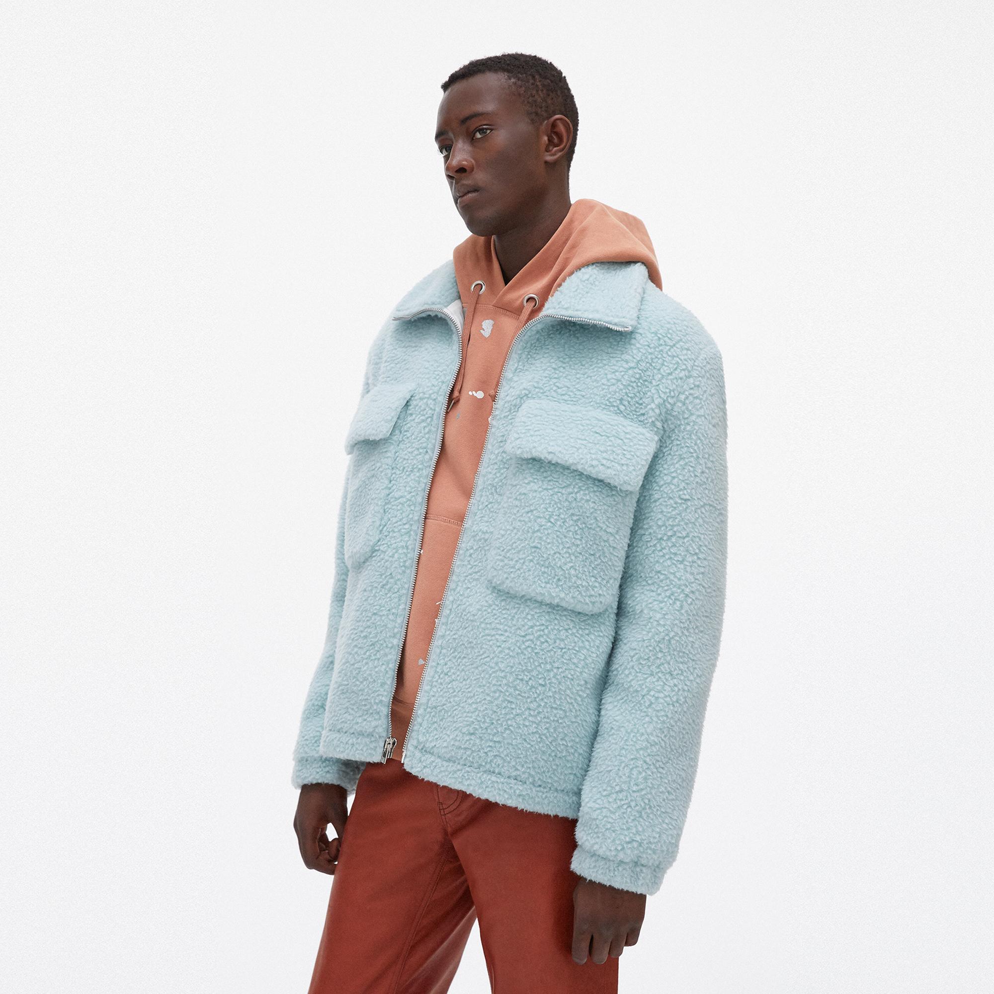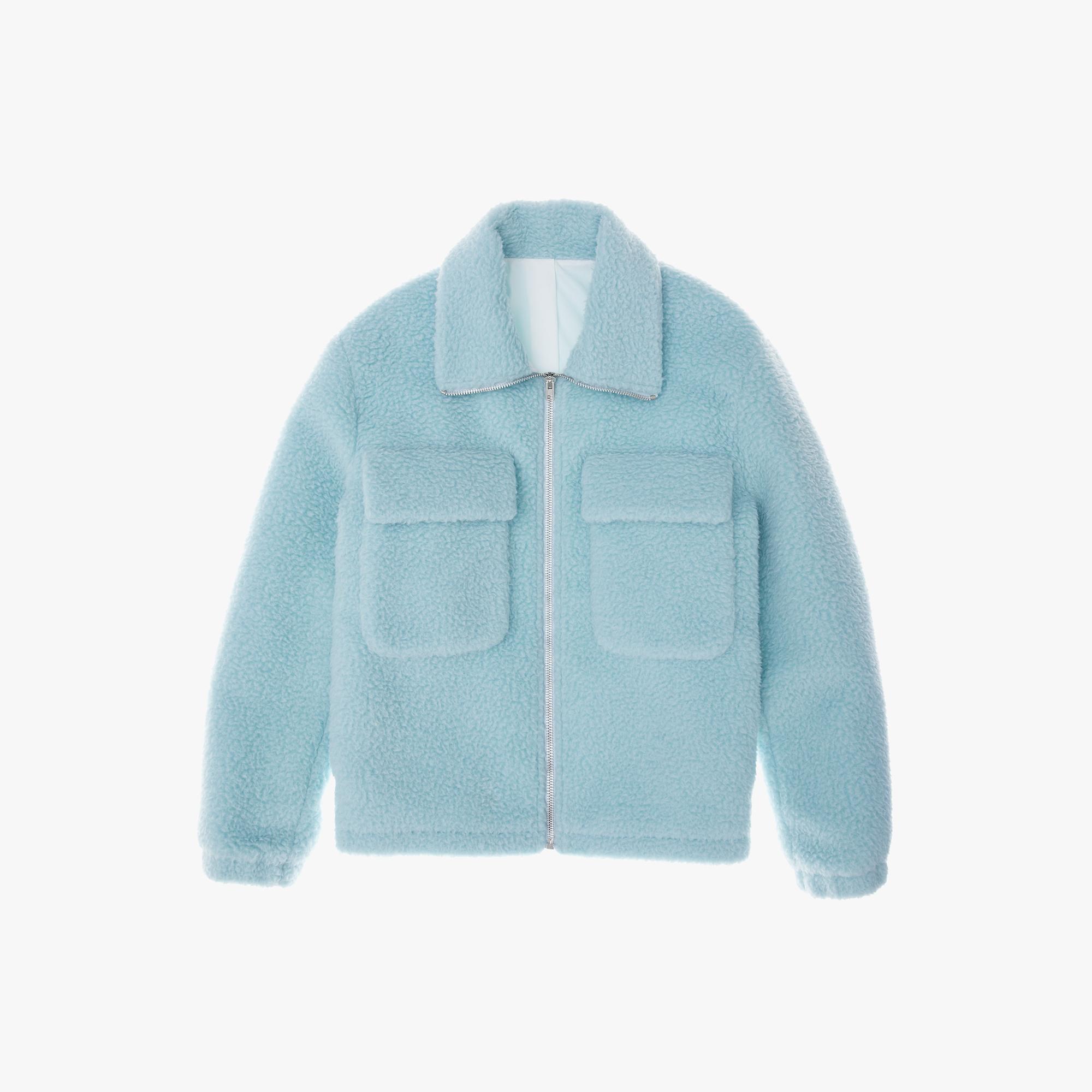 The Helmut Lang Oversized Teddy Zip-Up Jacket is is plush wool jacket with a front zip closure and a stand collar