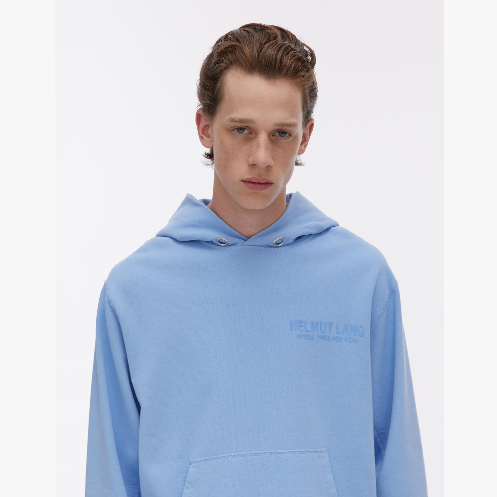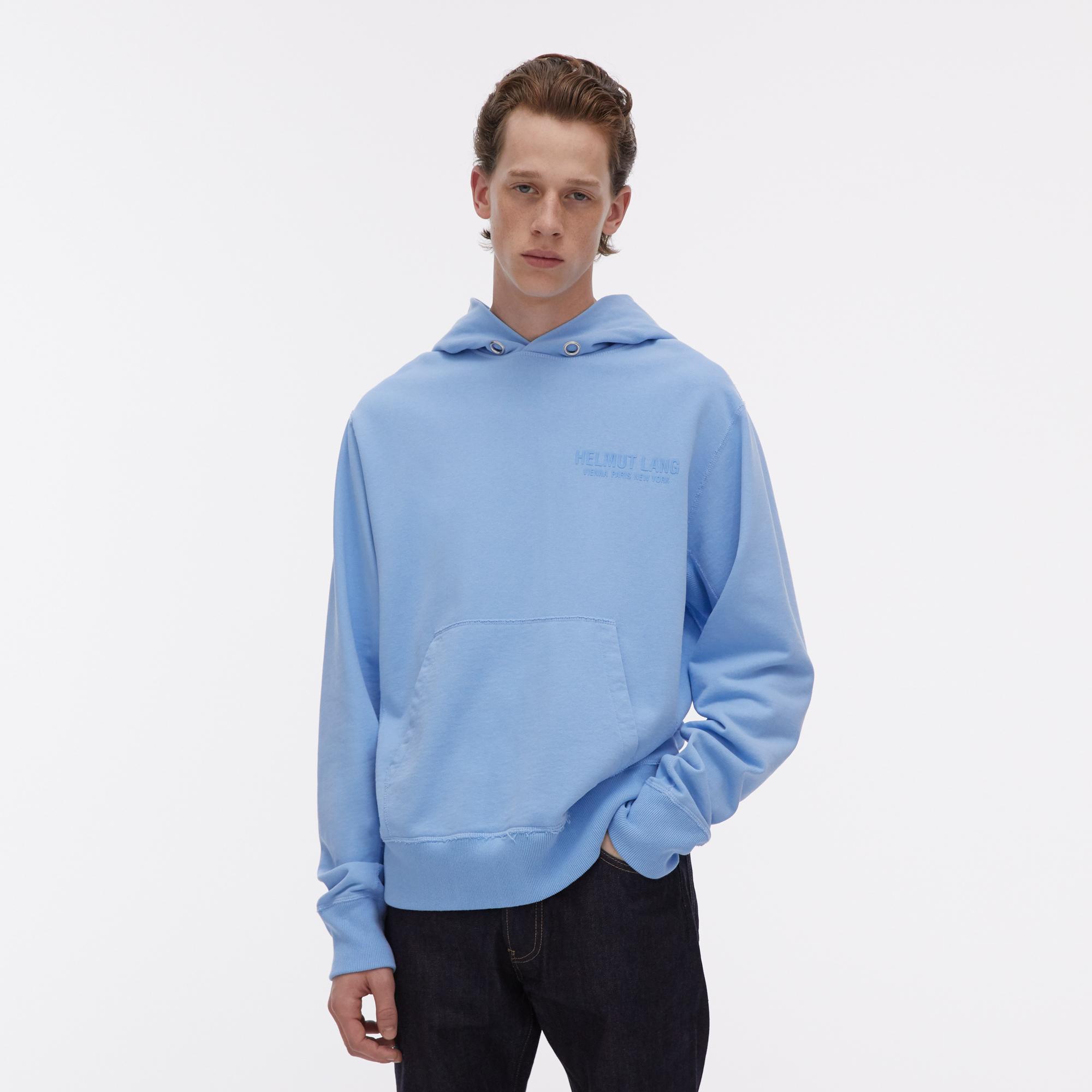 The Helmut Lang Standard Monogram Hoodie is a classic hoodie sweatshirt with a front pocket and monogram on front and back