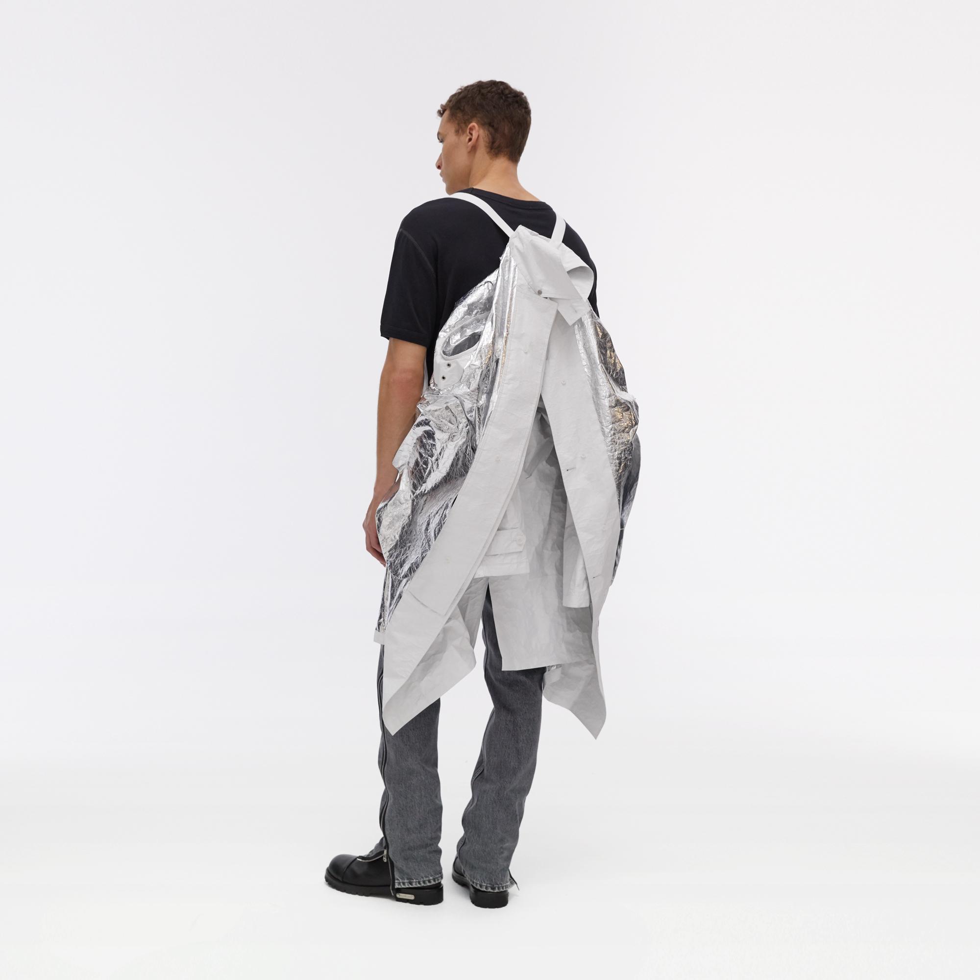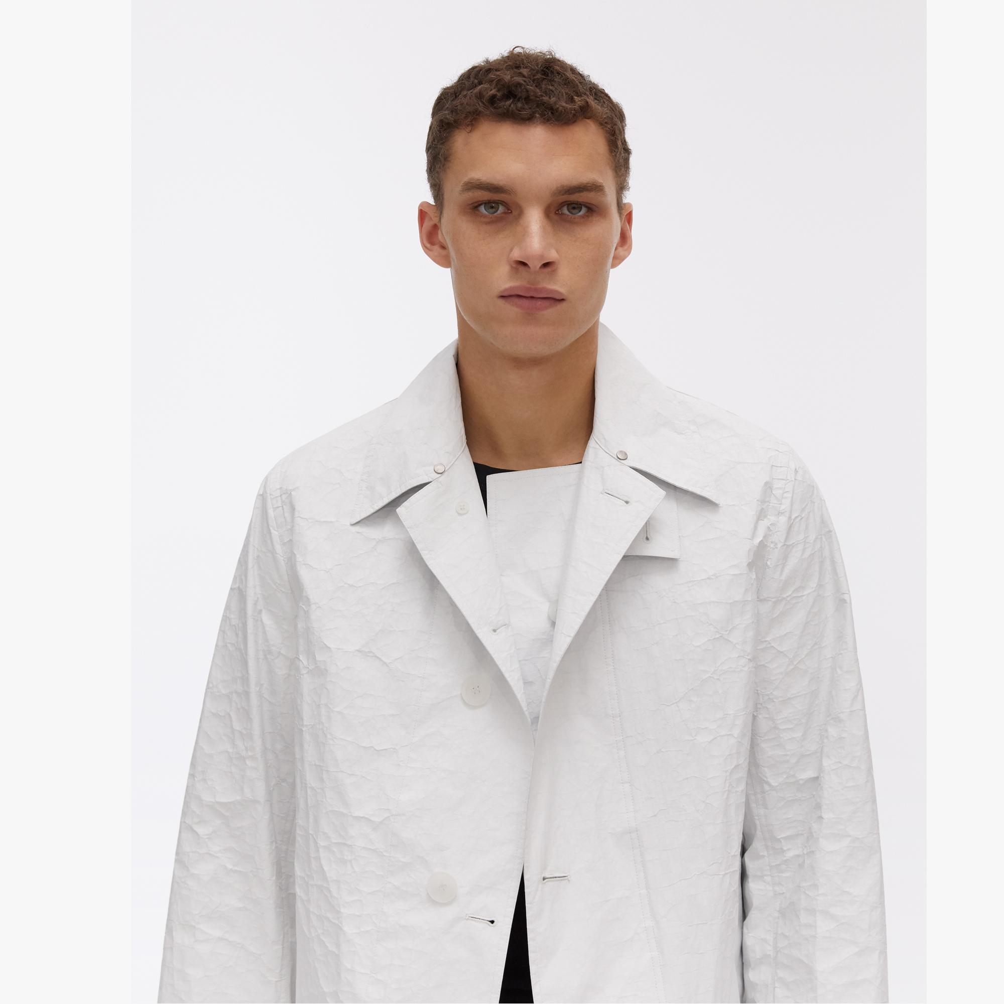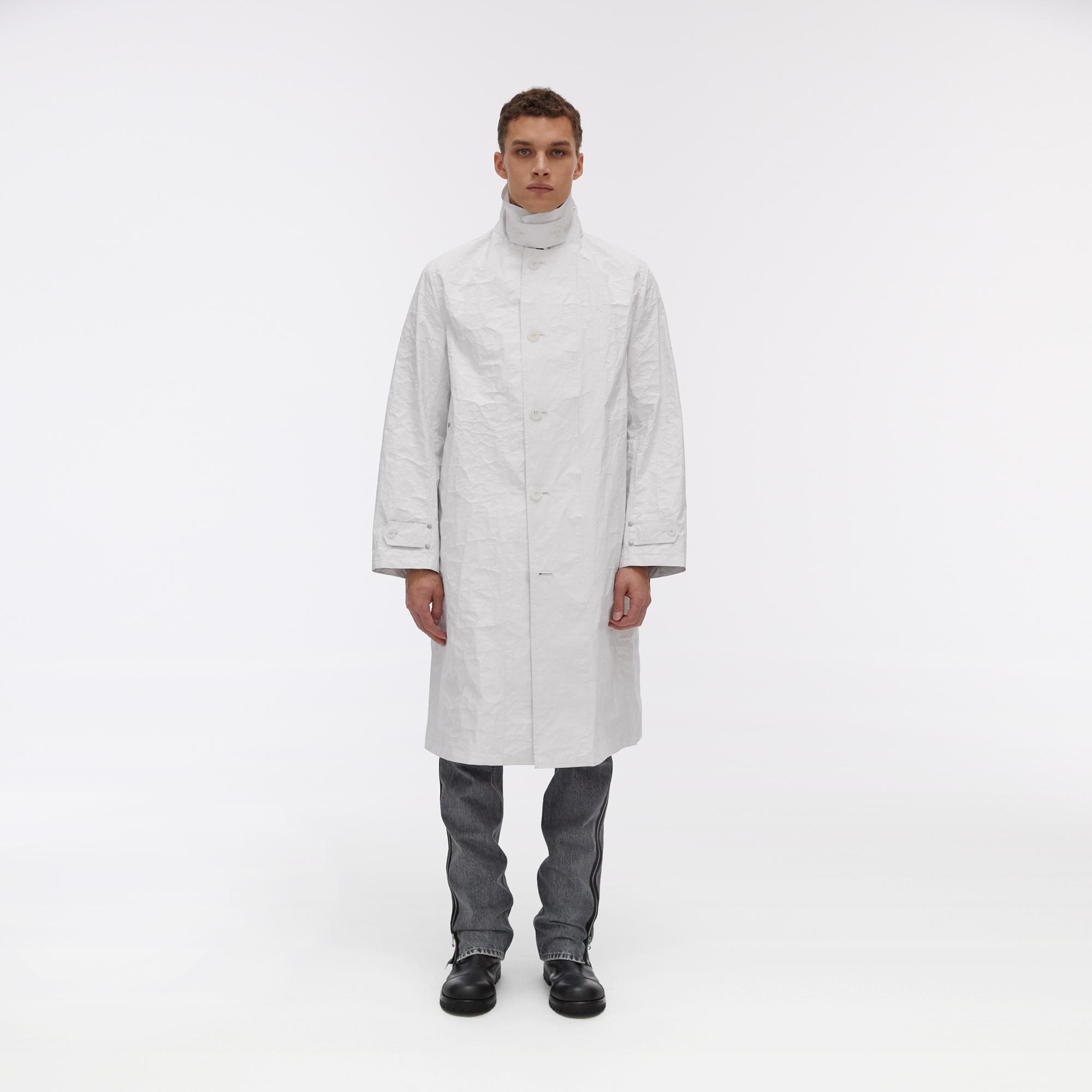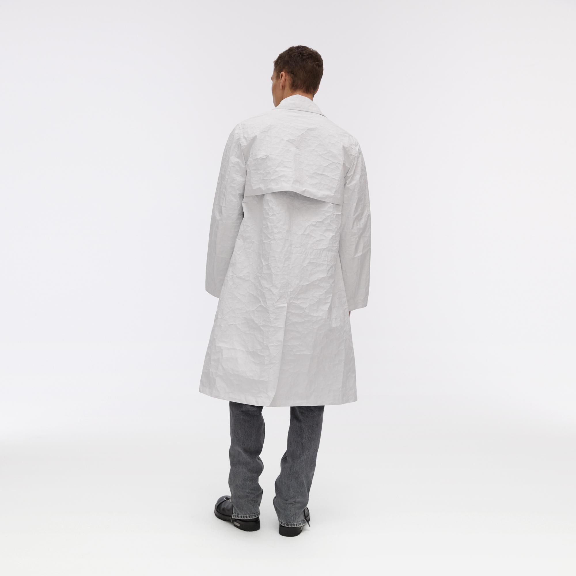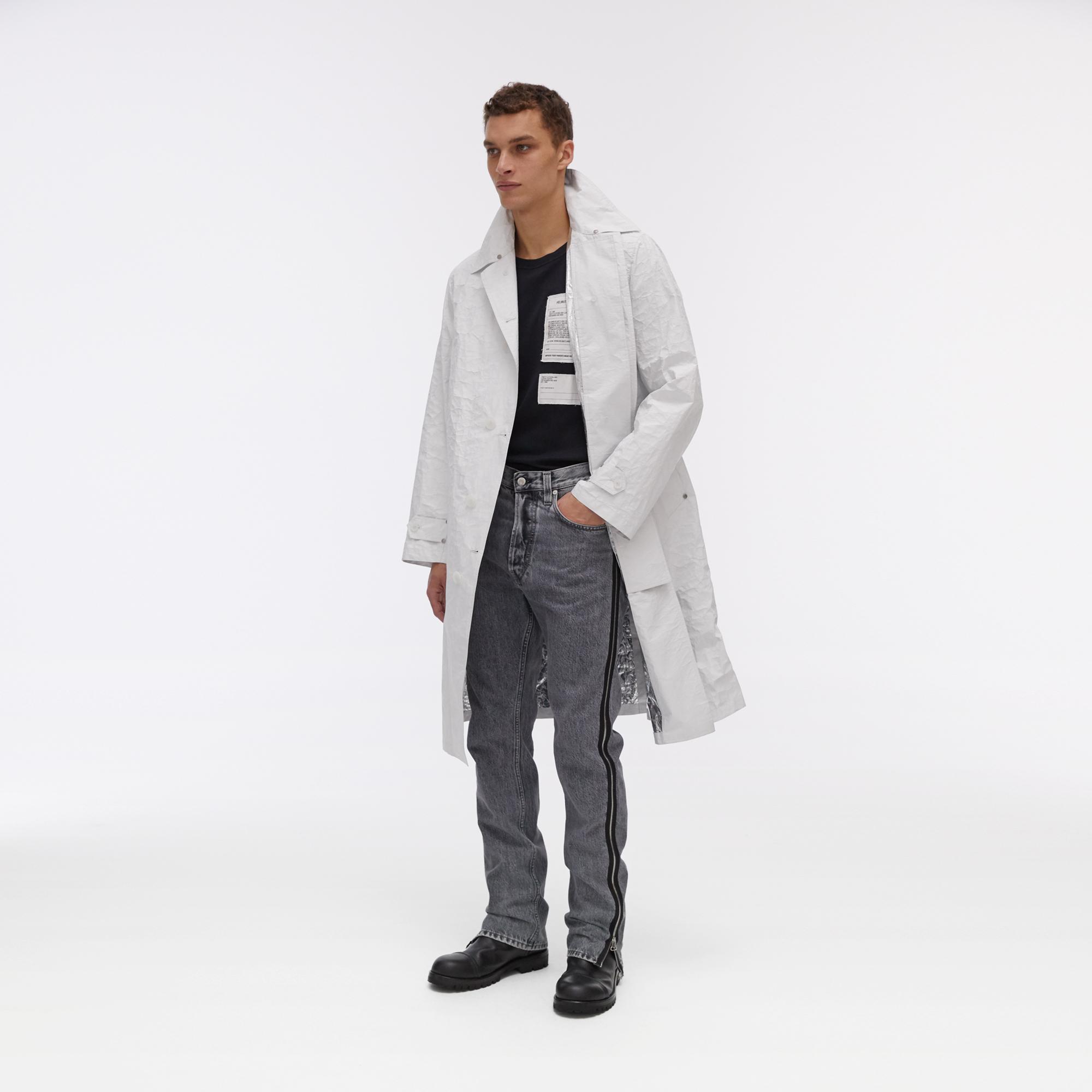 The Helmut Lang Rain Mac Jacket is a convertible-style raincoat featuring a button-front closure and collared neck