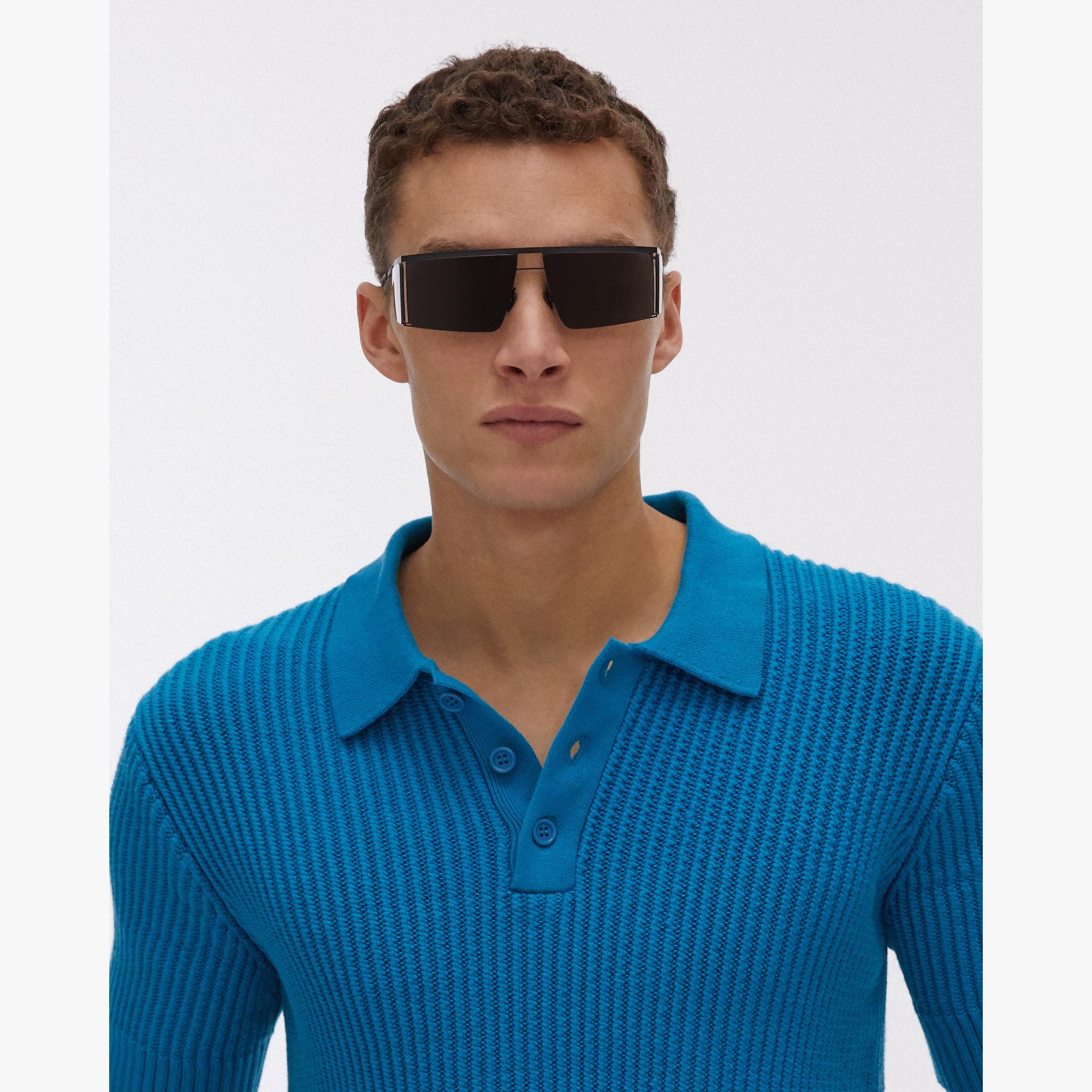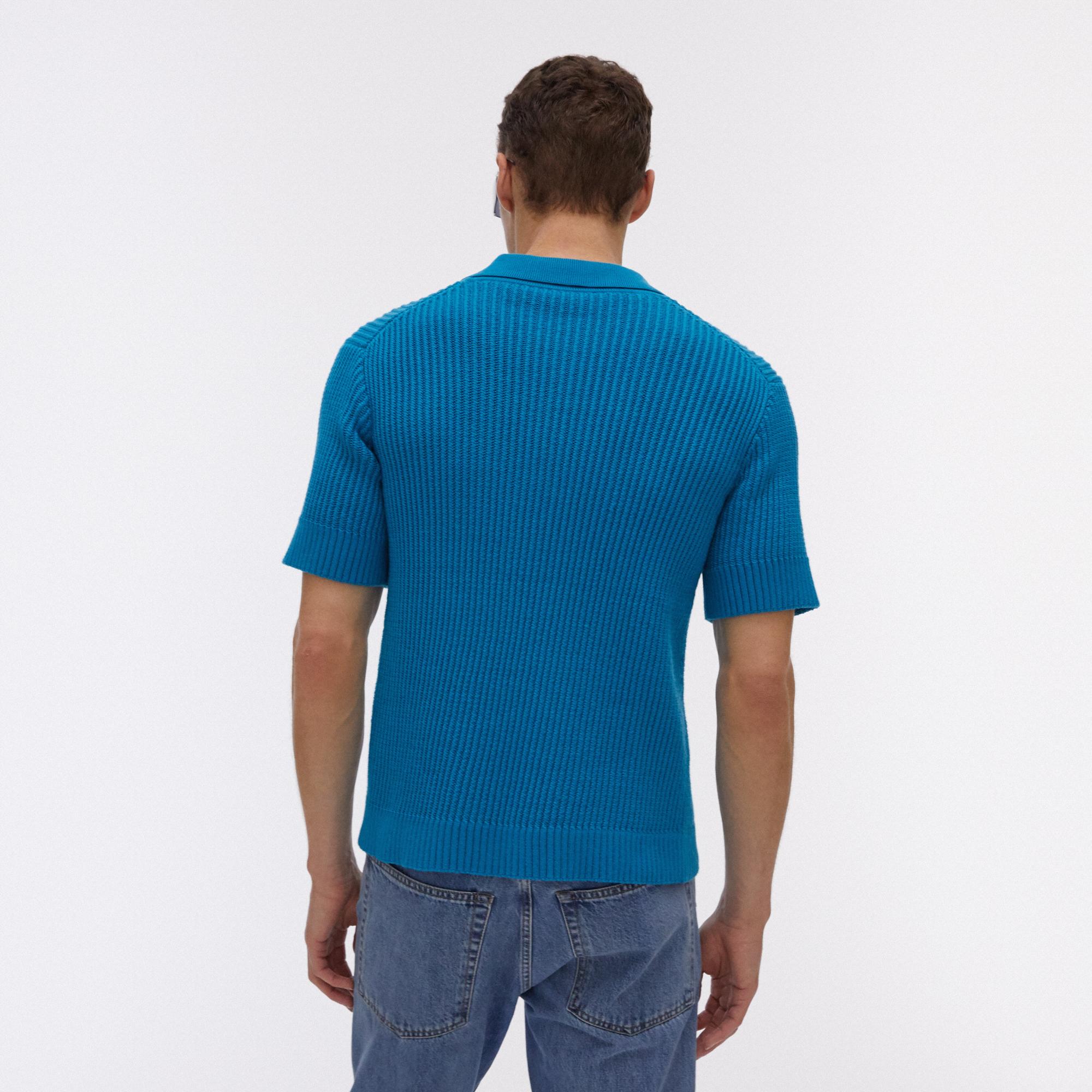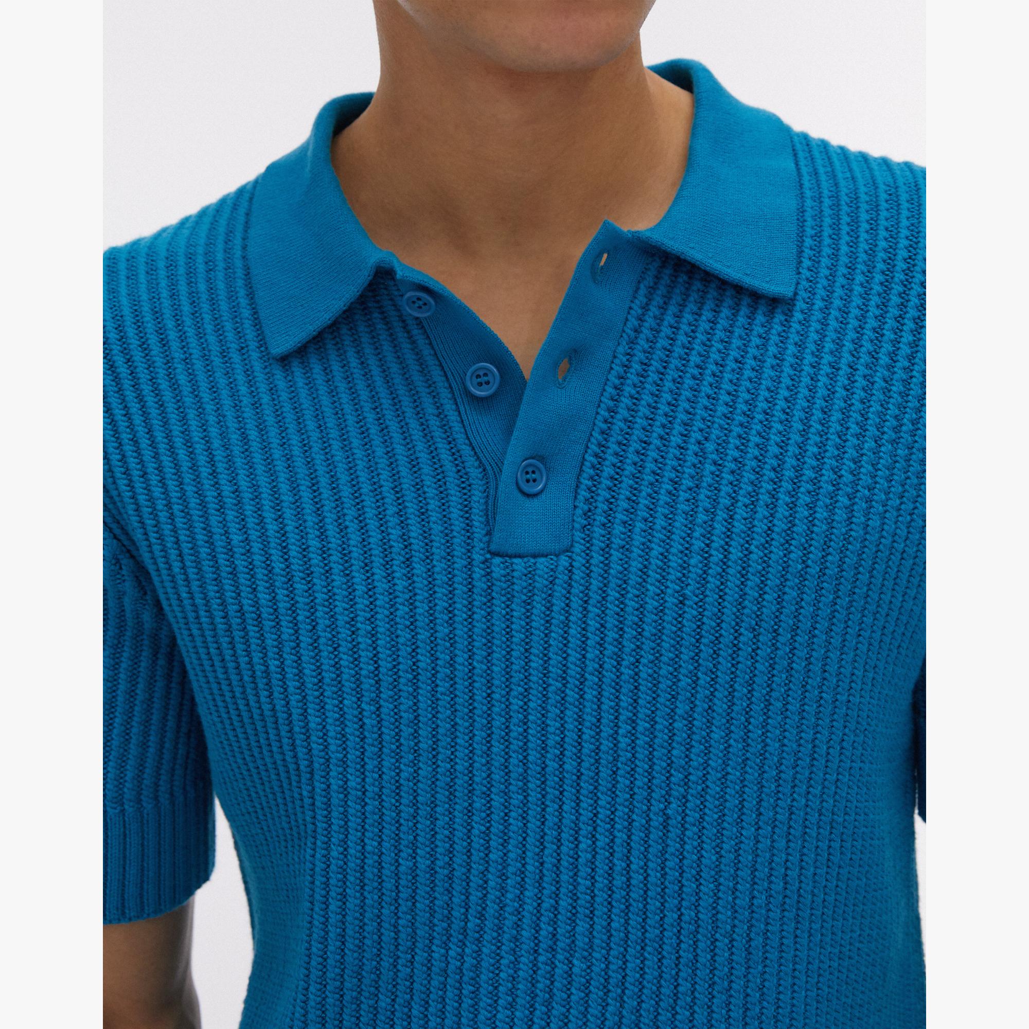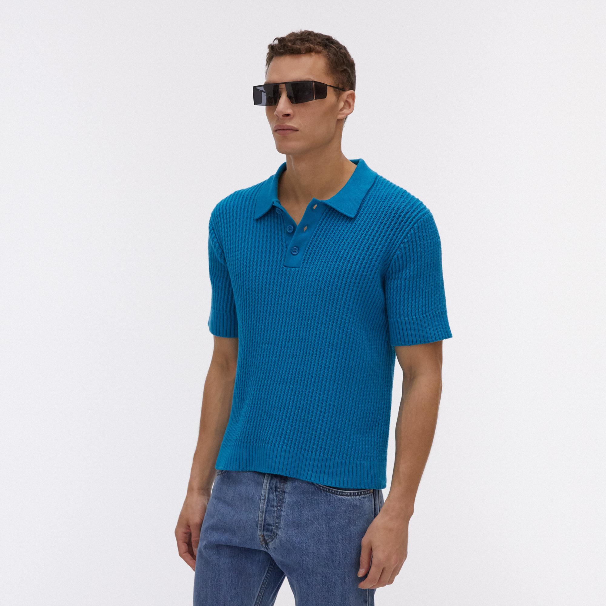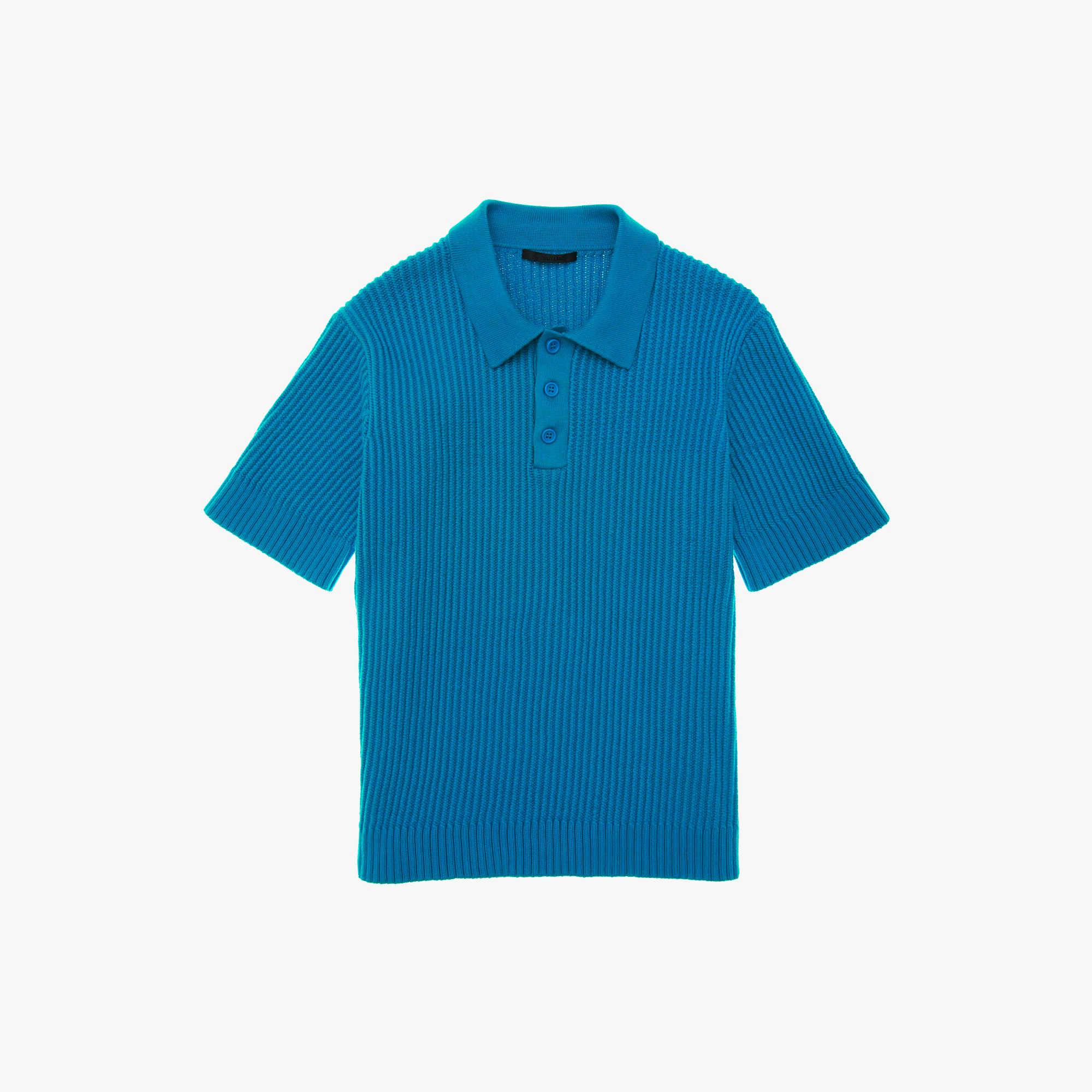The Helmut Lang Cable Cotton Polo Shirt is a short-sleeve, ribbed knit cotton polo shirt with a collar