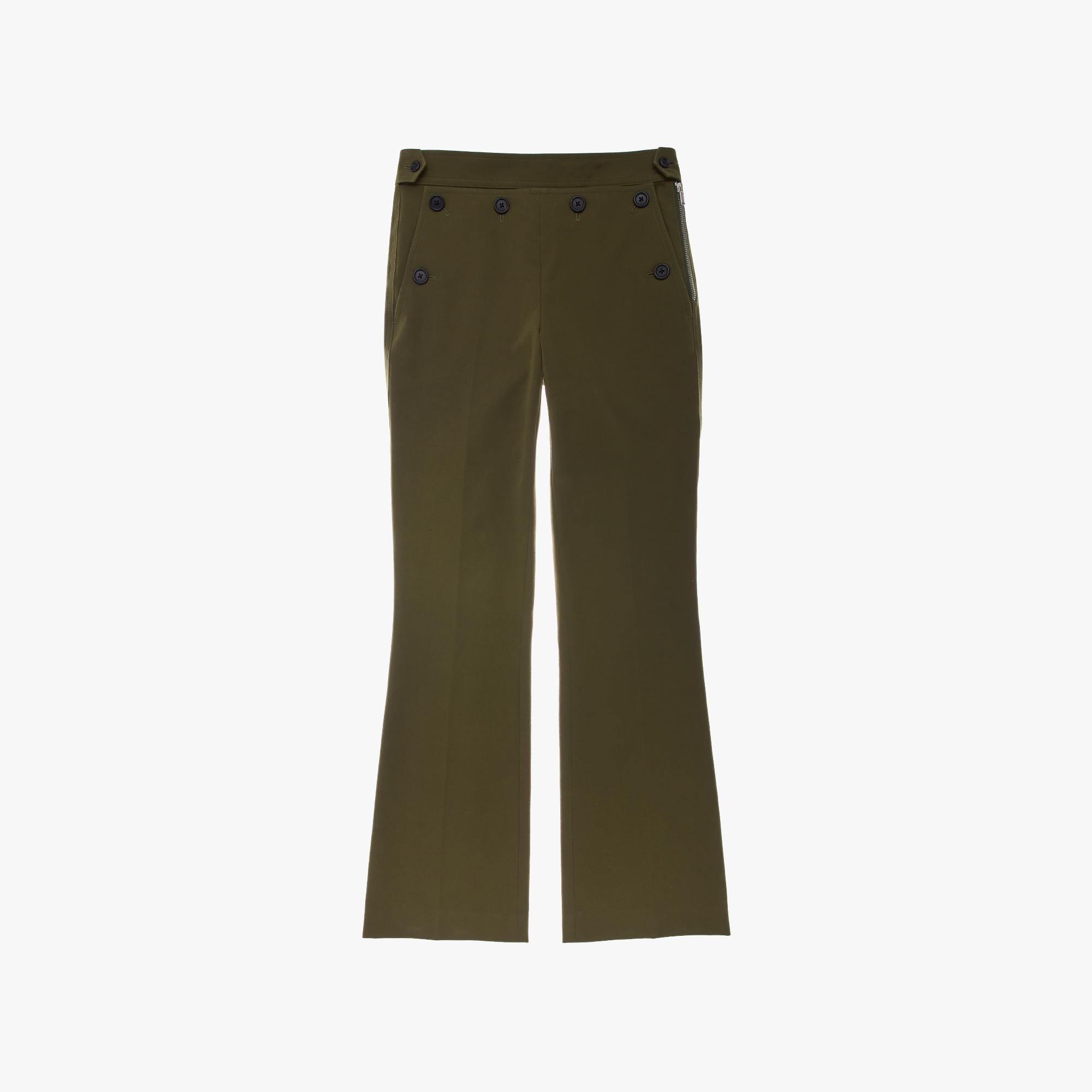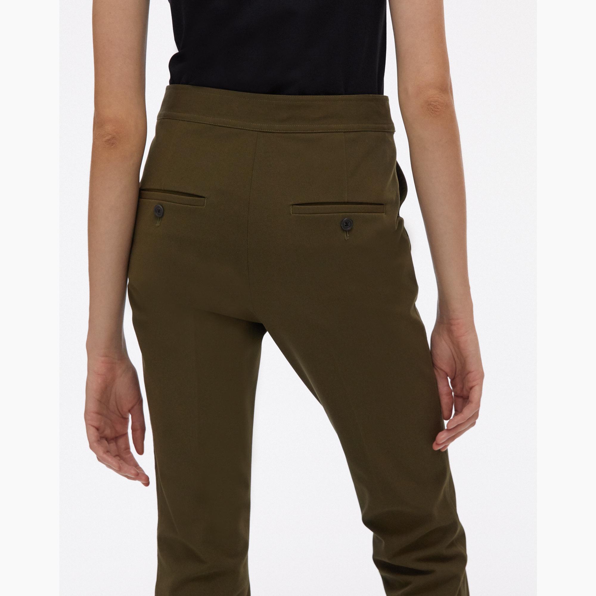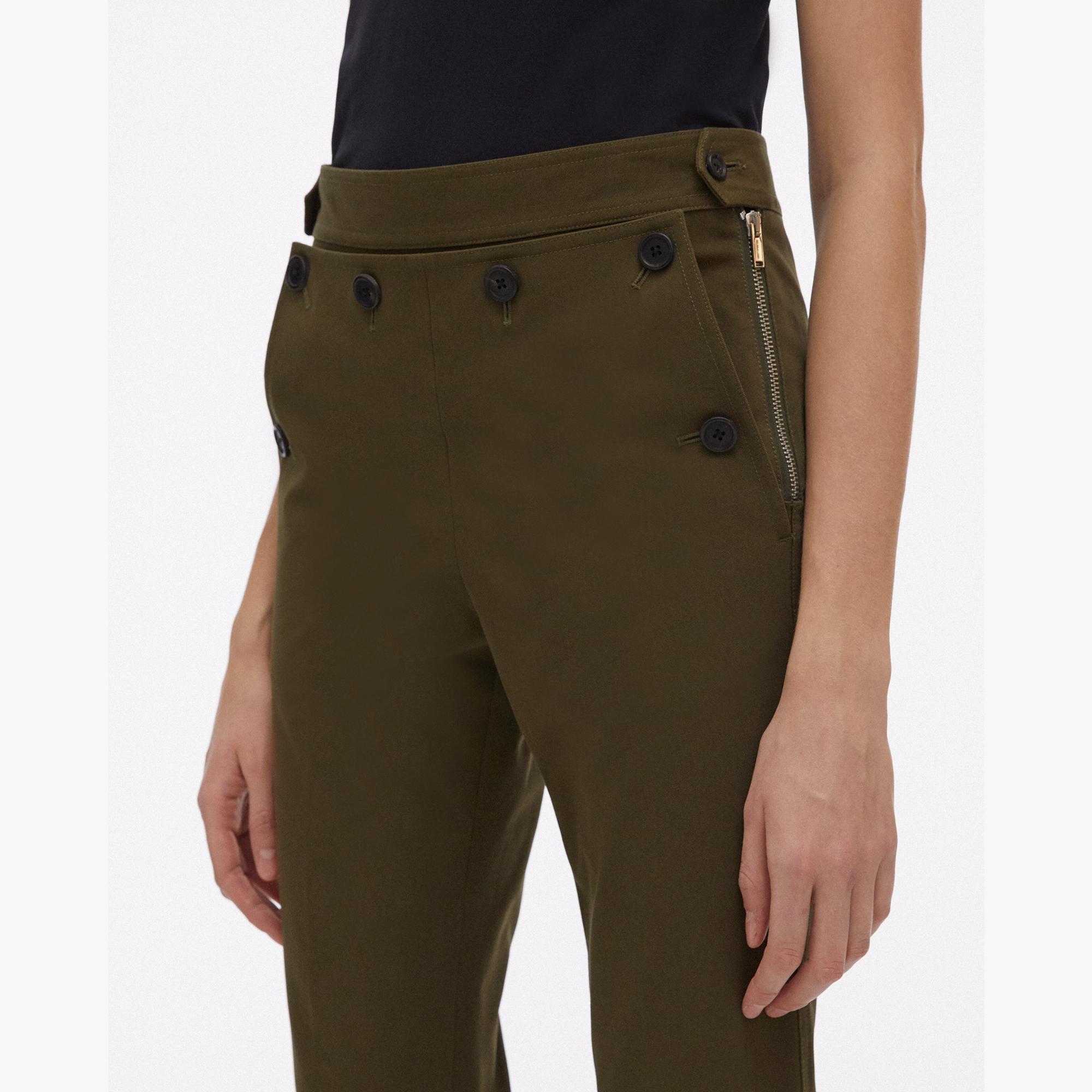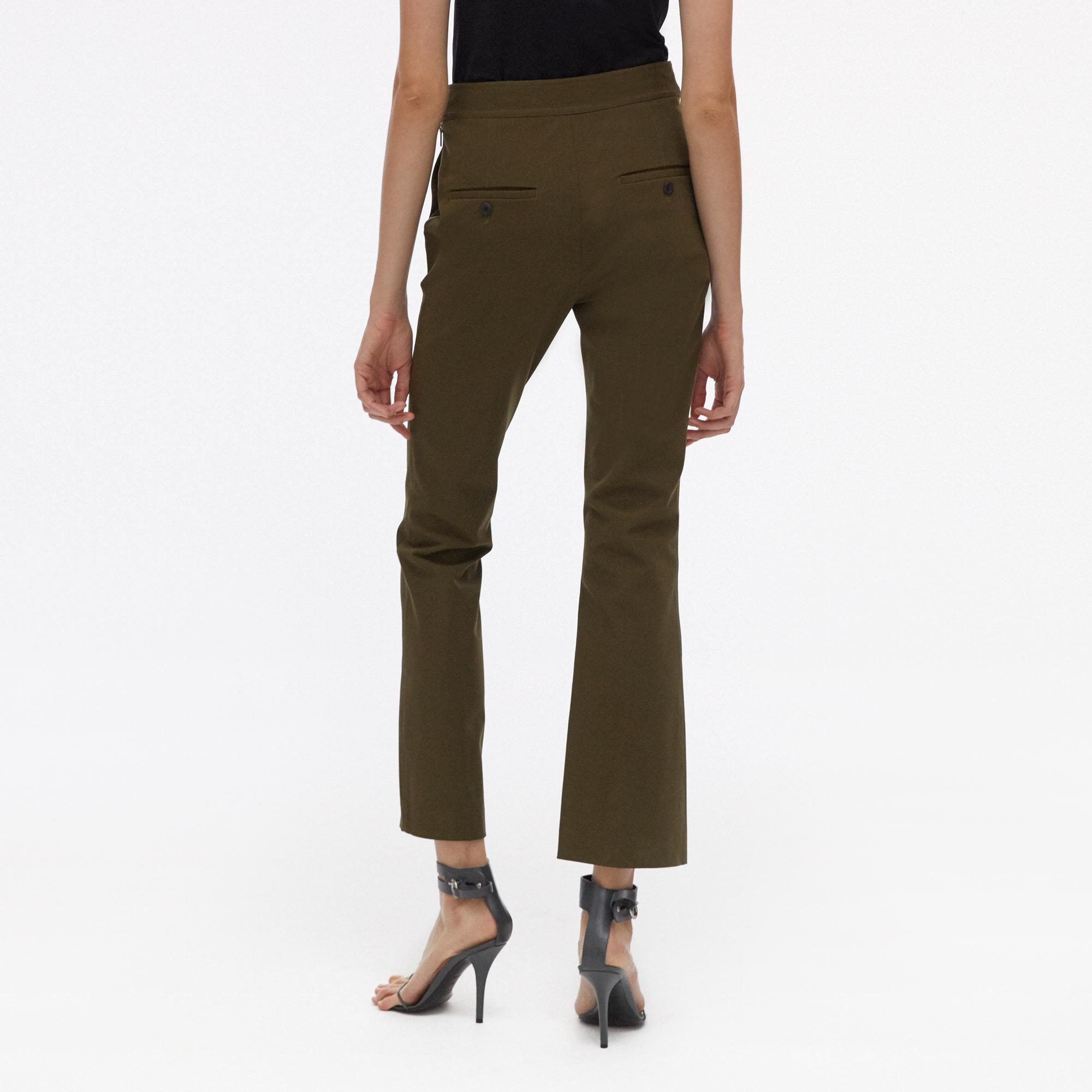 The Helmut Lang Rider Crop Pant is a cotton blend dress pant with button details and a subtle kick flare