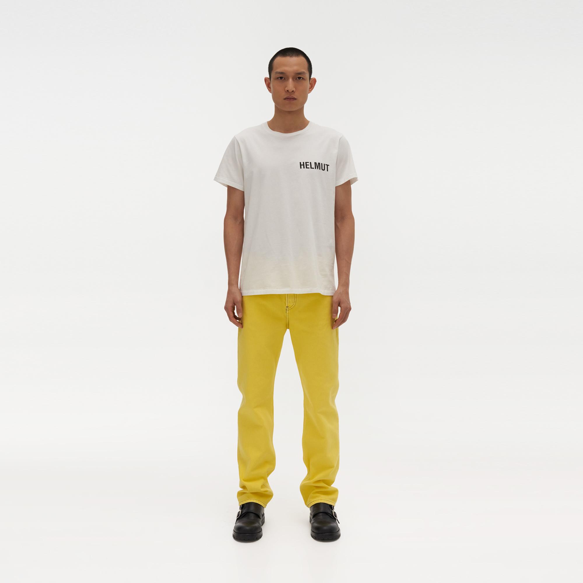 The Helmut Lang Glowcore Standard Tee is a classic cotton short-sleeve T-shirt with logo front and glow in the dark lettering on back