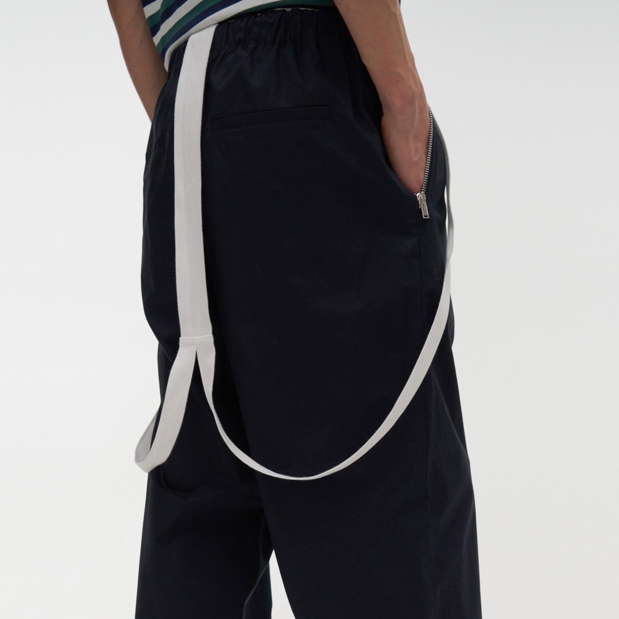 The Helmut Lang Drawstring Pant is designed in lightweight cotton with an elastic waistband and adjustable suspender detail