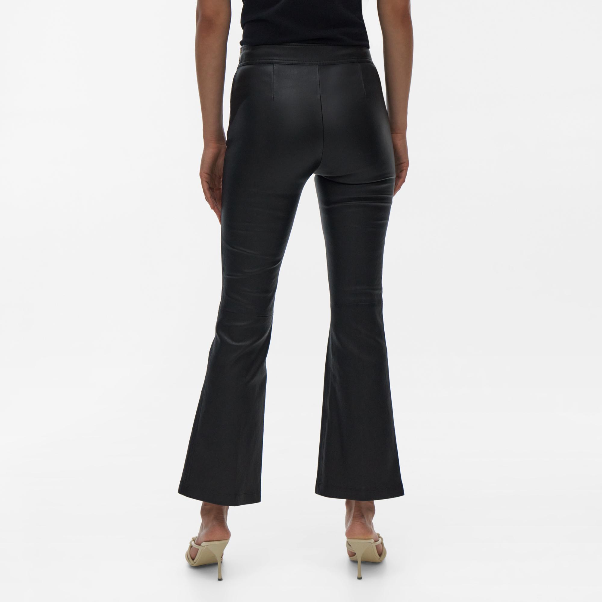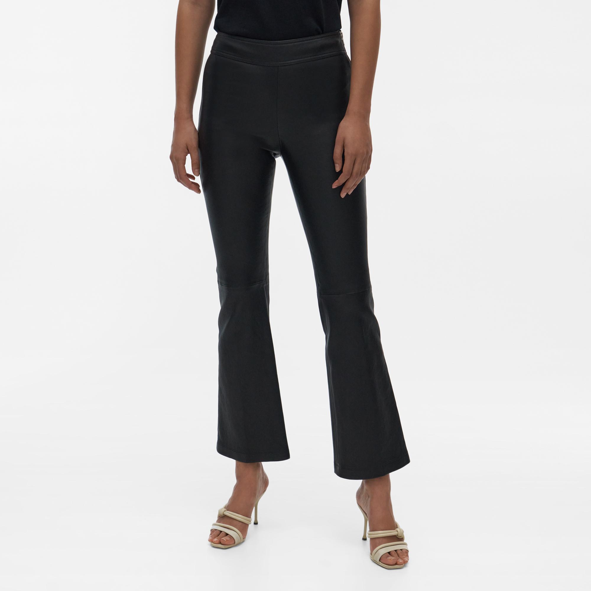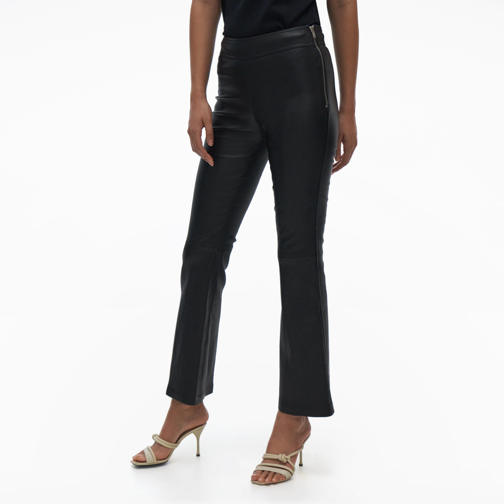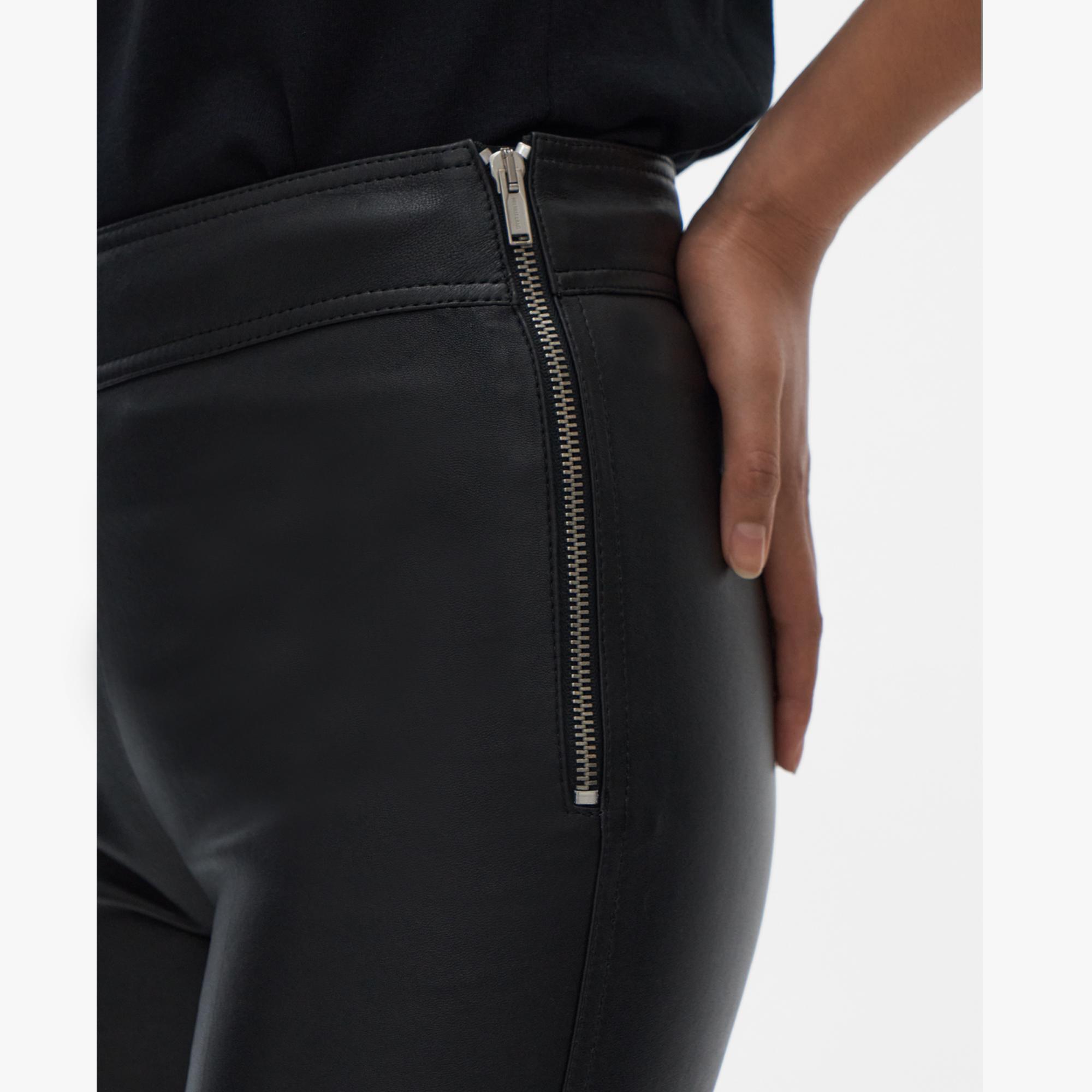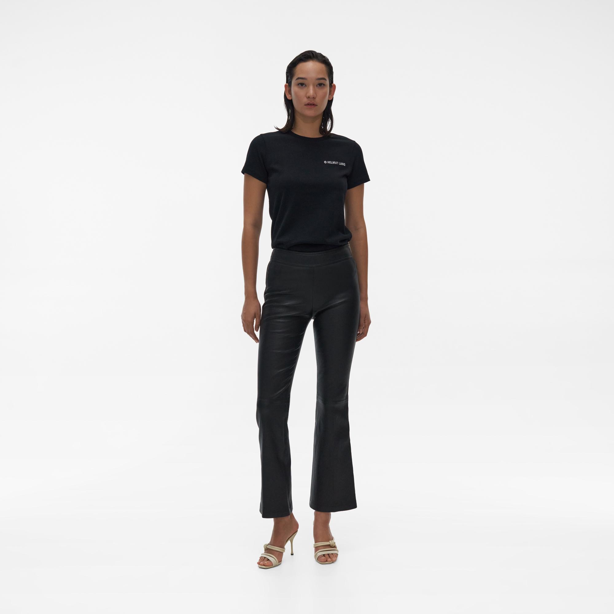 The Helmut Lang Leather Legging is mid-rise sytle with a side zip and kick flare cropped hem