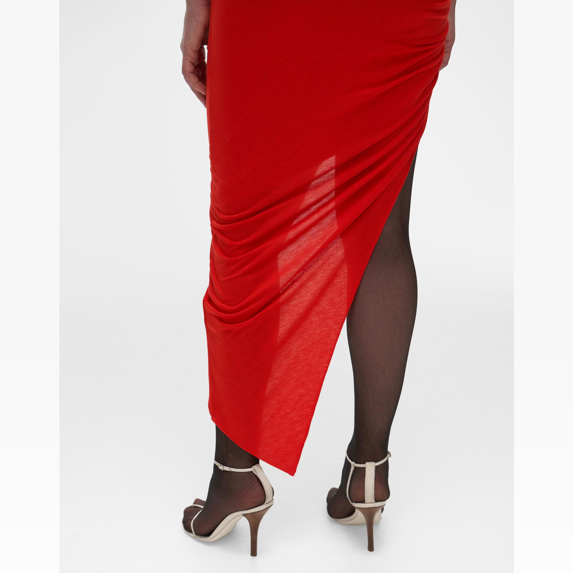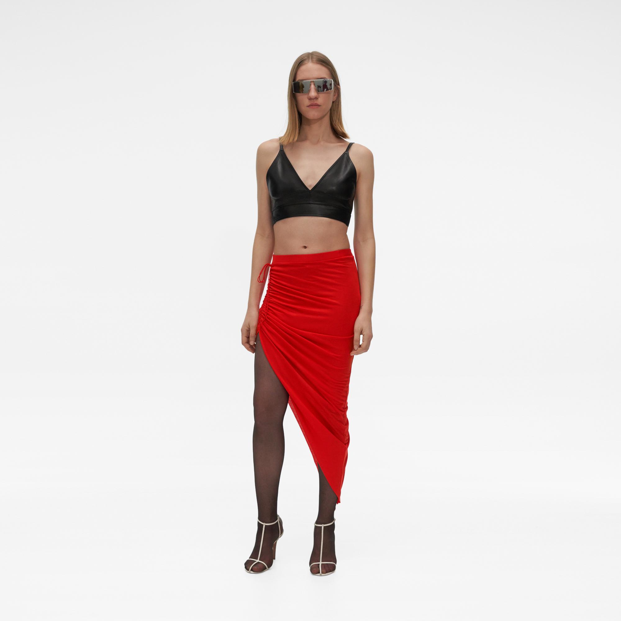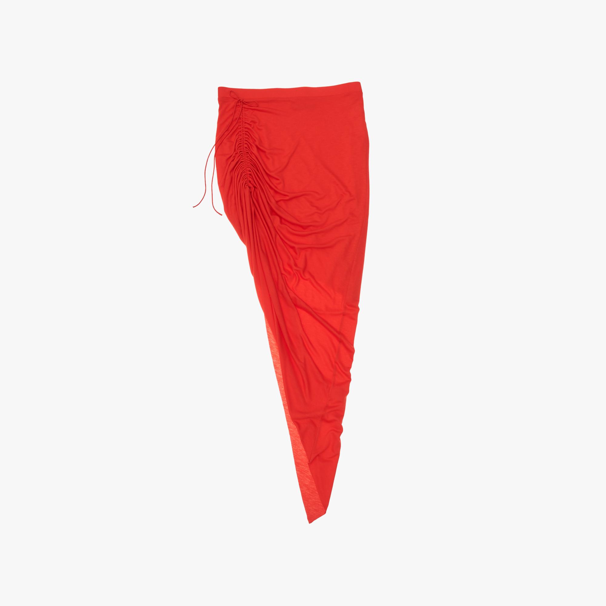 The Helmut Lang Drawstring Skirt is a jersey asymmetric skirt with a drawstring side detail and elastic waistband