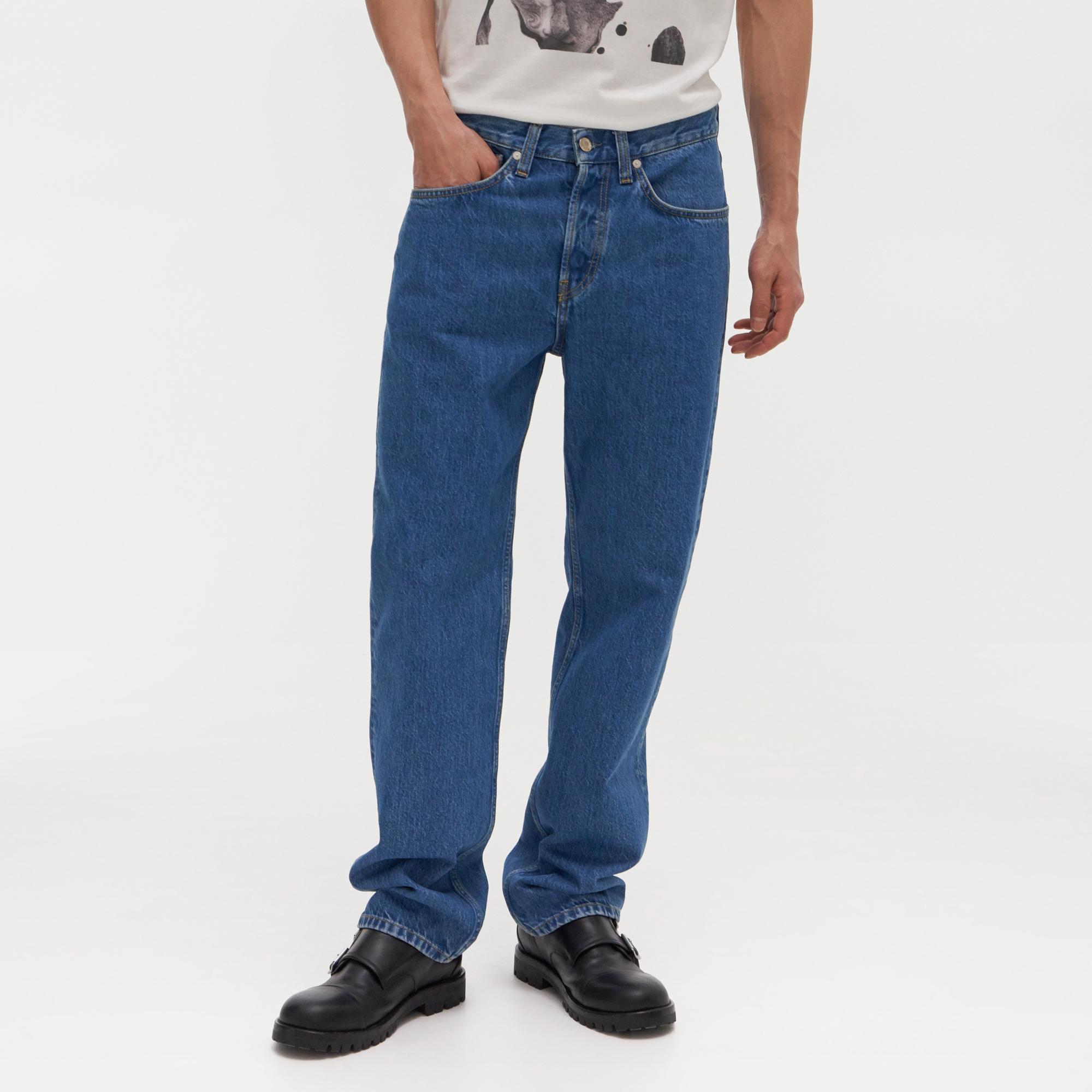 The Helmut Lang Masc Lo Easy Jeans are 100% cotton denim jeans with a low rise and easy, straight leg
