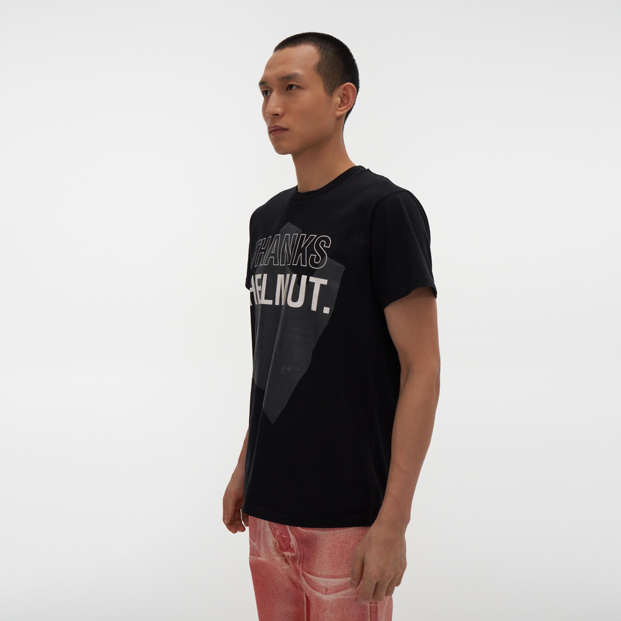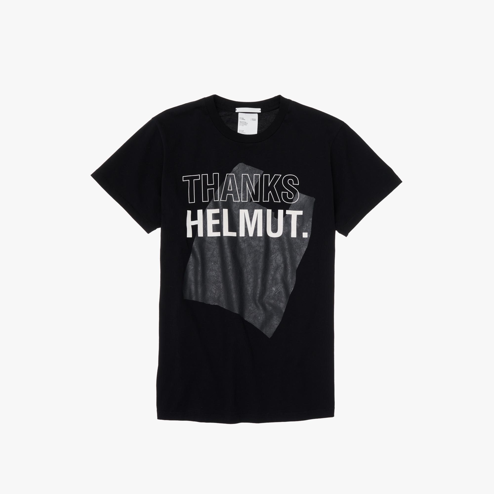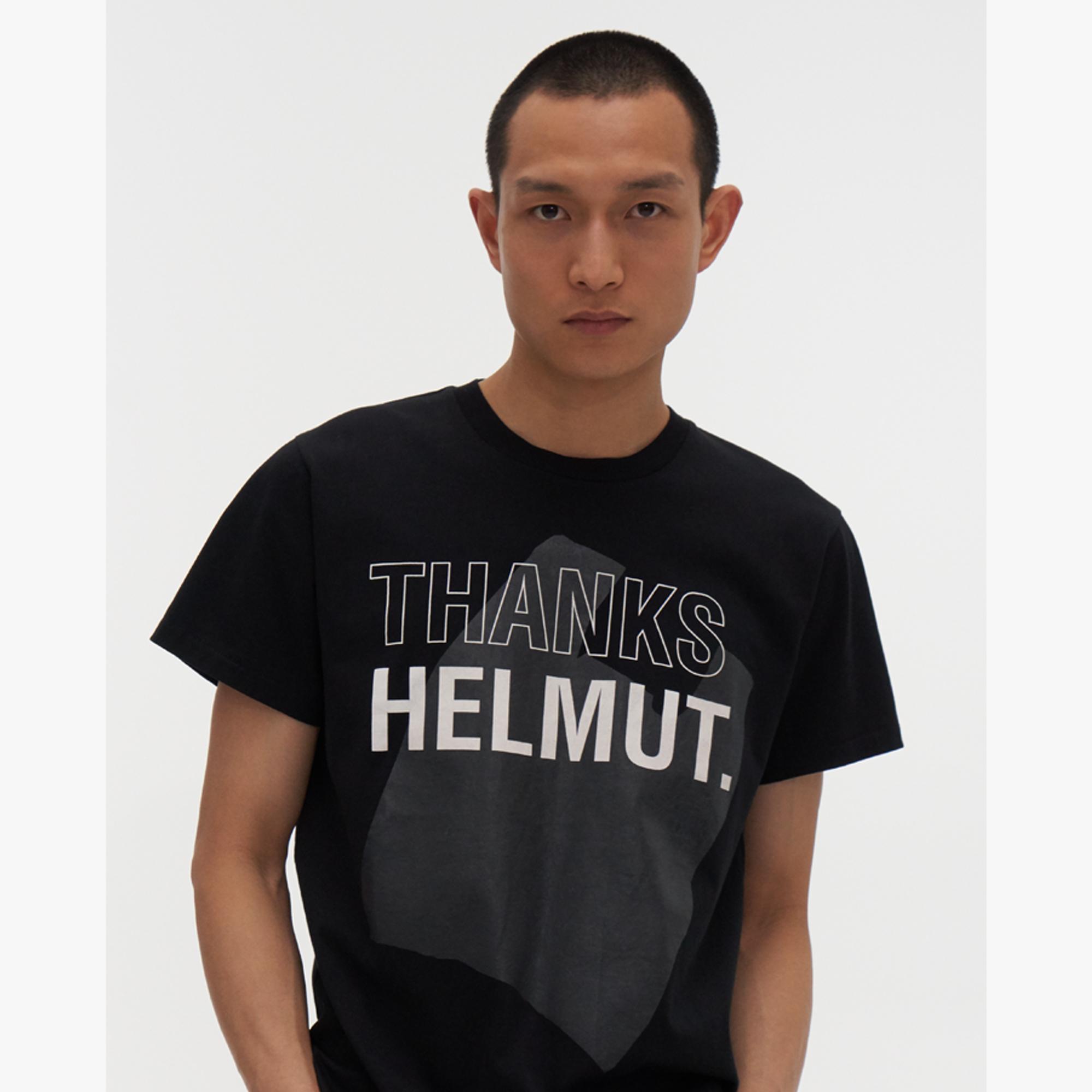 The Helmut Lang Thanks! Standard Tee is a classic cotton short-sleeve T-shirt printed with Thanks Helmut graphic