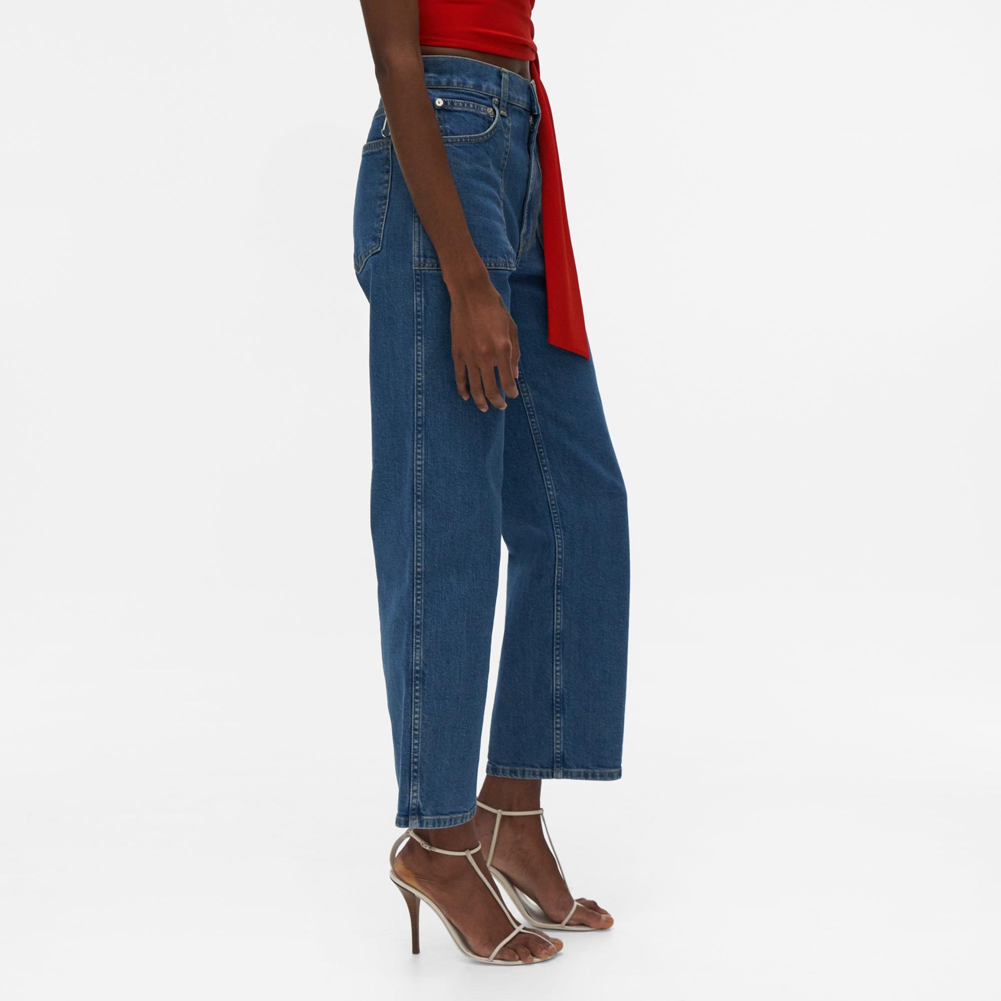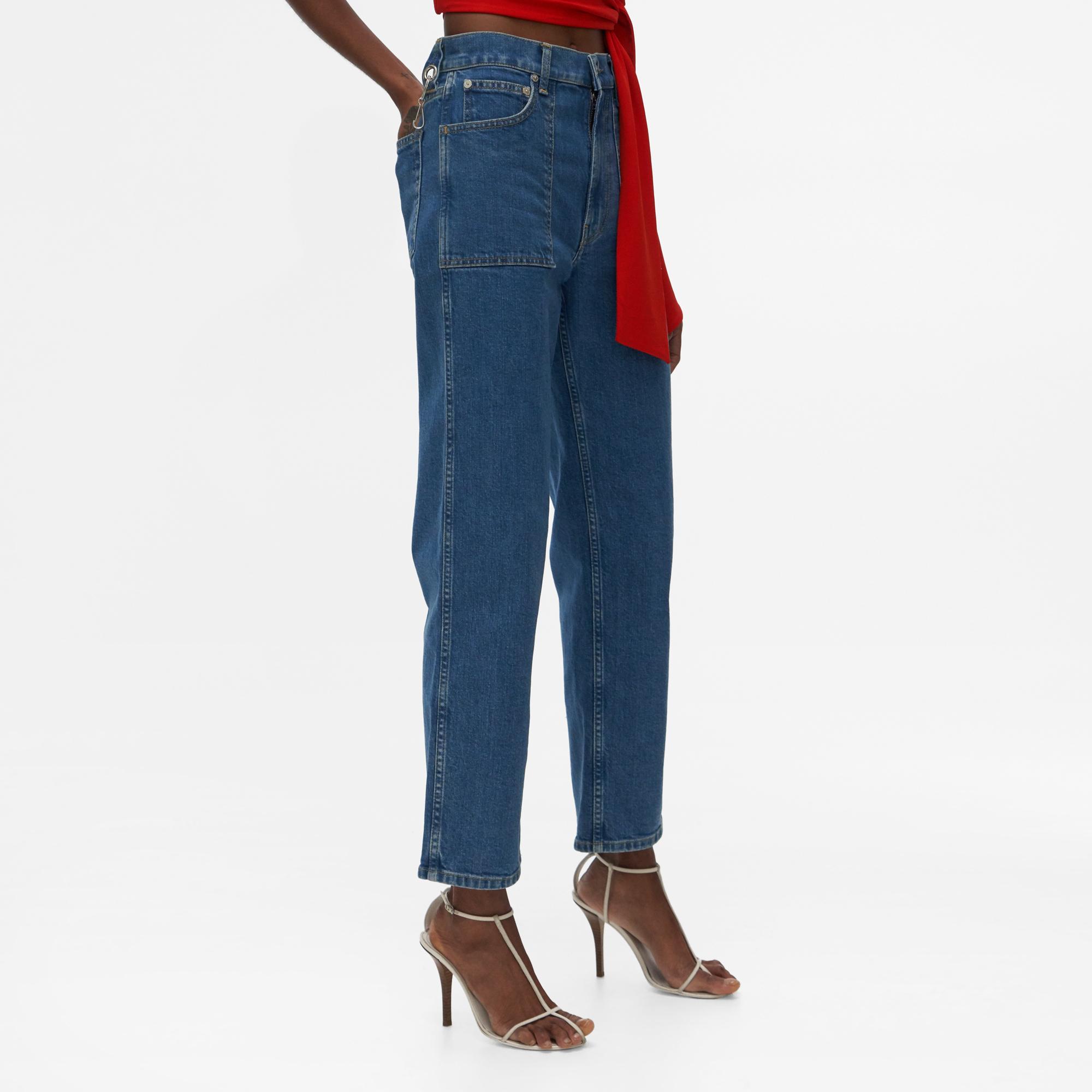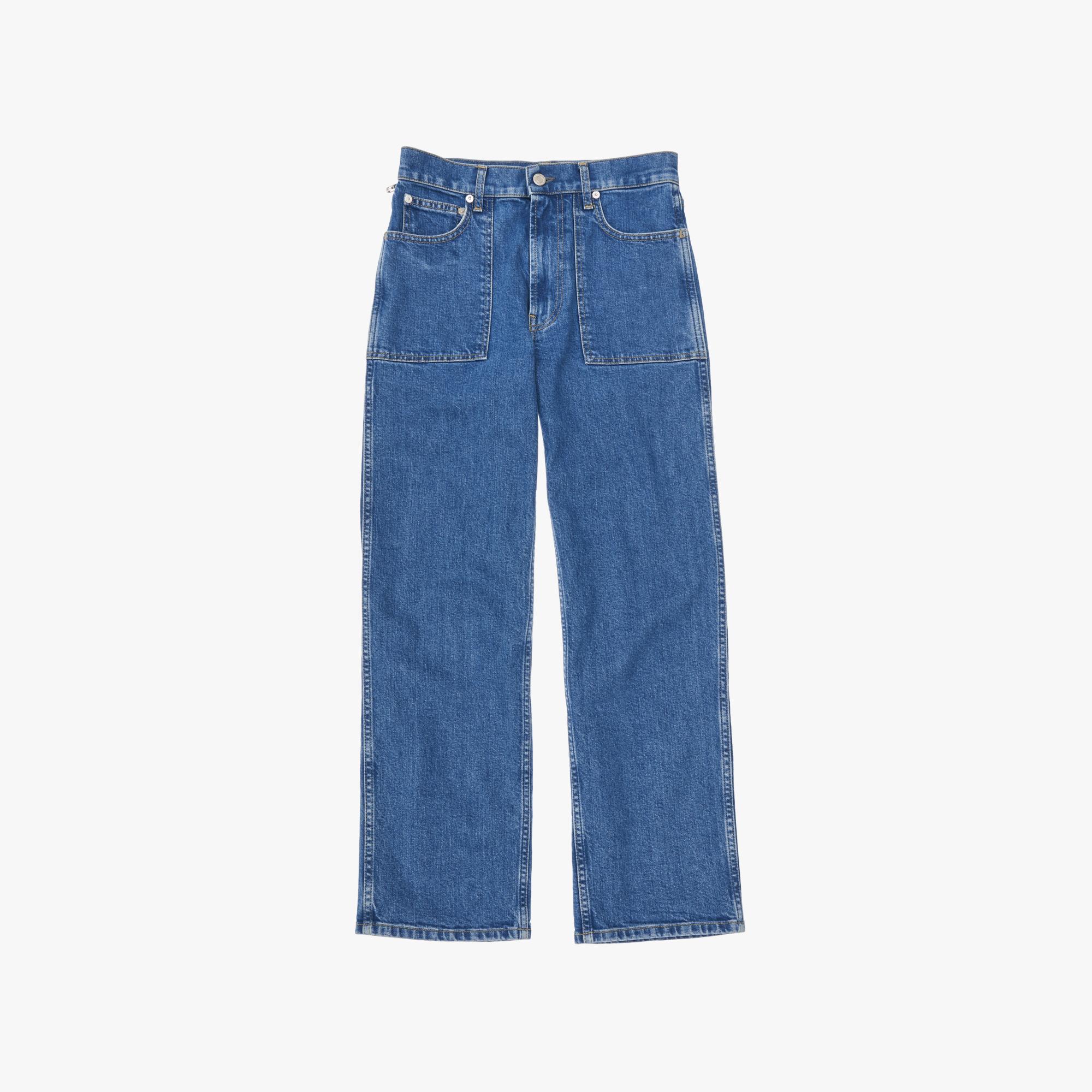 The Helmut Lang Factory Jeans are high-rise cropped jeans with patch pockets and a straight leg