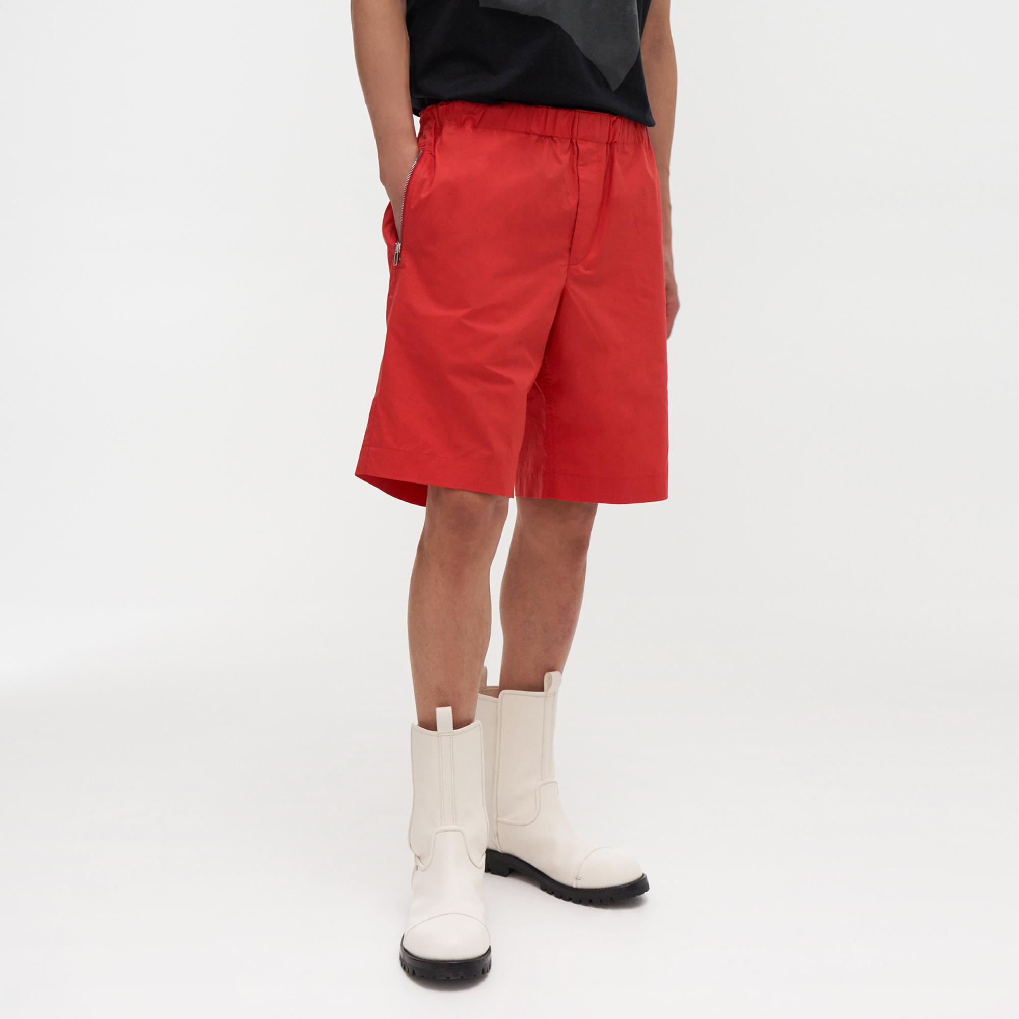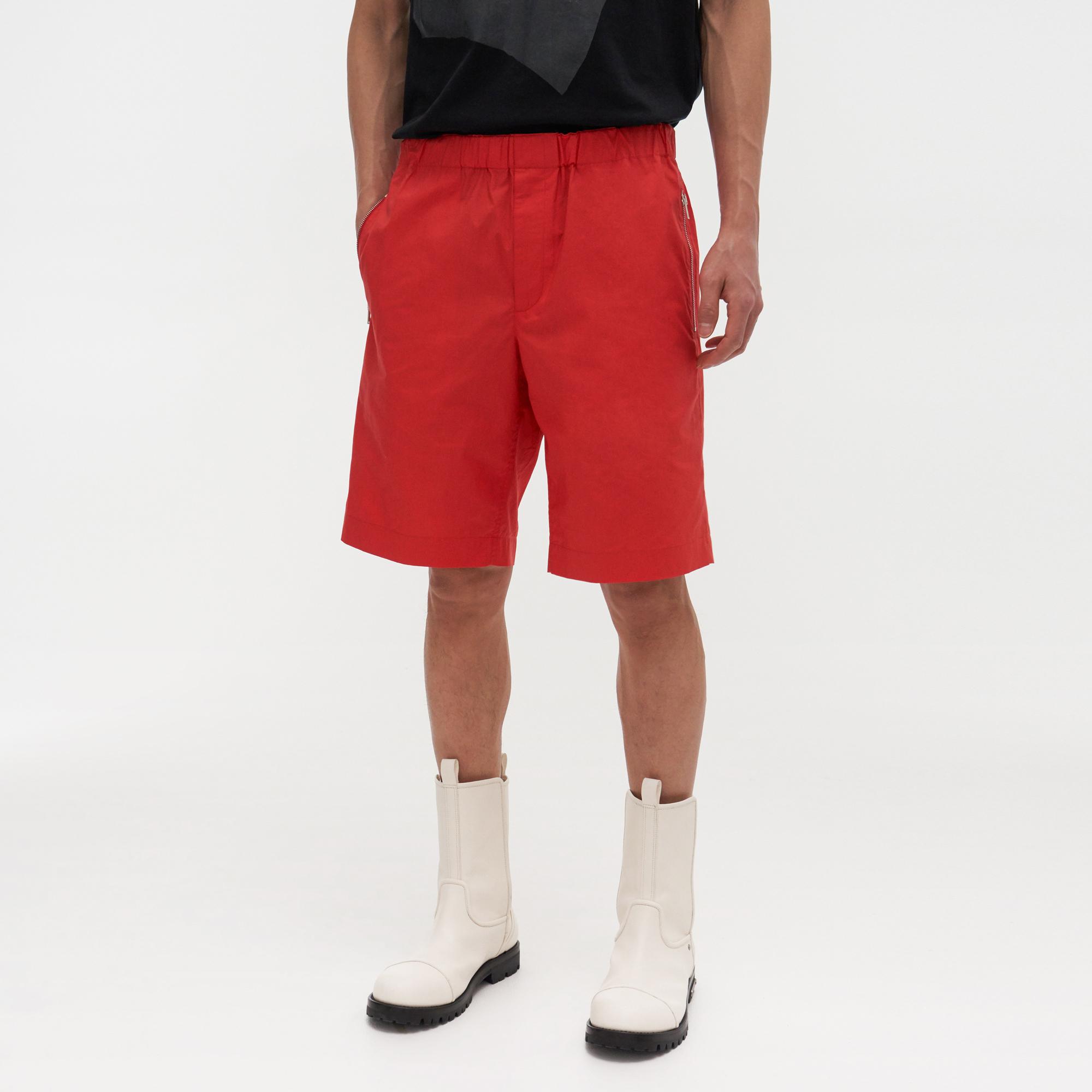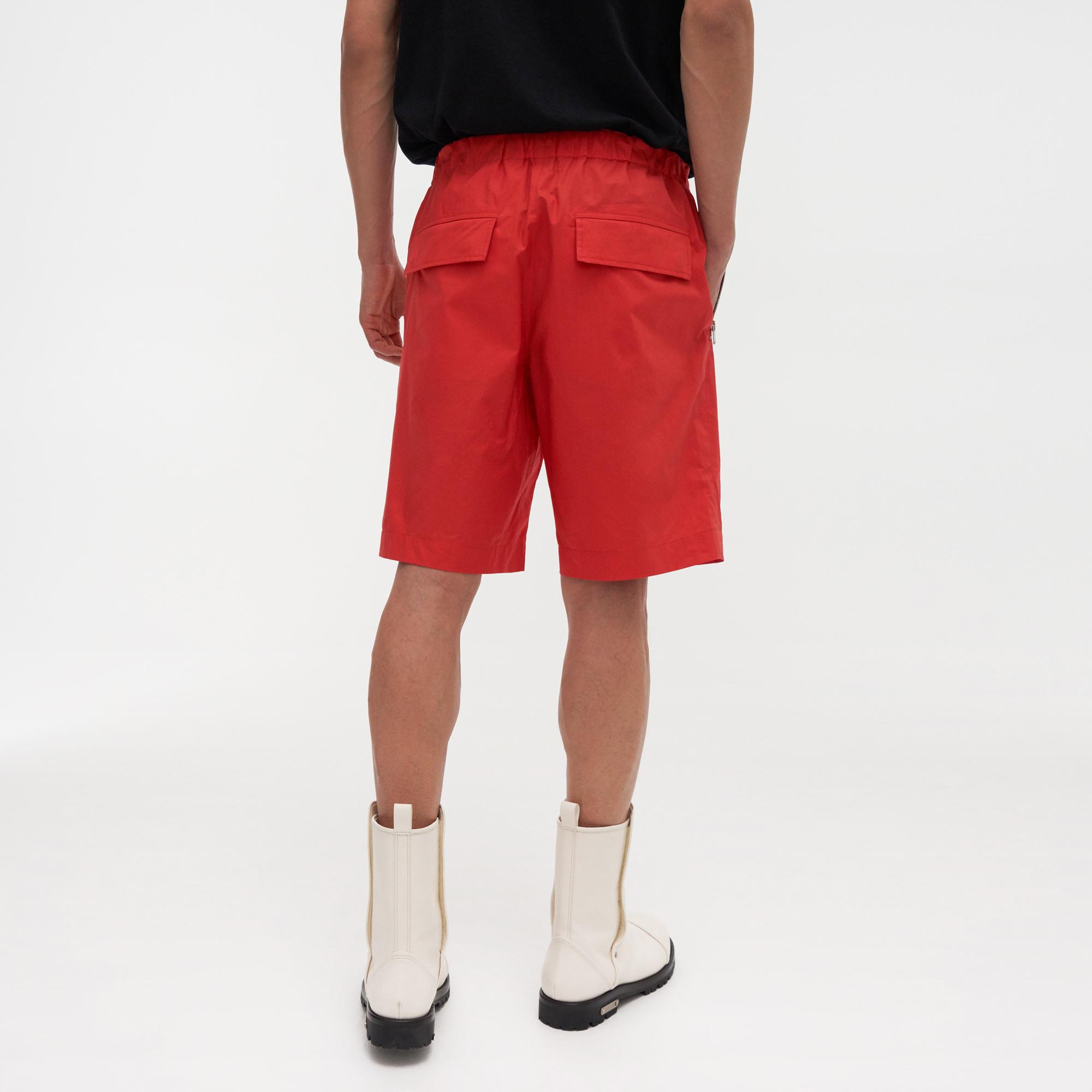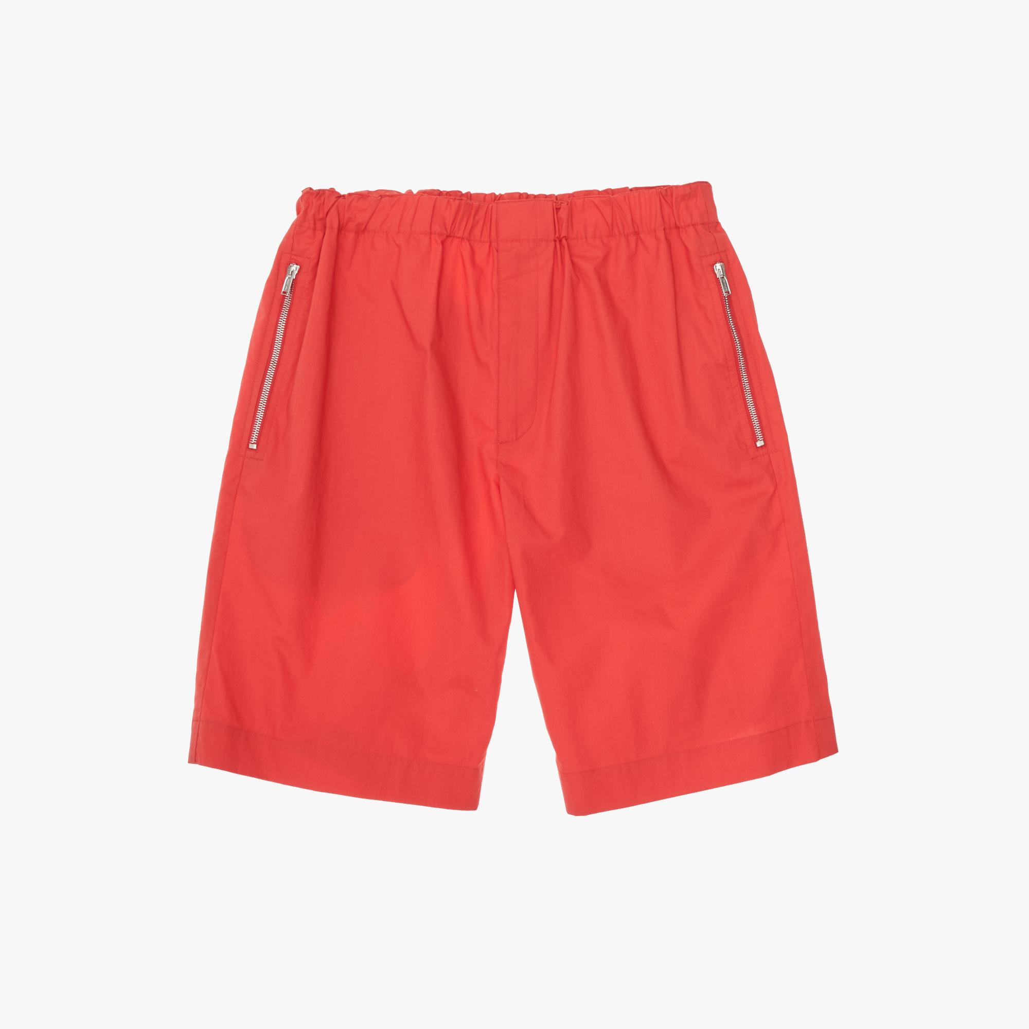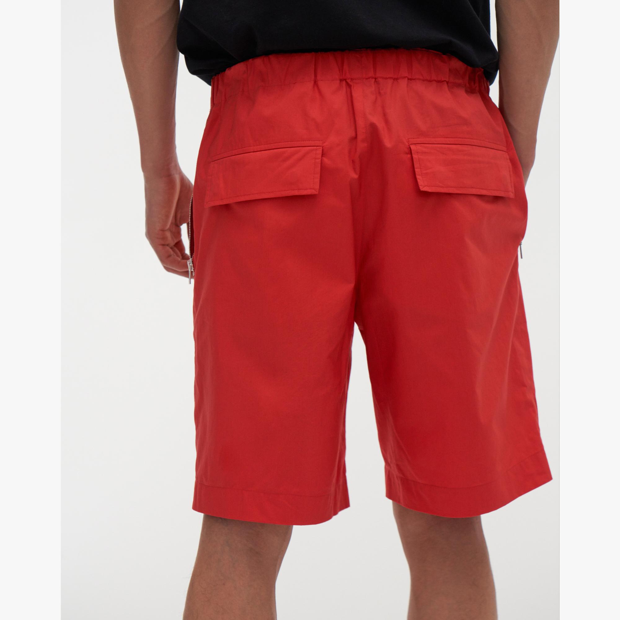 The Helmut Lang Pull On Shorts are drawstring shorts with side zip pockets and snap-button flap pockets at the back