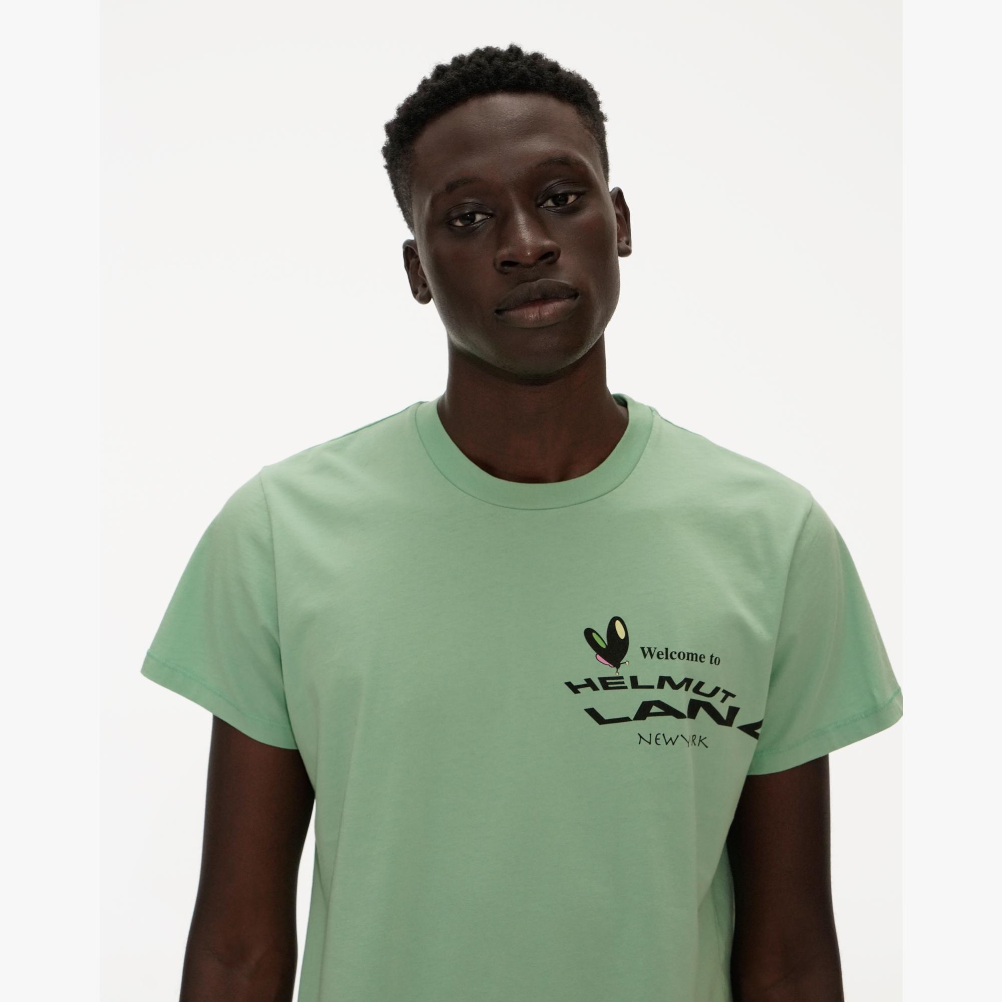 The Helmut Lang Helmut Land® Map Standard Tee is a classic cotton short-sleeve T-shirt with the HelmutLand® mascot printed on front and back