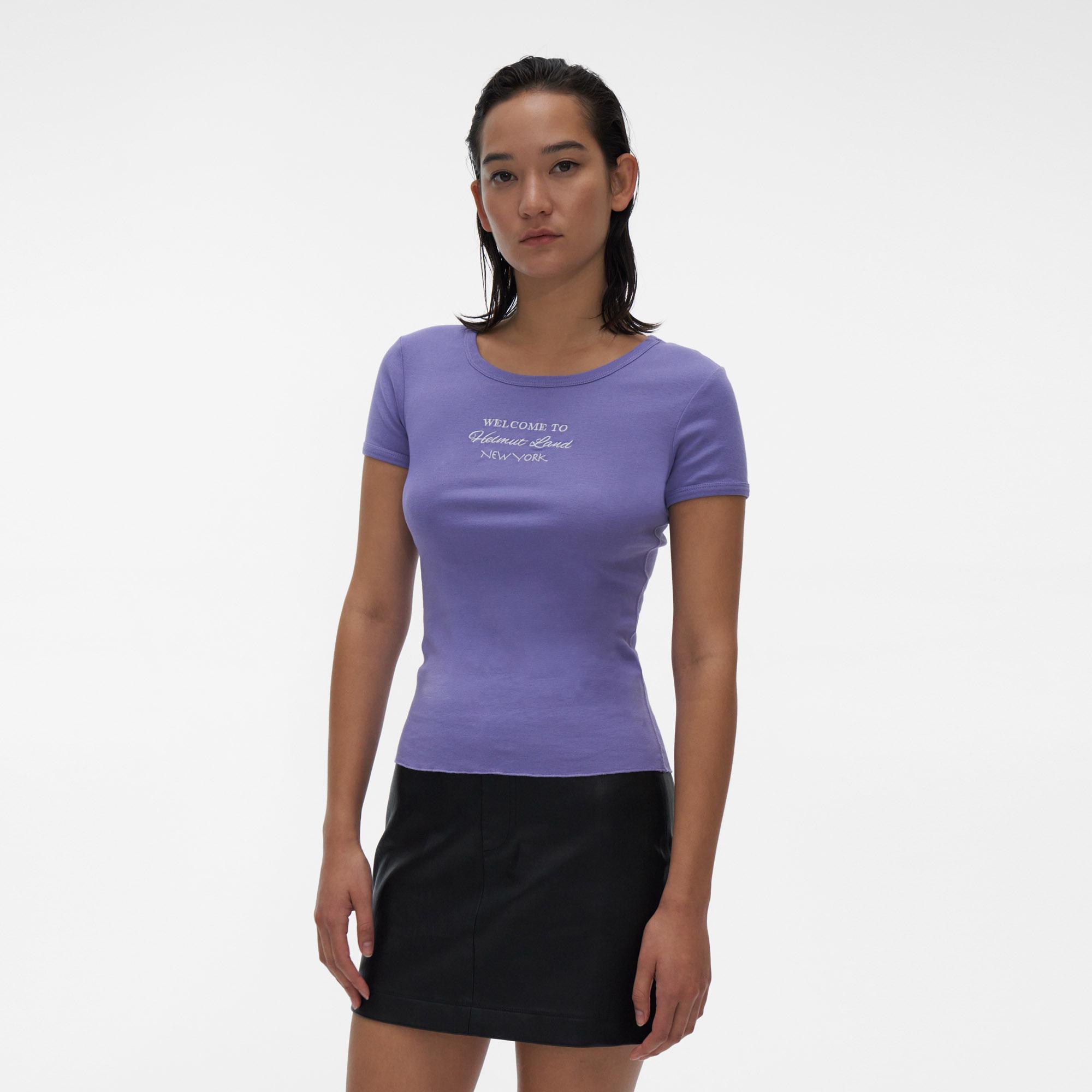 The Helmut Lang Slim Tee is a slim fit cotton T-shirt with a crew neck and graphic in front