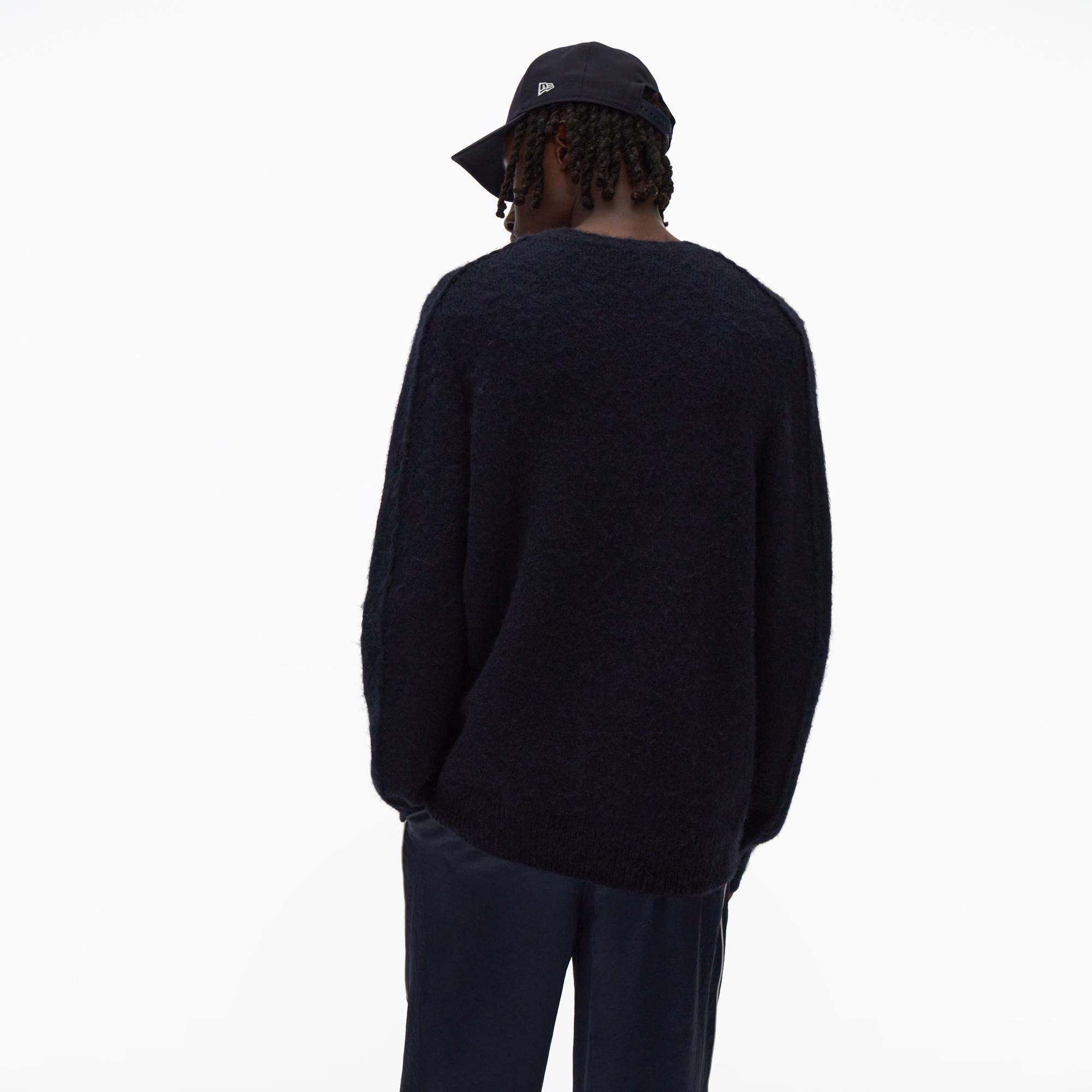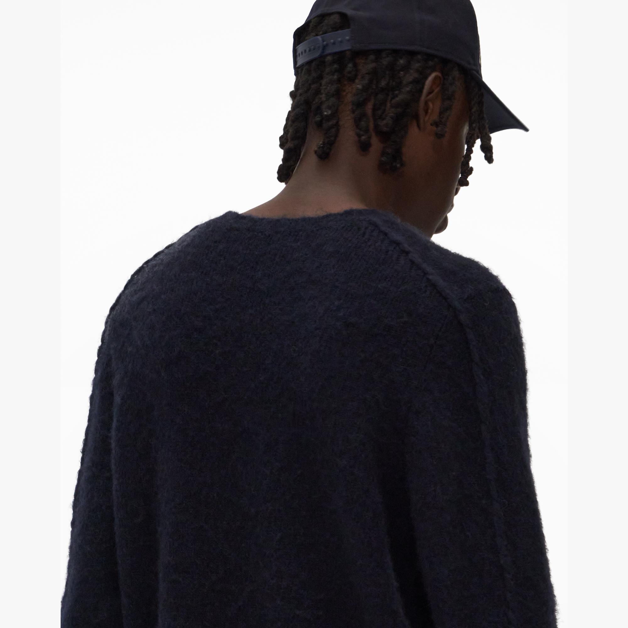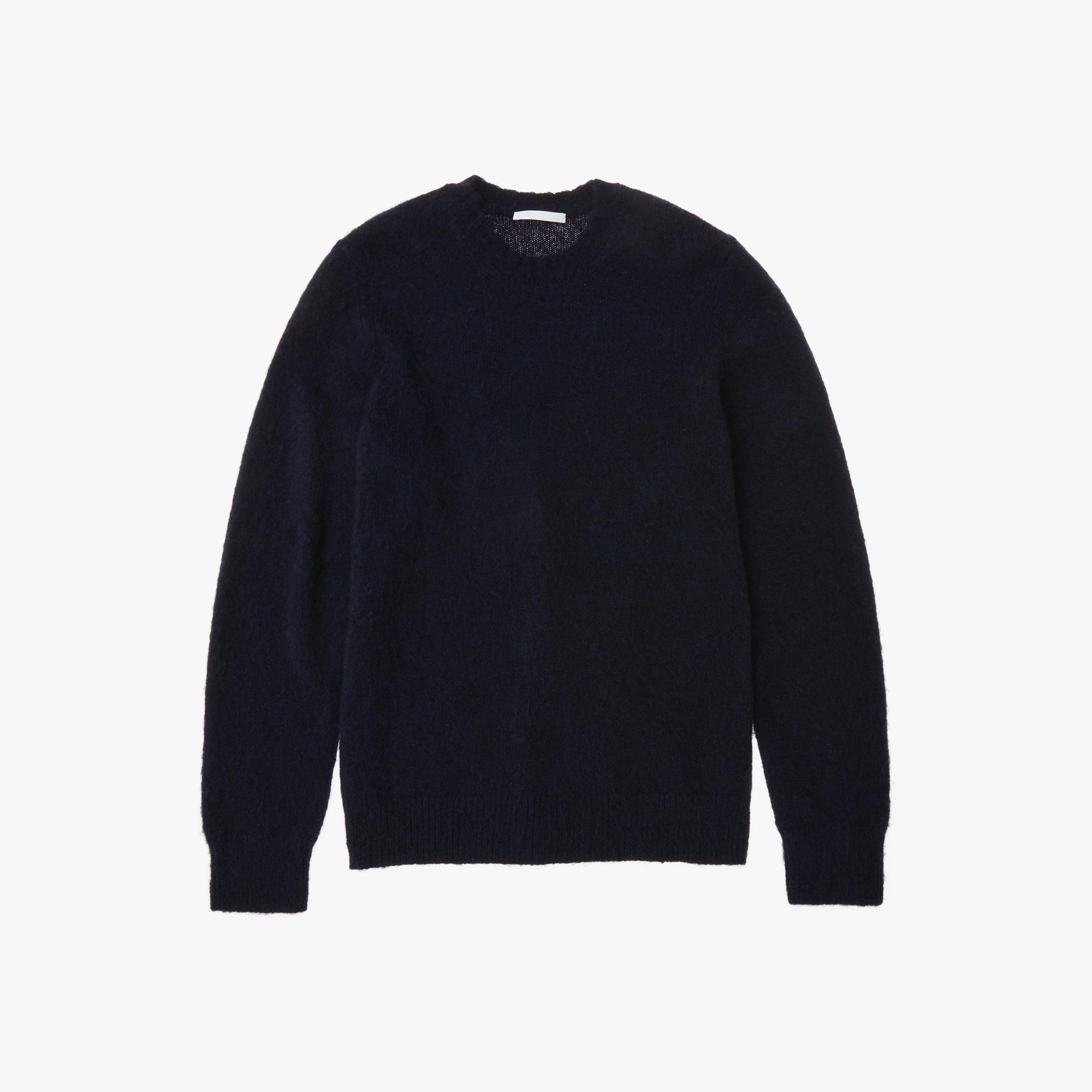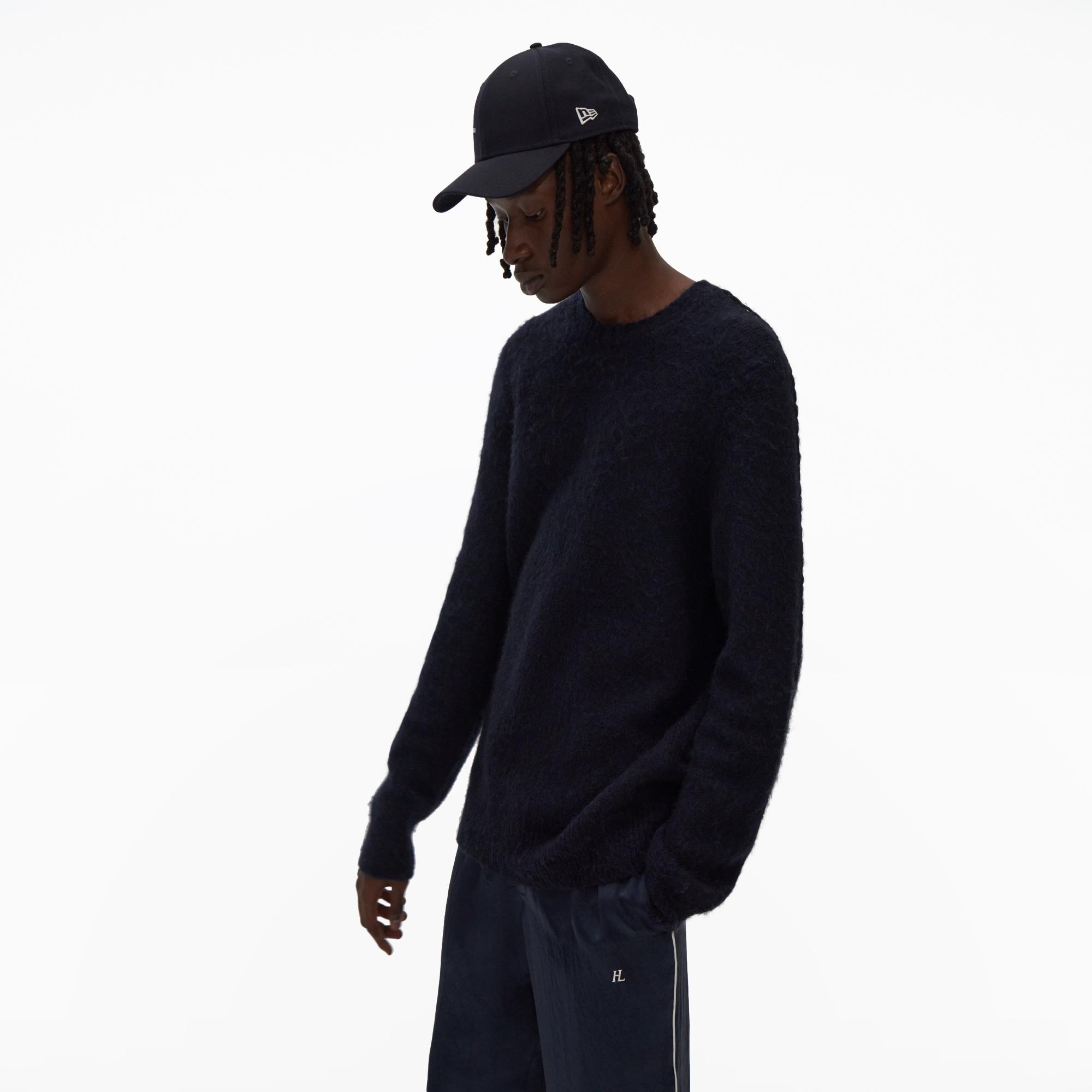 The Helmut Lang Brushed Crewneck is a crewneck sweater with ribbed trim and a soft, brushed finish