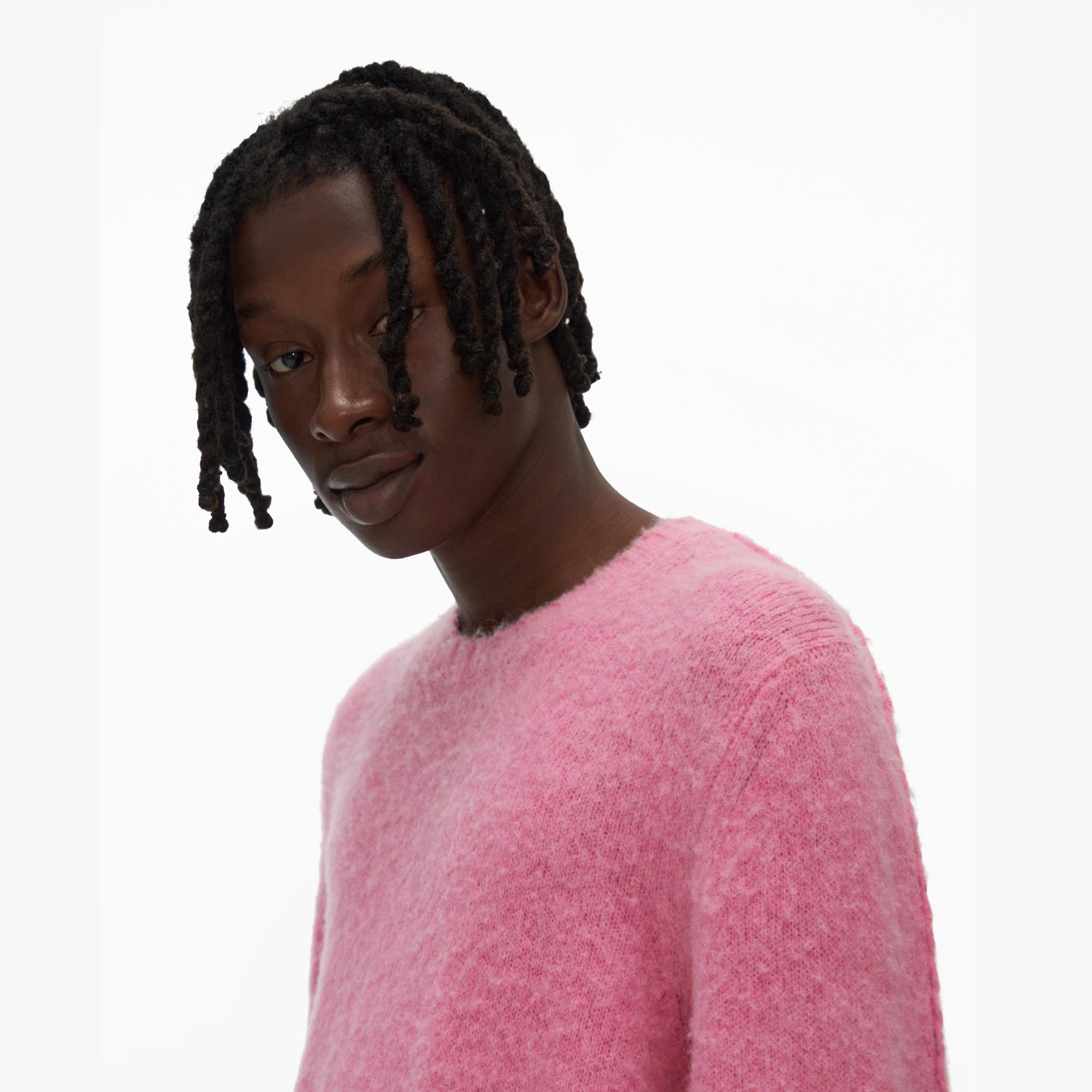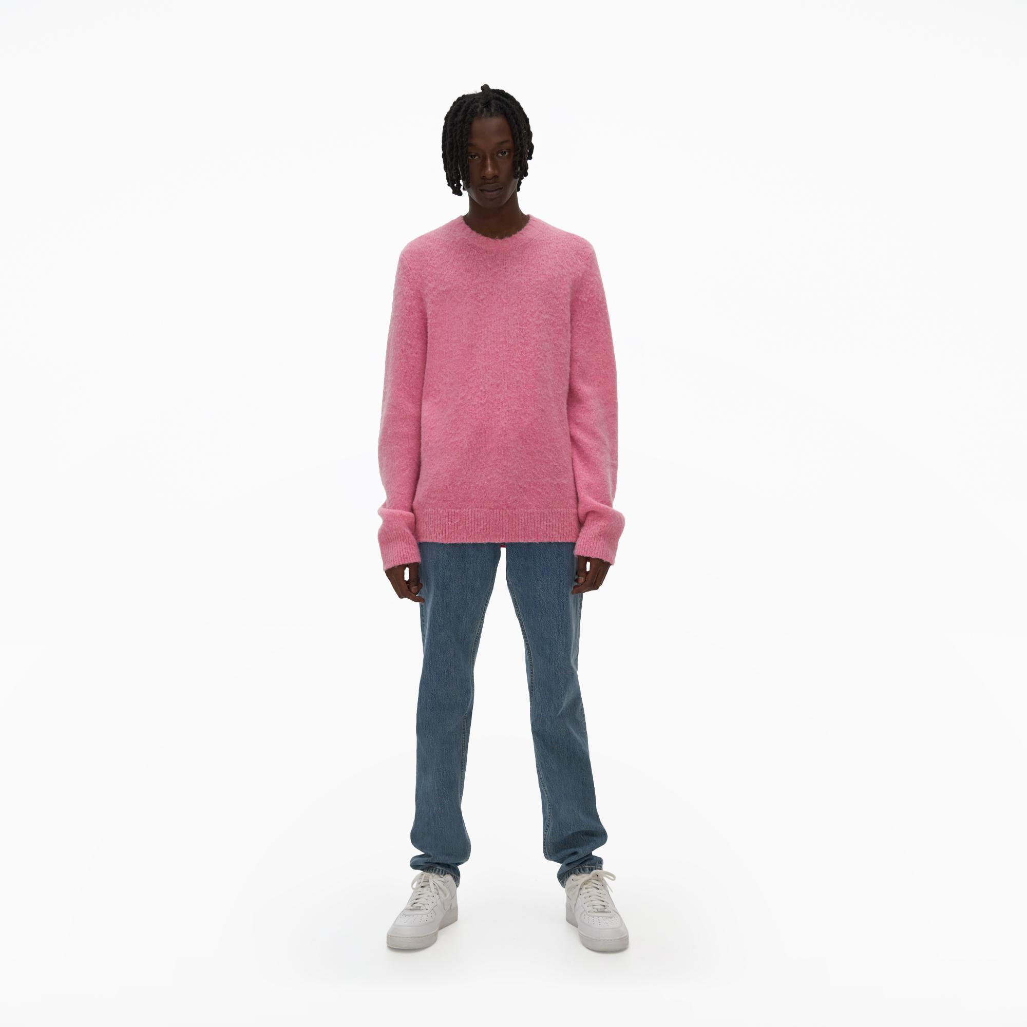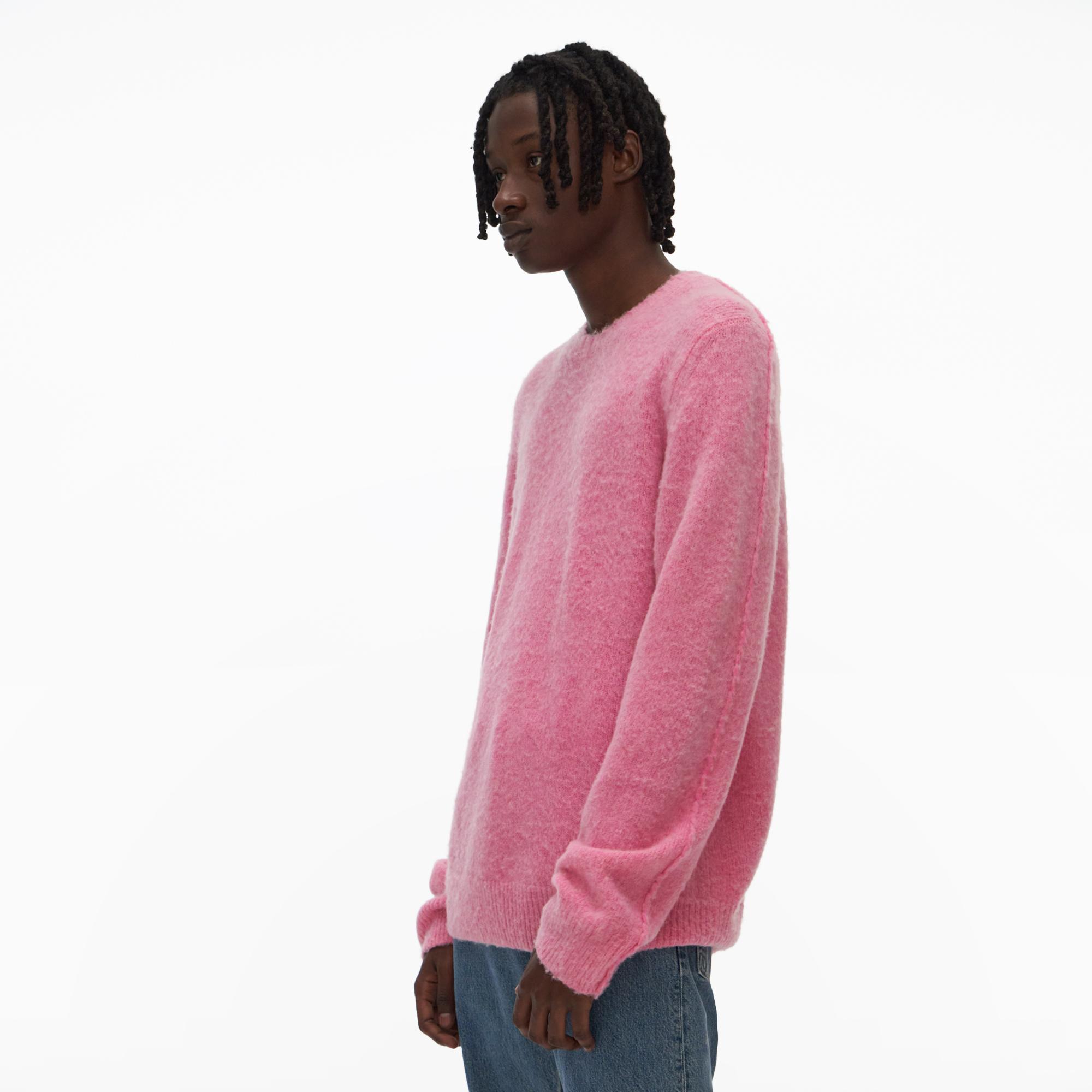 The Helmut Lang Brushed Crewneck is a crewneck sweater with ribbed trim and a soft, brushed finish