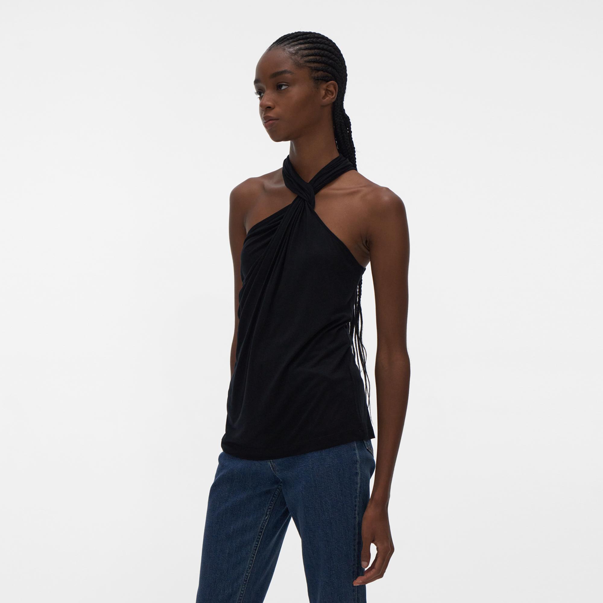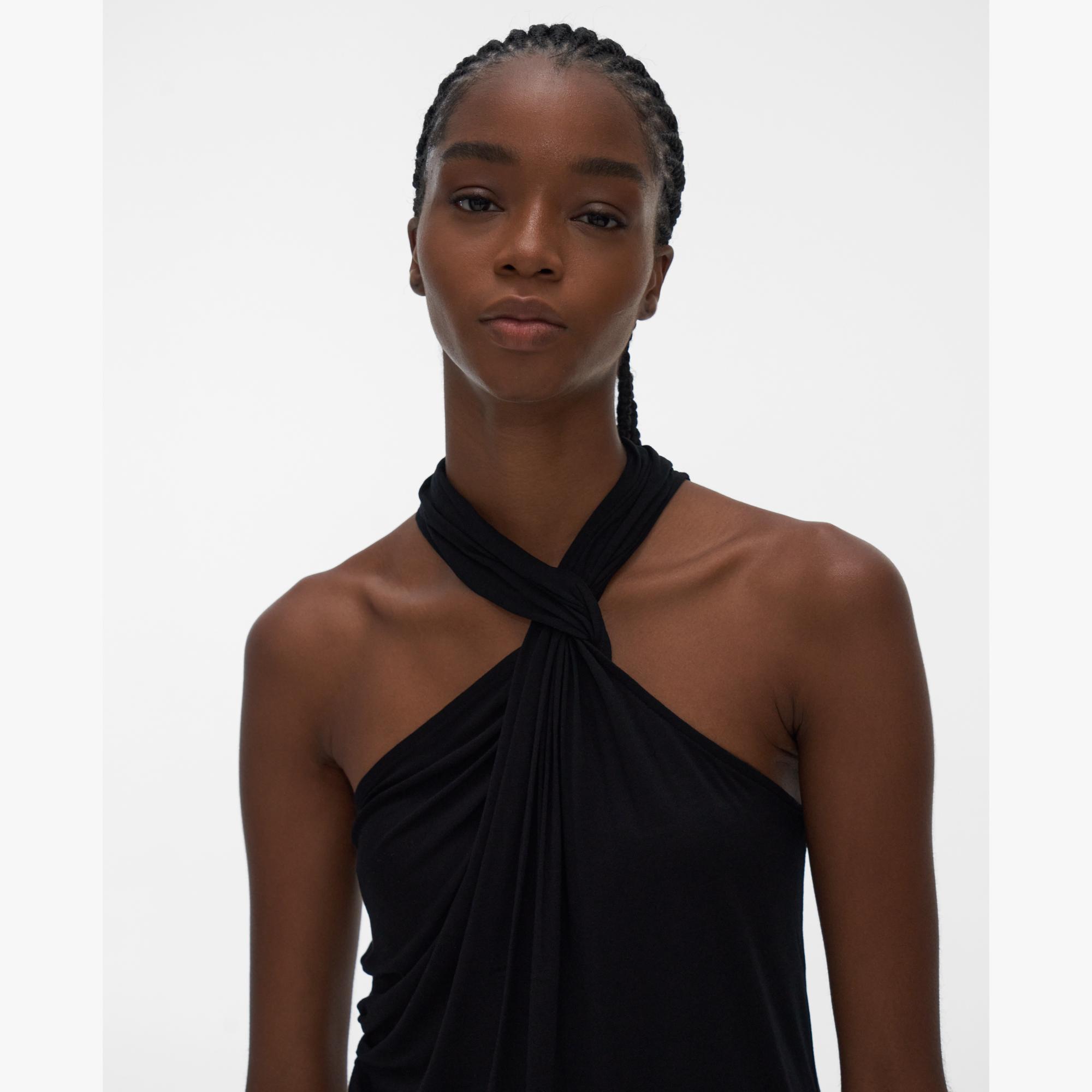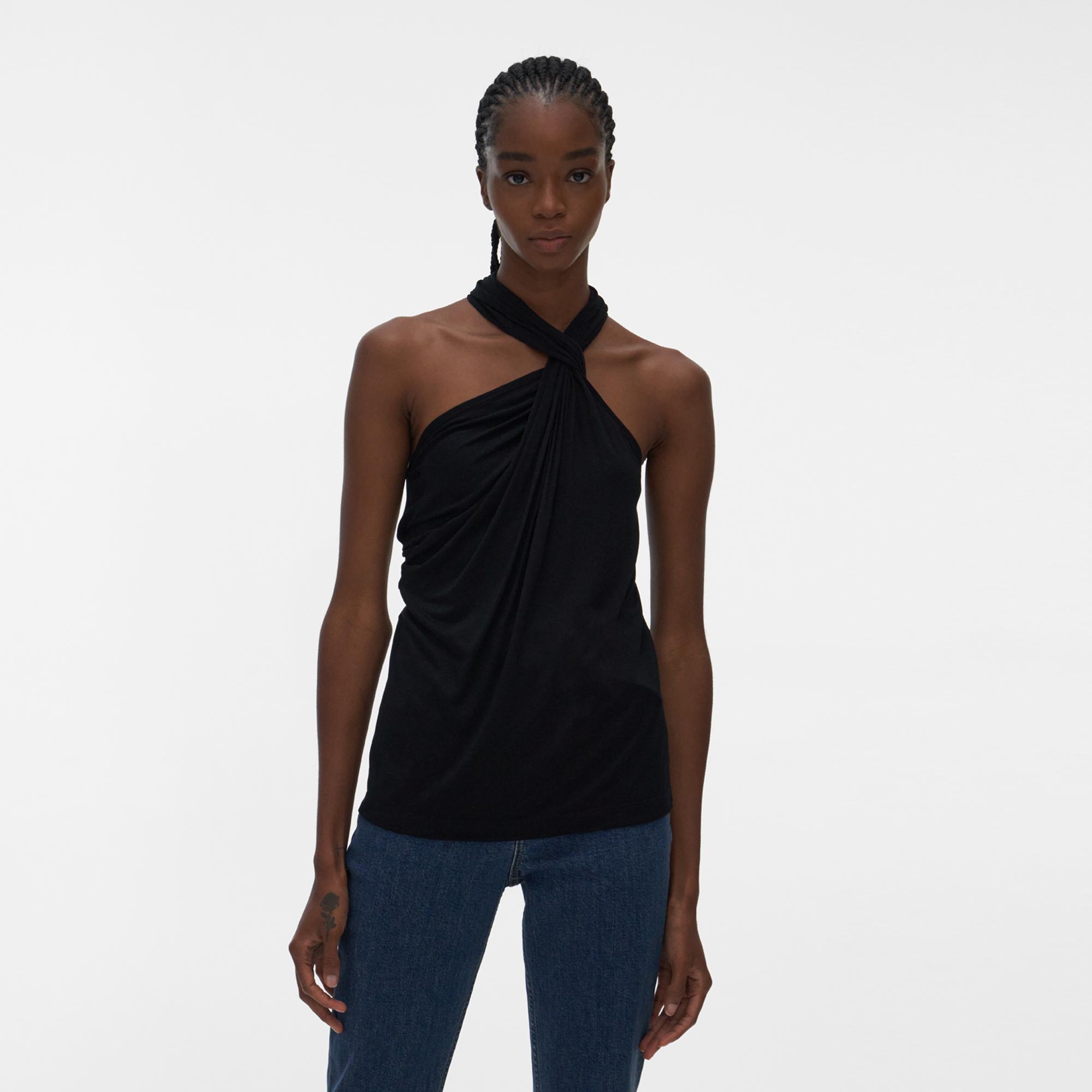 The Helmut Lang Twist Jersey Top is a sleeveless top in lightweight jersey with a twisted neckline