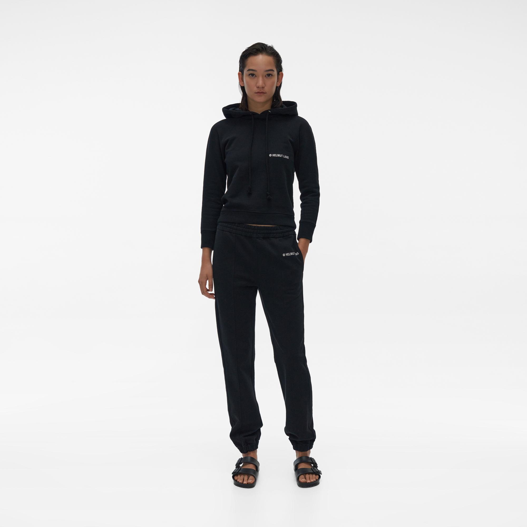 The Helmut Lang Logo Sweatpant is a classic sweatpant detailed with an elastic waistband, slash pockets, and logo graphic in front