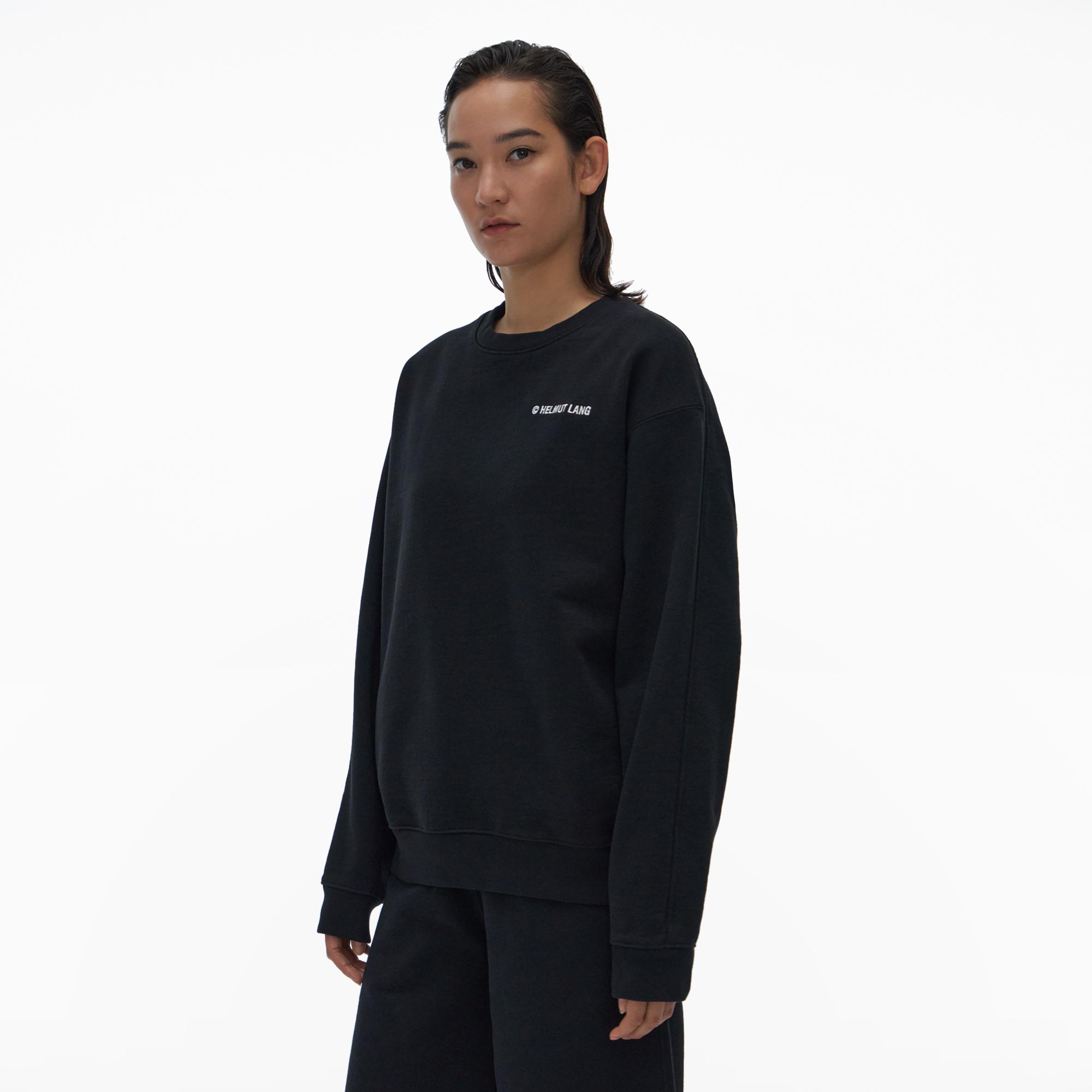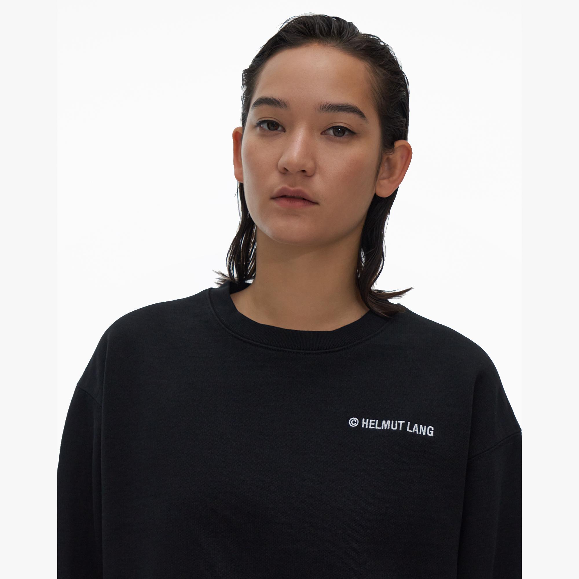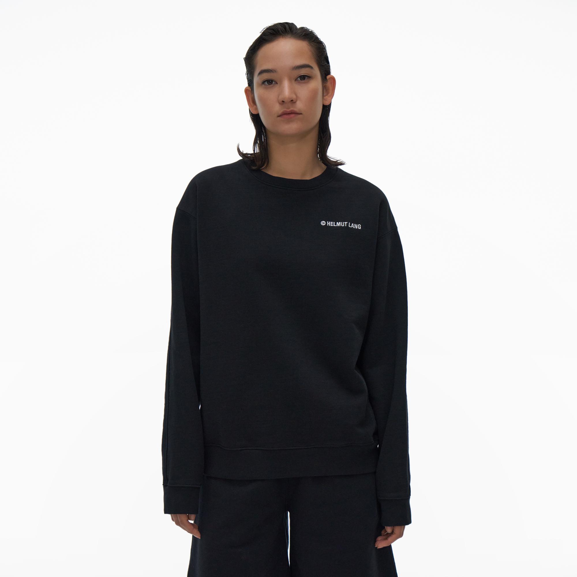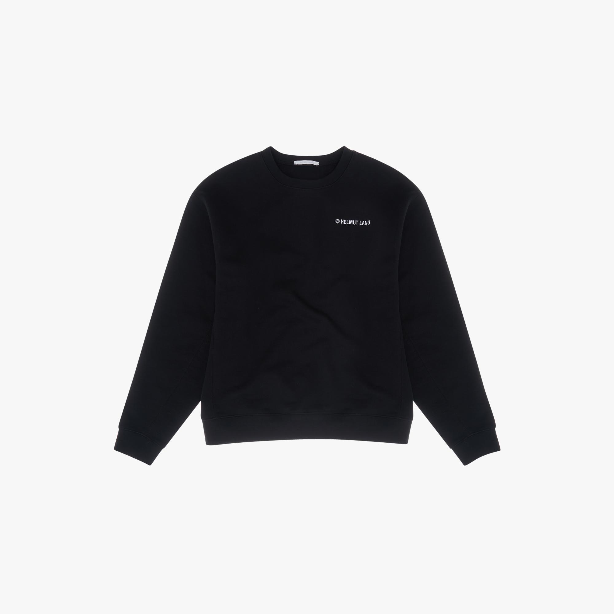 The Helmut Lang is a classic logo sweatshirt is a cotton crew neck with graphics on front